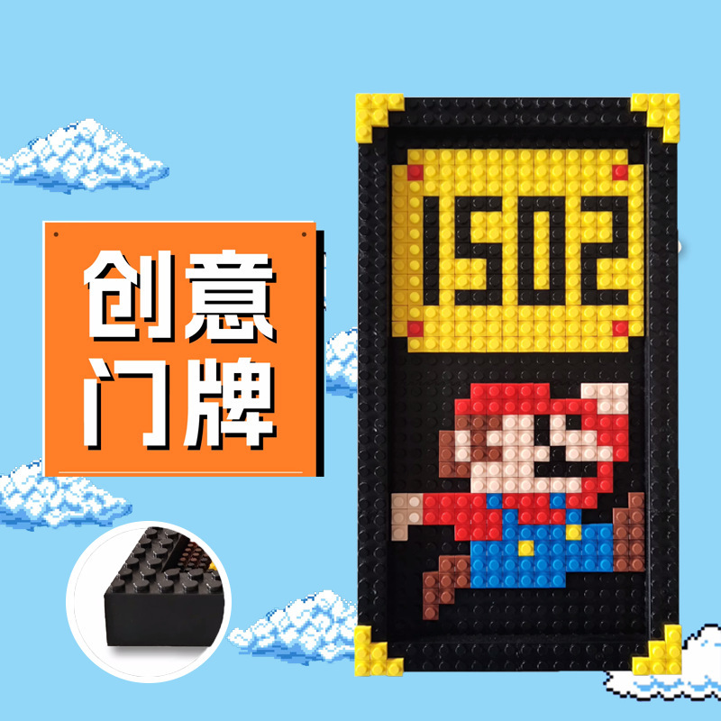 슈퍼 메리 픽셀 로고 장식 조립 번호판을 나타내는 창조적 인 DIY 마리오 빌딩 블록 3 차원 도어 플레이트스토어 가기