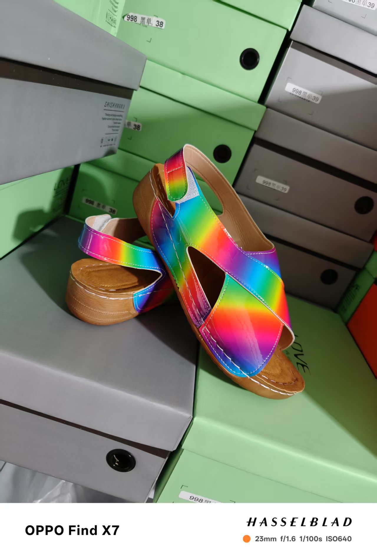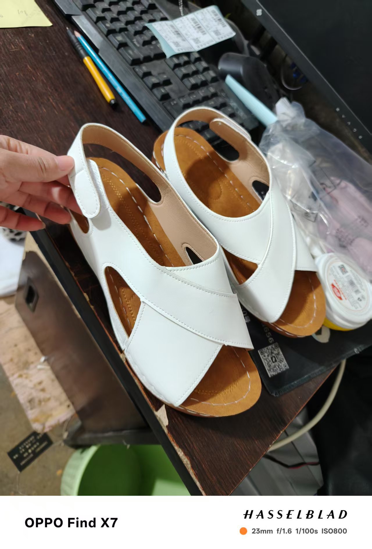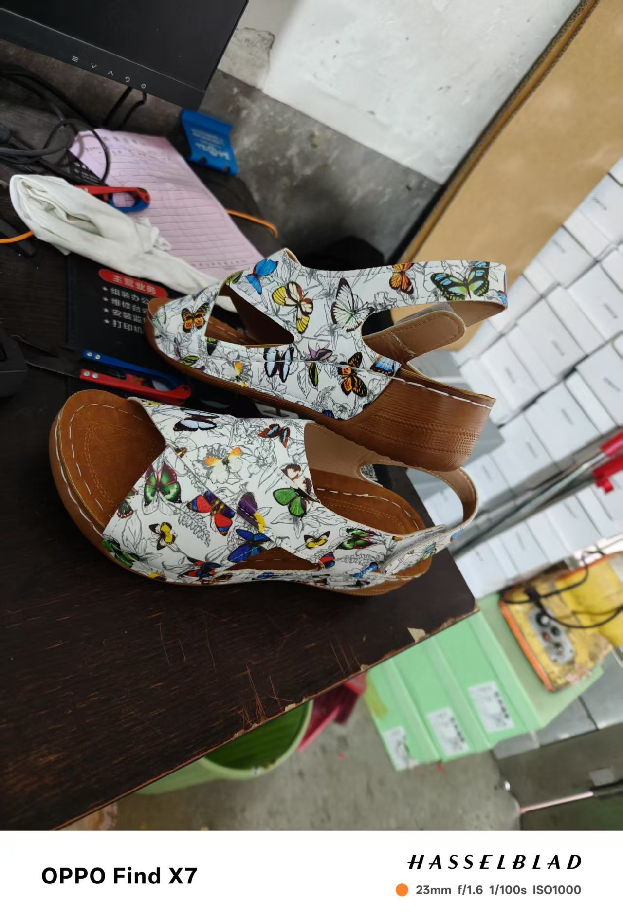 2024夏季新款厚底鱼嘴拼色外贸女鞋大码魔术贴镂空沙滩鞋