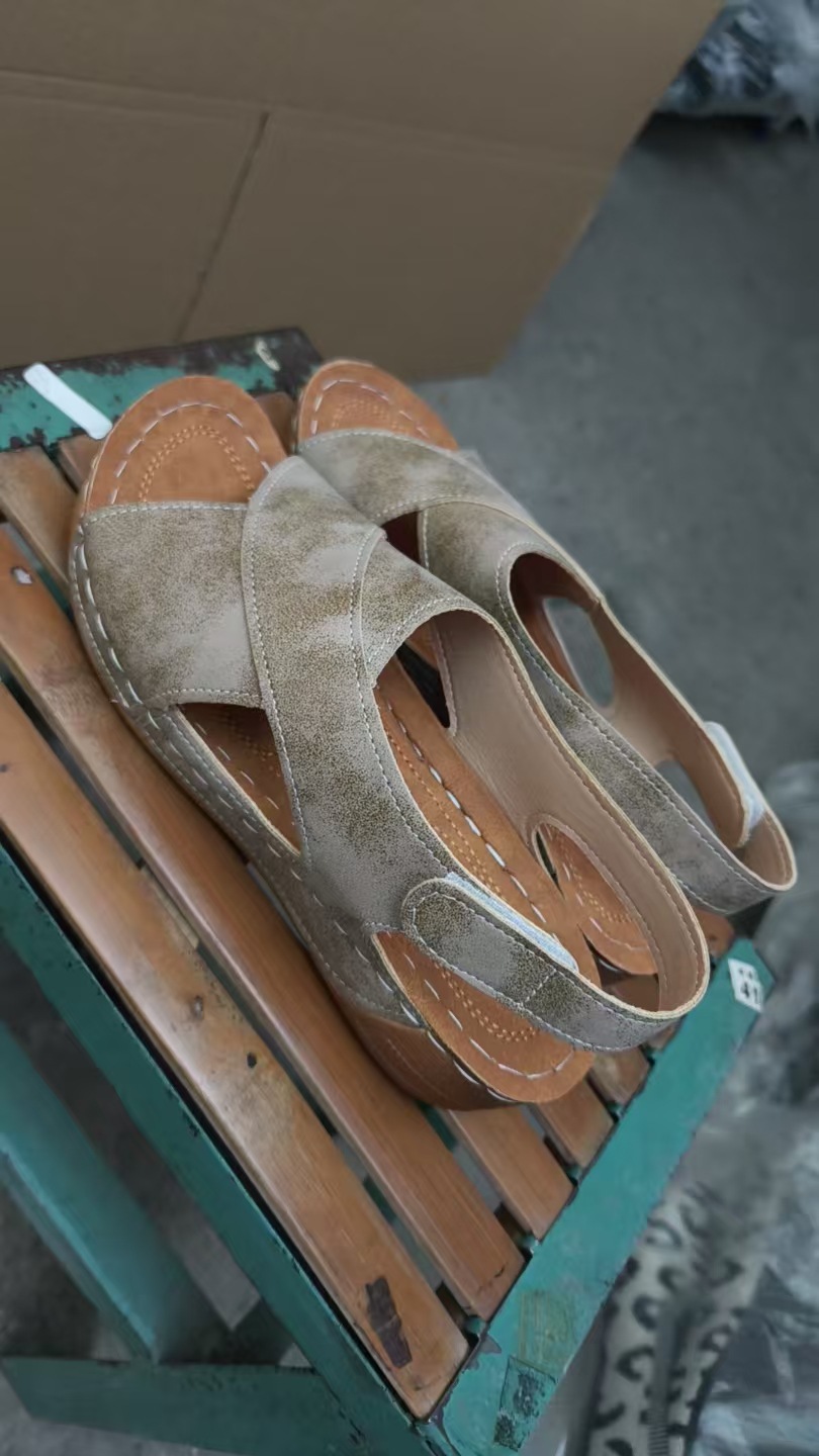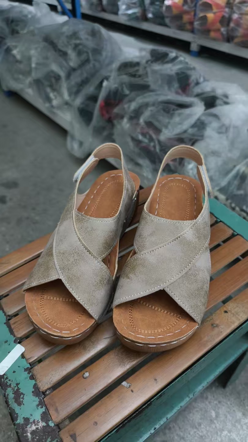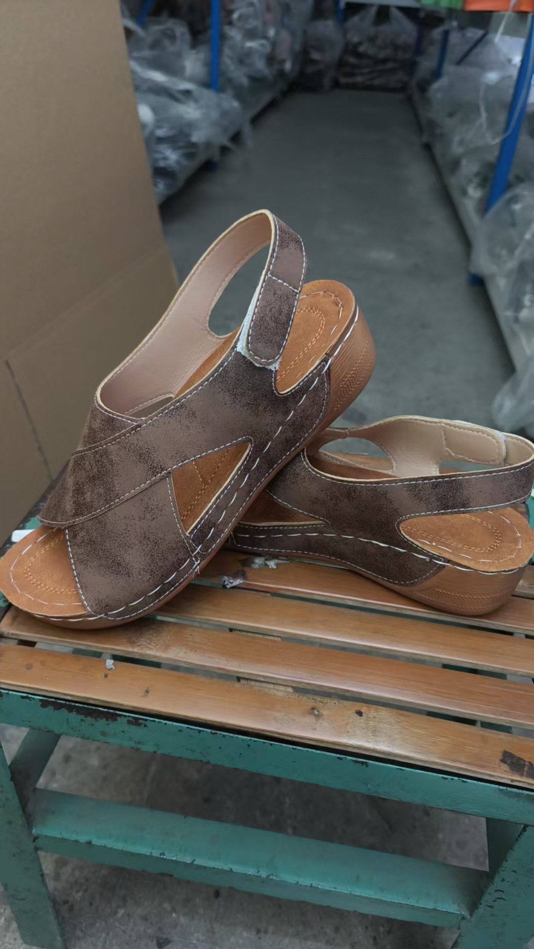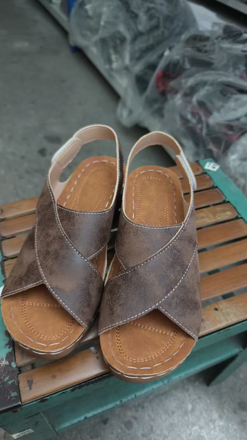 2024夏季新款厚底鱼嘴拼色外贸女鞋大码魔术贴镂空沙滩鞋