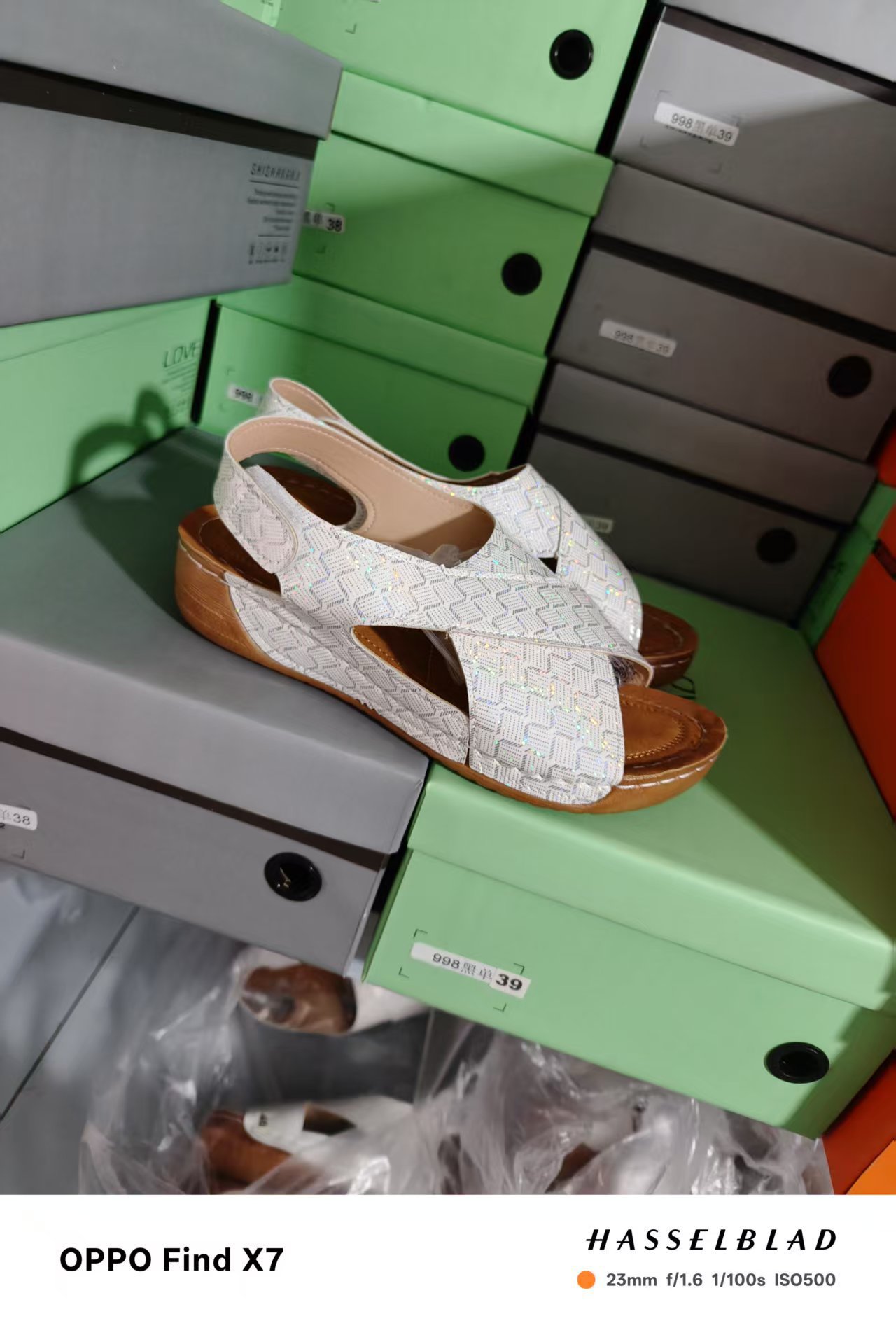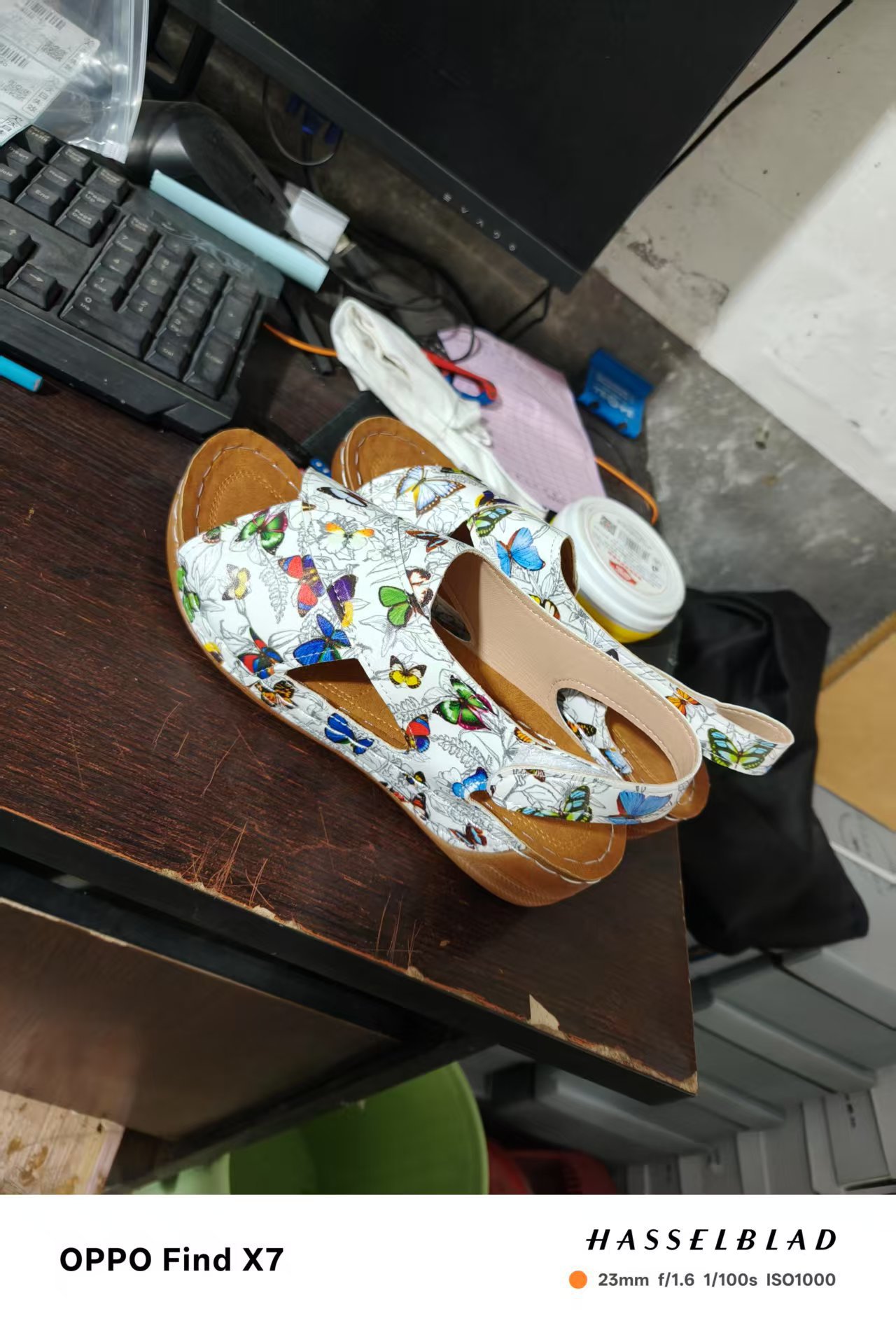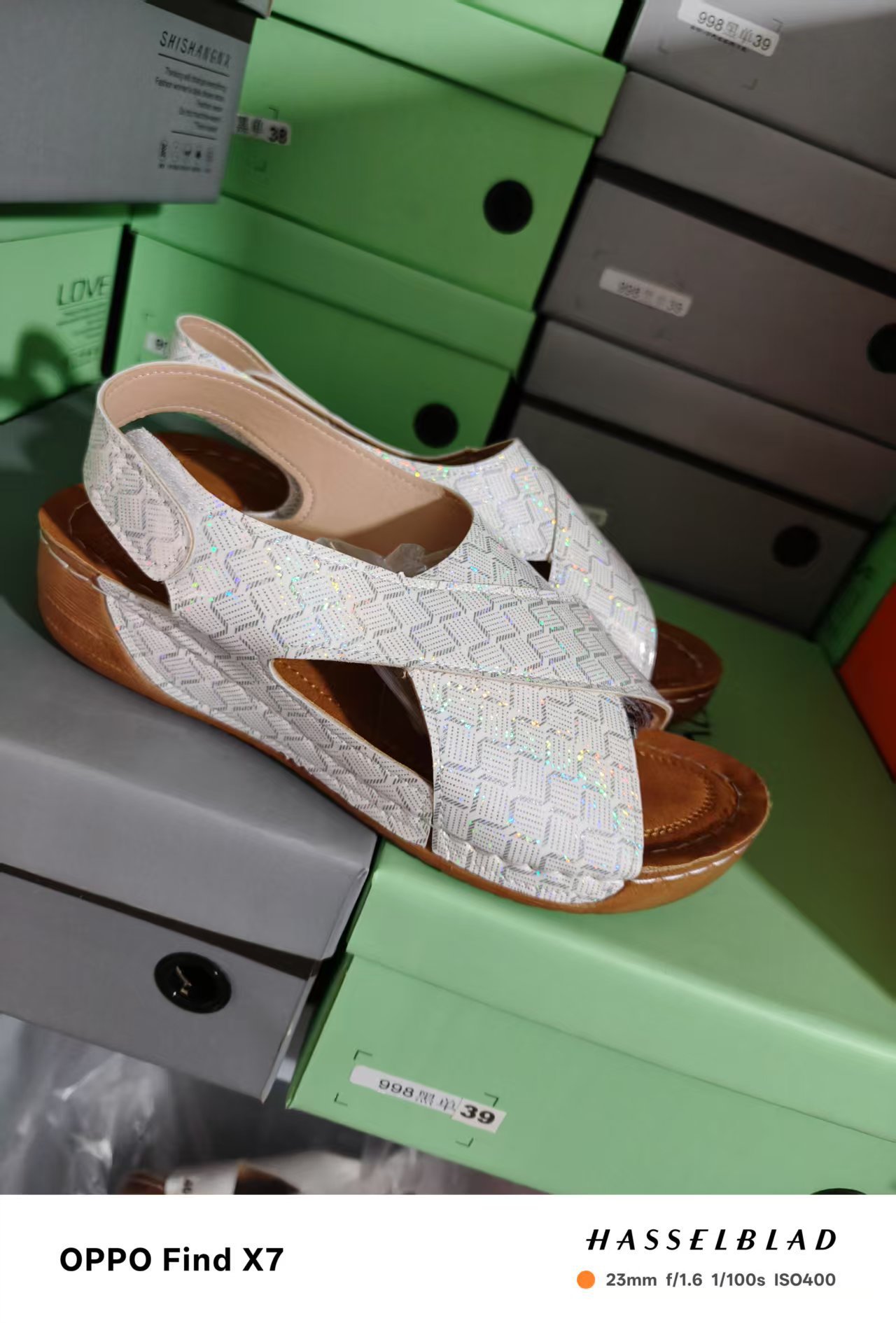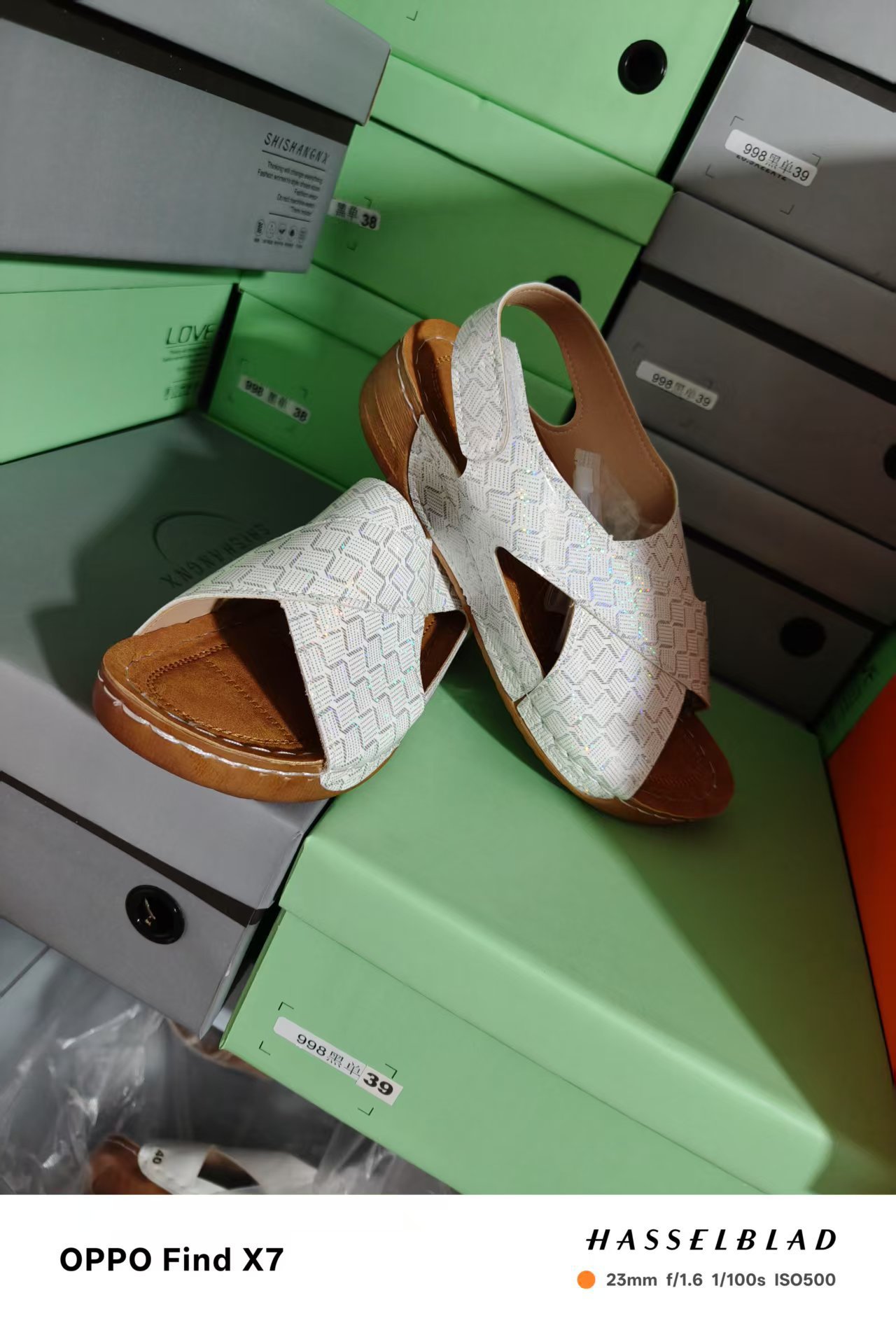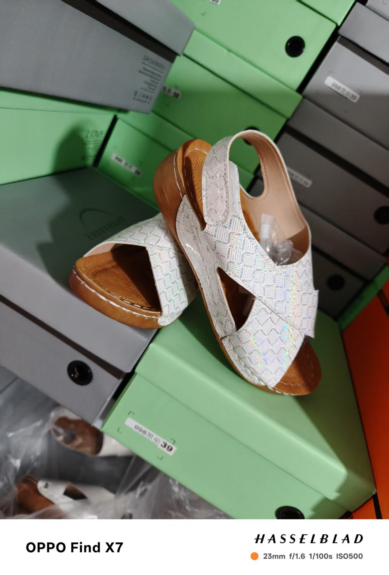 2024 년 여름 새로운 두꺼운 밑창 생선 입 색상과 일치하는 대외 무역 여성 신발 플러스 사이즈 후크 및 루프 속이 빈 비치 슈즈스토어 가기