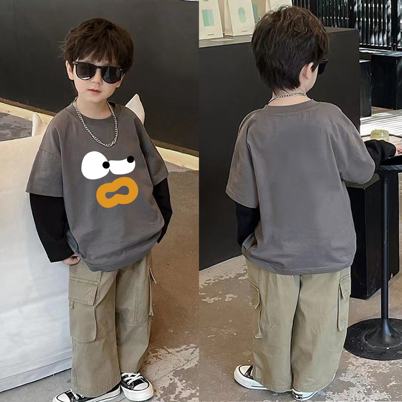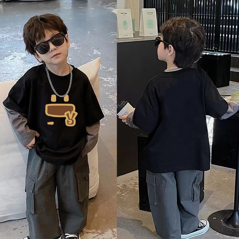 한국판 100 면 긴팔 티셔츠 봄 · 가을 새 가짜 투피스 옷 잘 생긴 소년 레터베이스 셔츠 세대