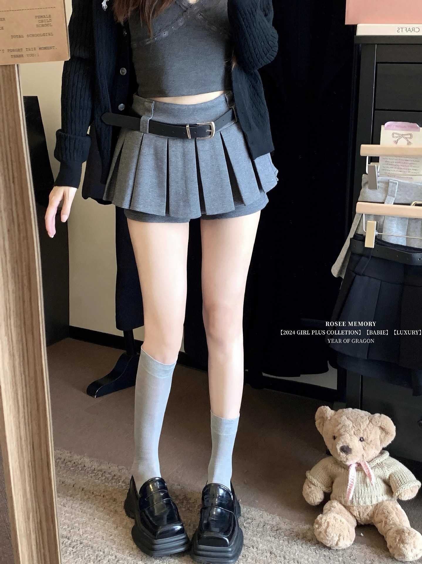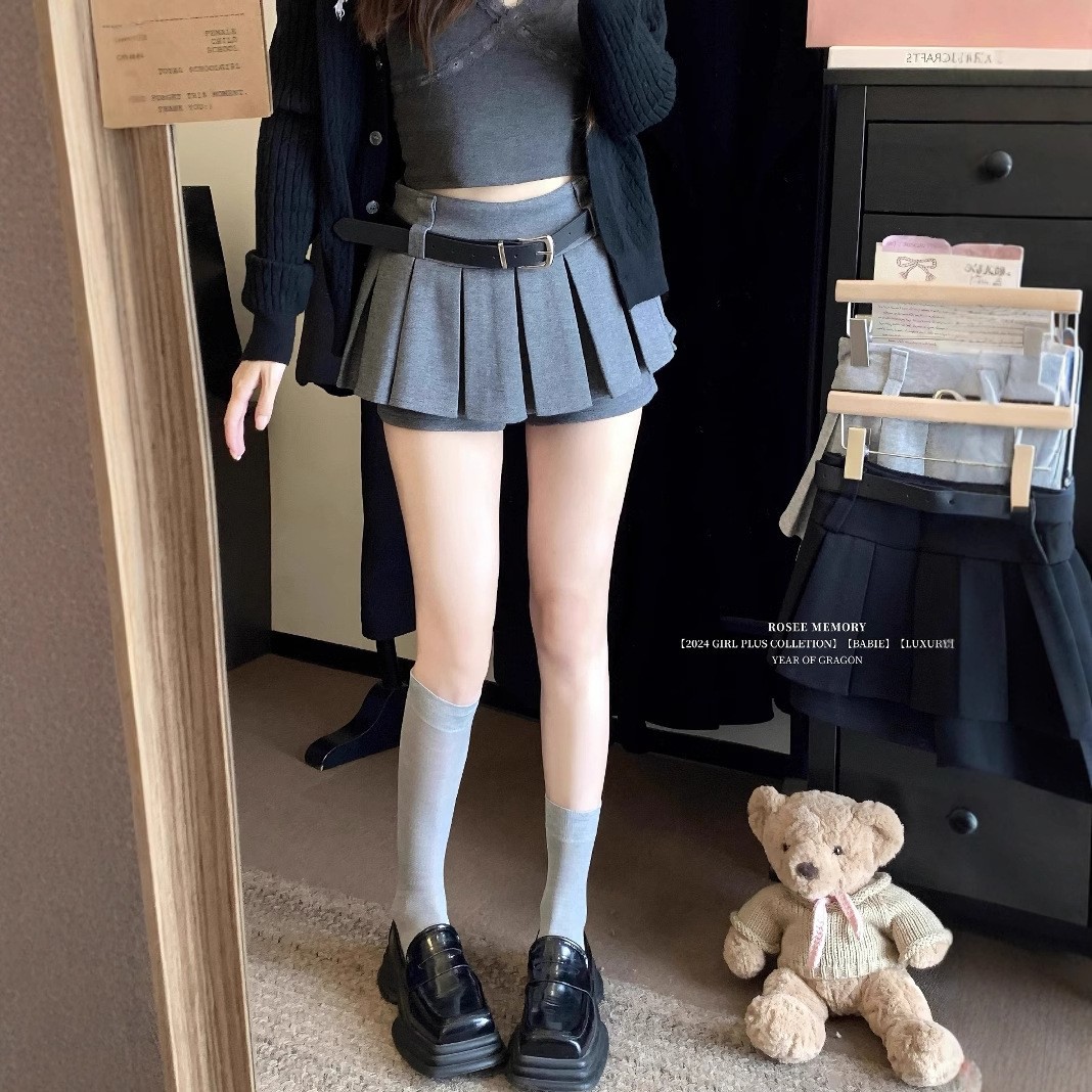 대학 스타일 회색 주름 치마 스커트 여성의 봄 새로운 도착 Culottes 낮은 허리 스커트 작은 A 라인 미니 스커트