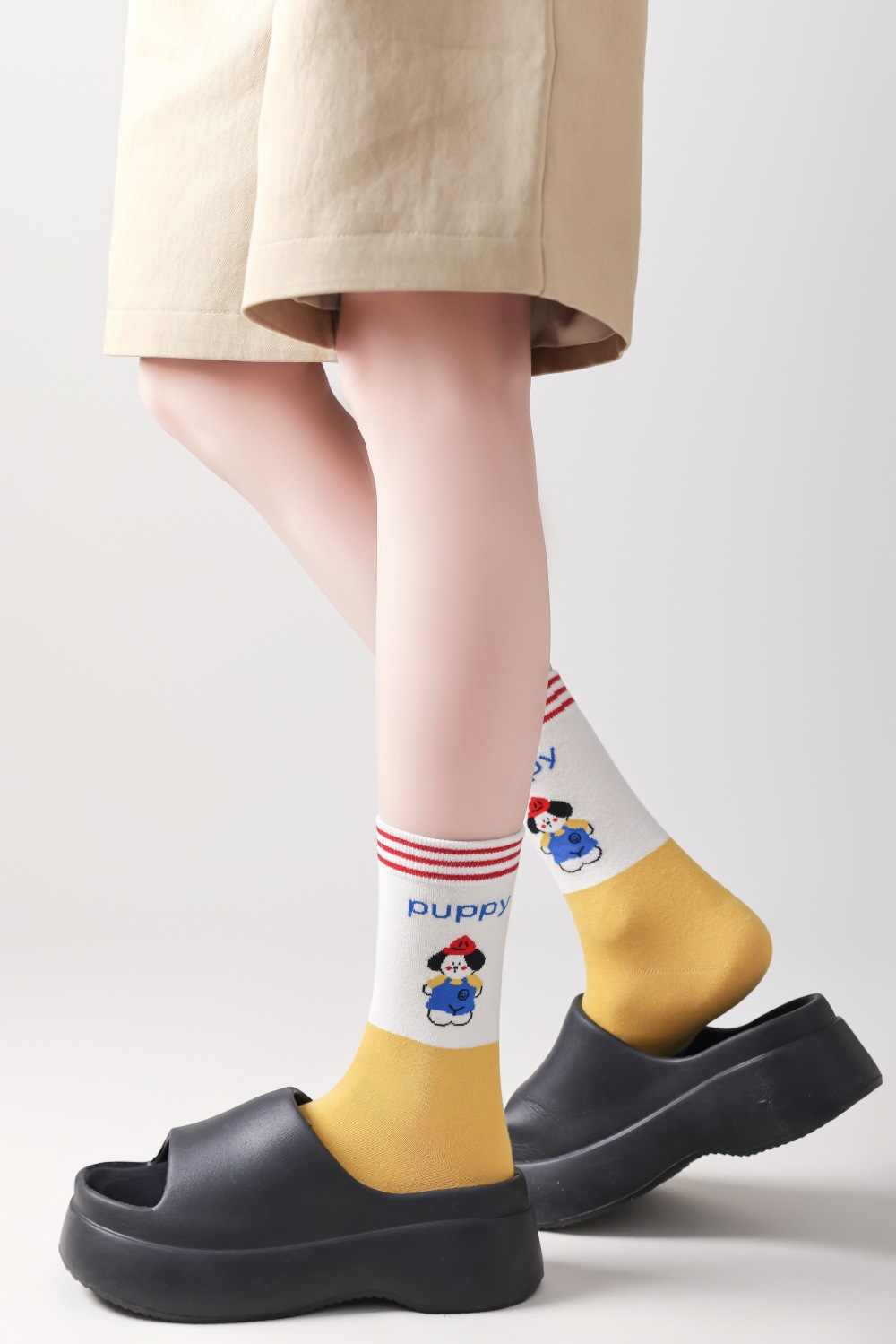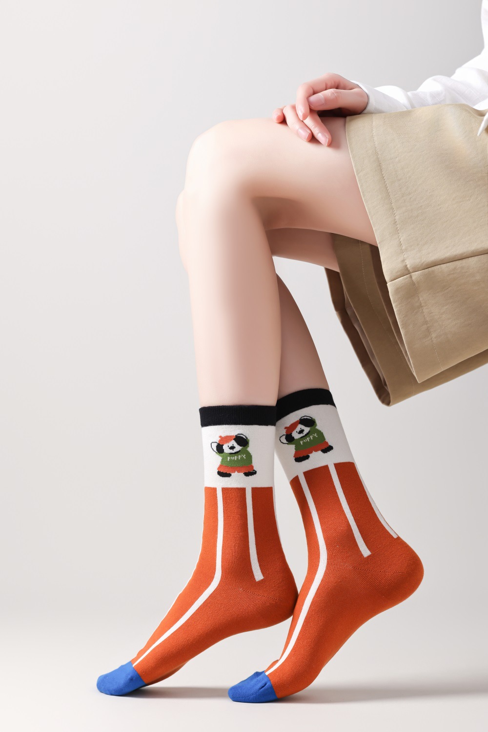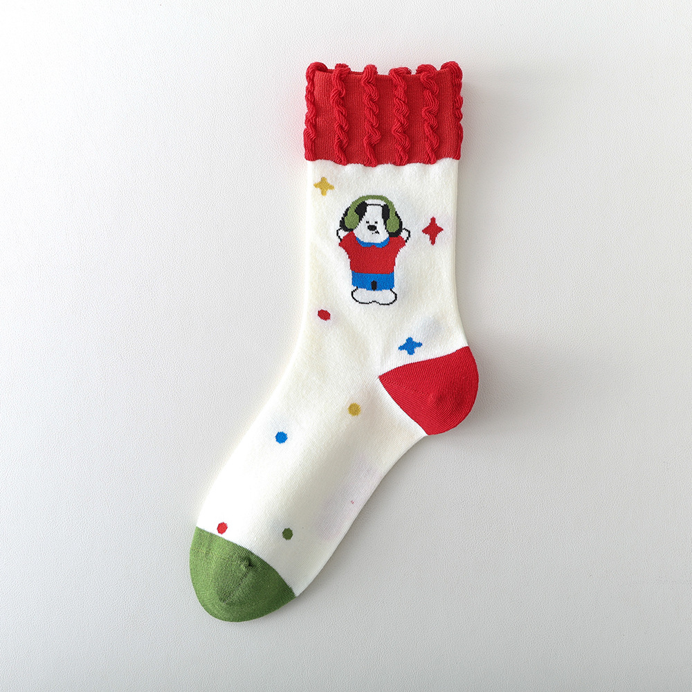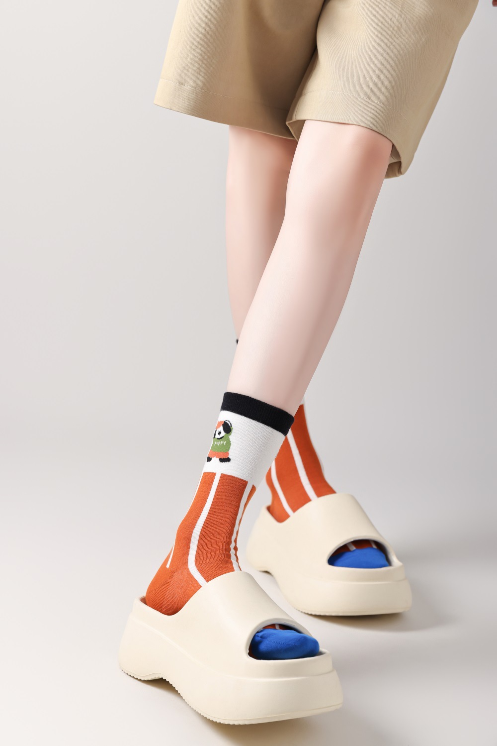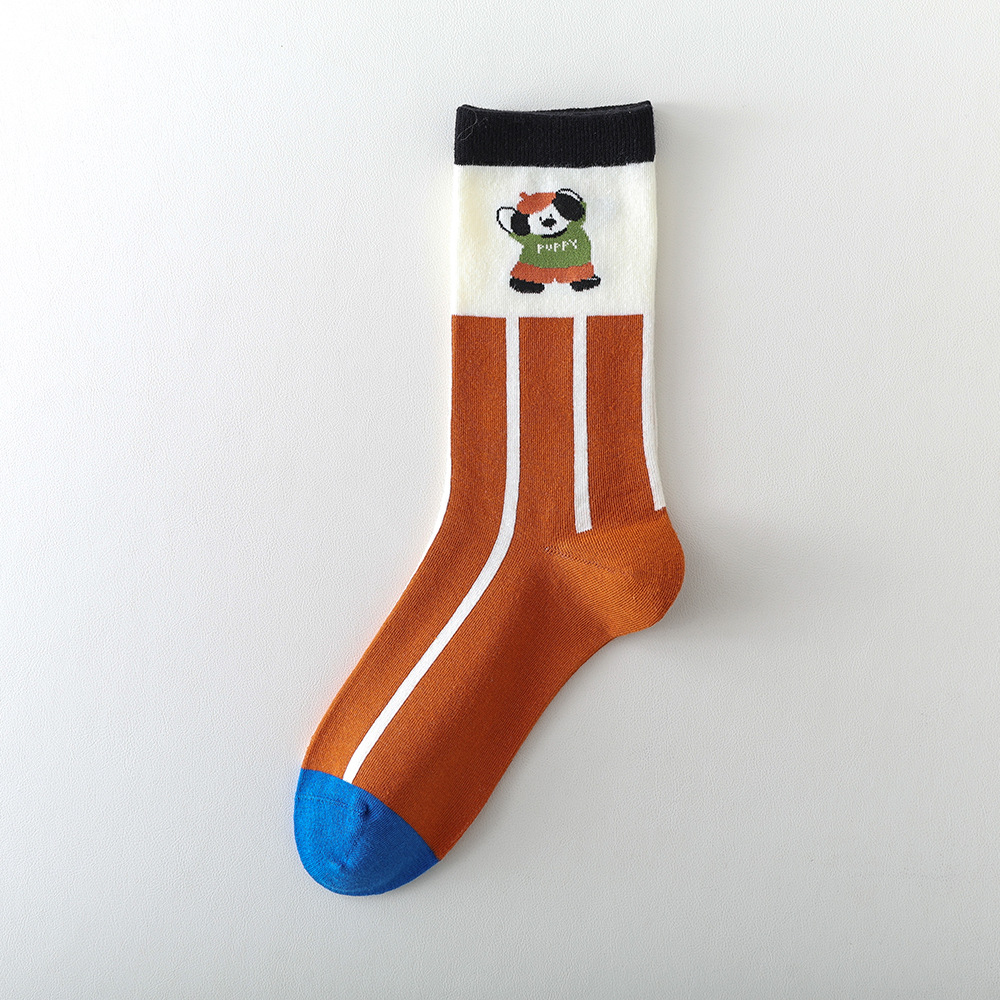 봄과 여름 양말 여성용 미드 튜브 스택 양말 명암 일본 스타일 Ins 만화 강아지 트렌디 인터넷 인기 소녀 올매치 유행 양말