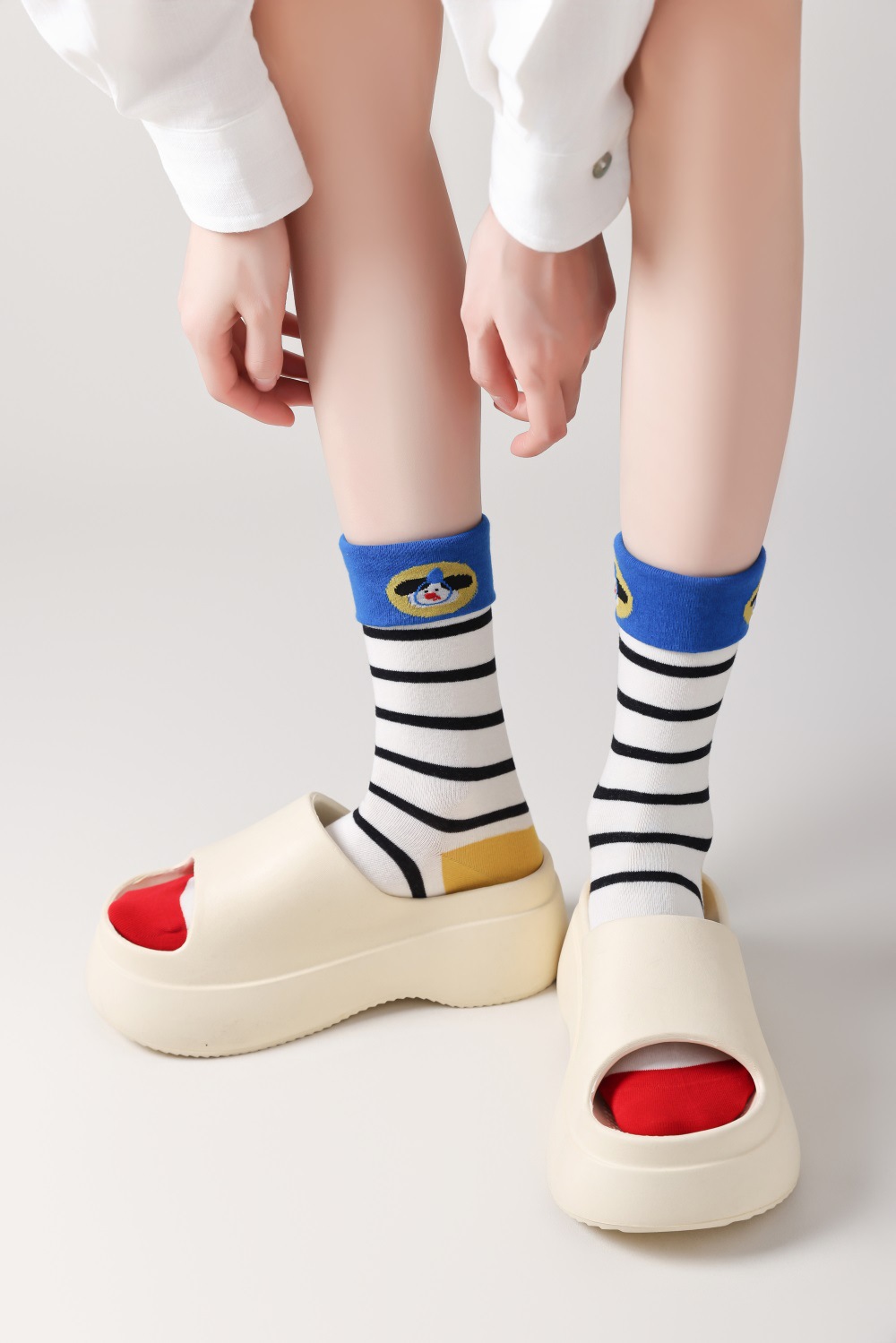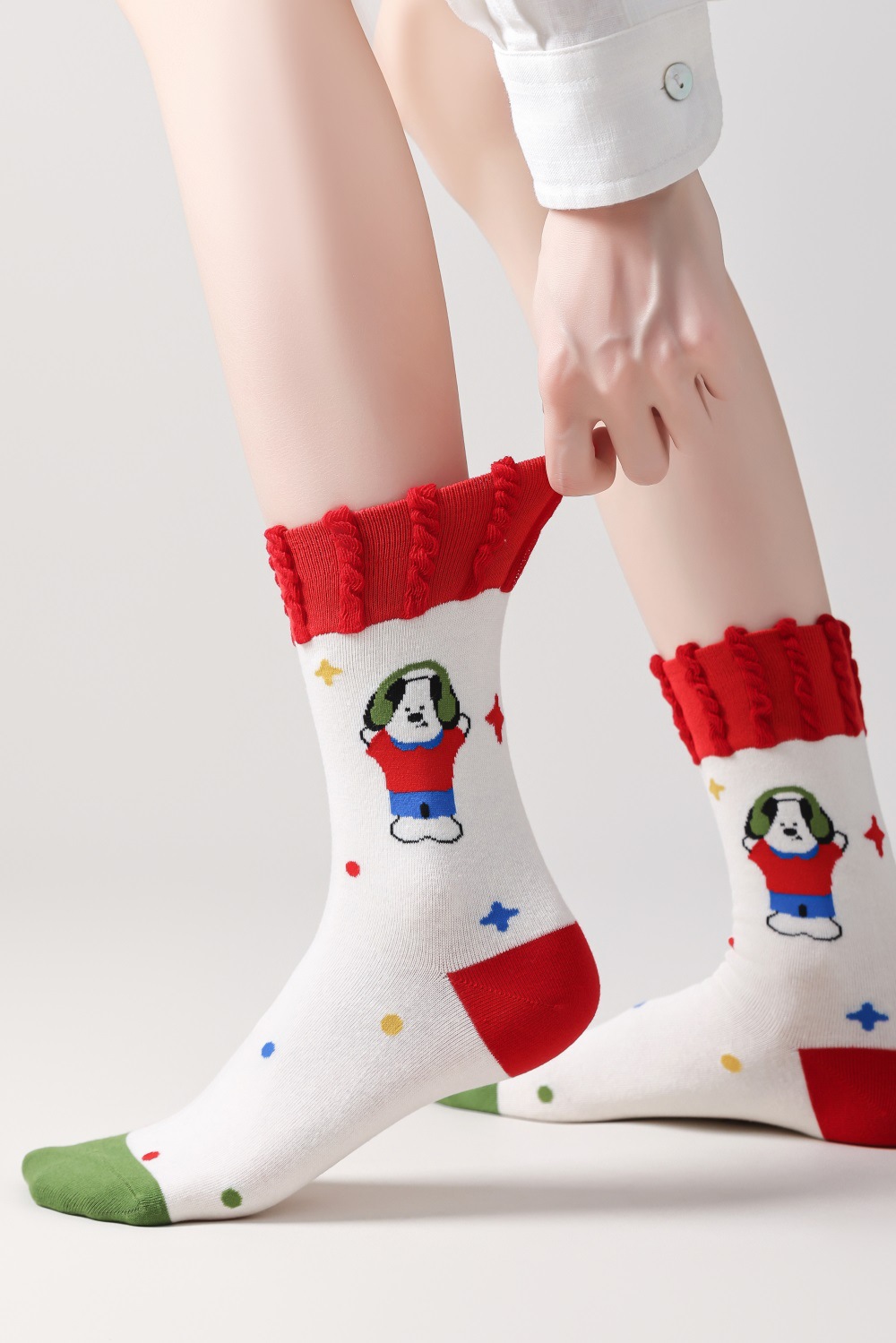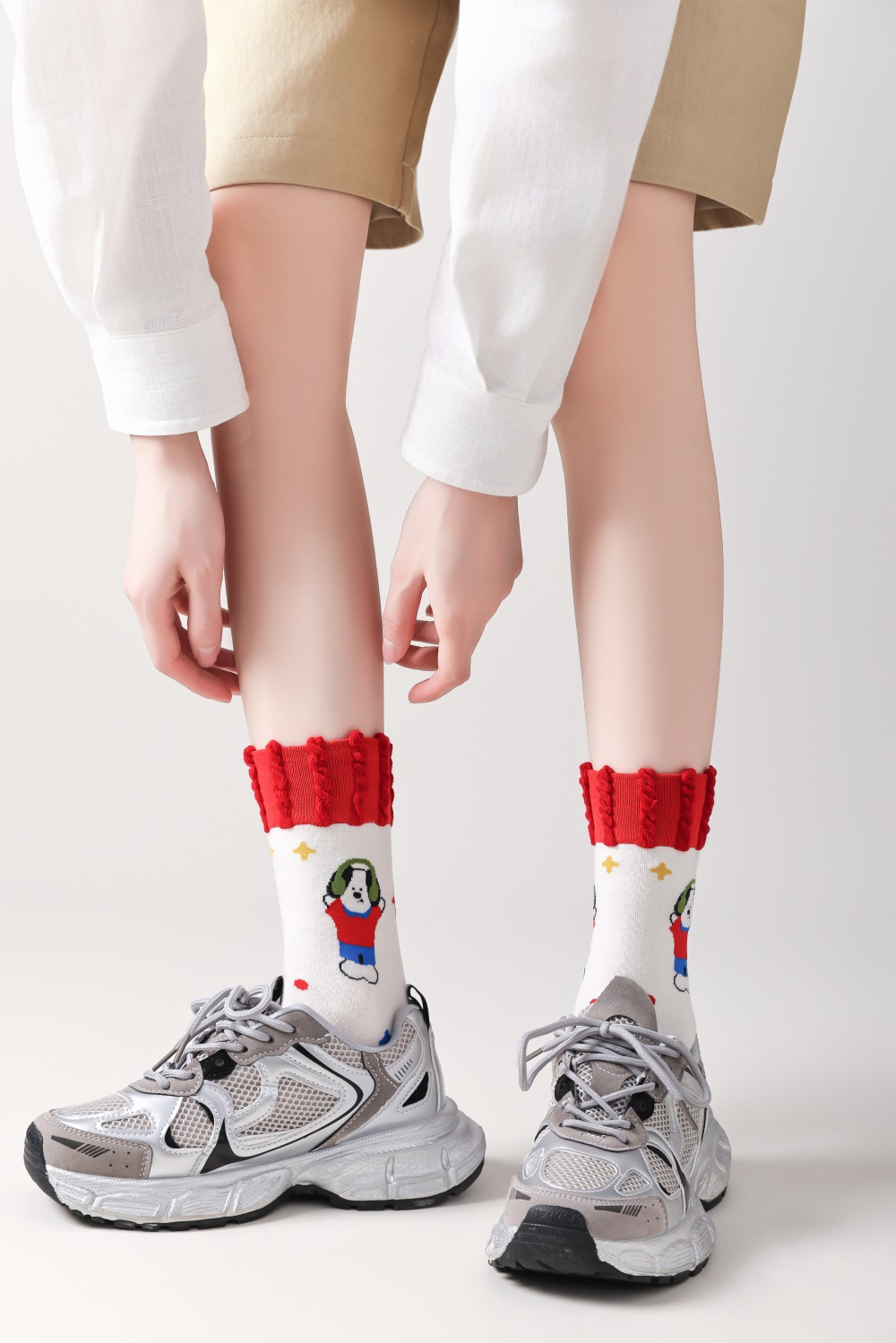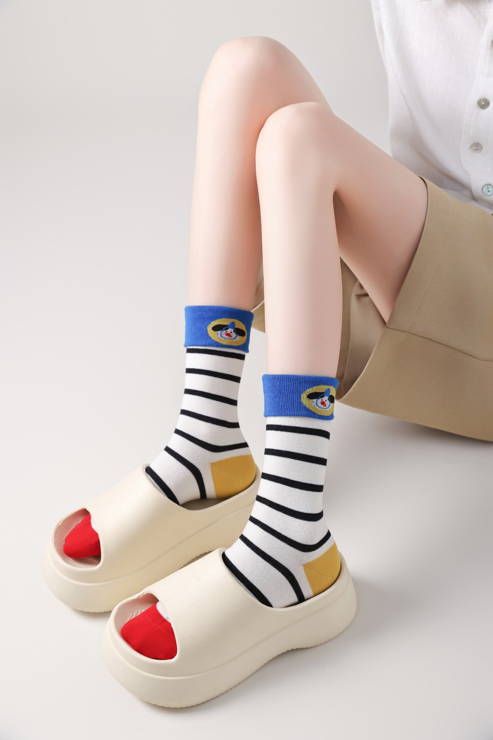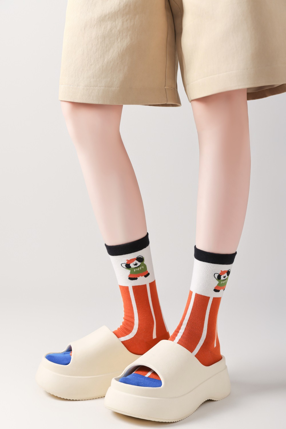 봄과 여름 양말 여성용 미드 튜브 스택 양말 명암 일본 스타일 Ins 만화 강아지 트렌디 인터넷 인기 소녀 올매치 유행 양말