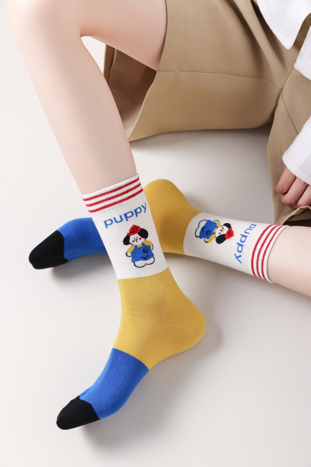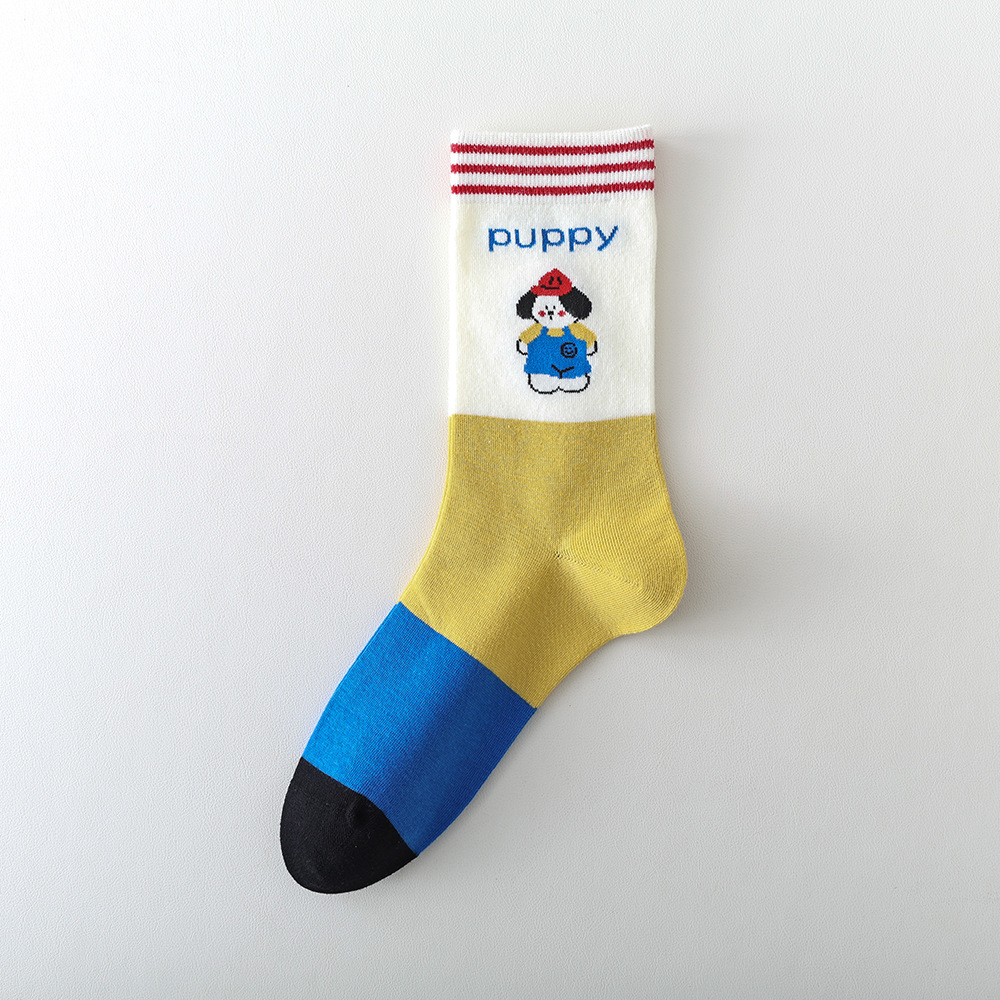 봄과 여름 양말 여성용 미드 튜브 스택 양말 명암 일본 스타일 Ins 만화 강아지 트렌디 인터넷 인기 소녀 올매치 유행 양말스토어 가기