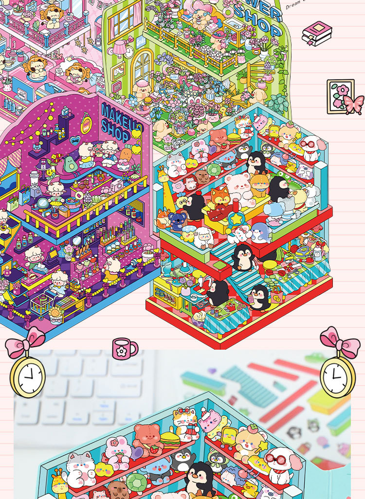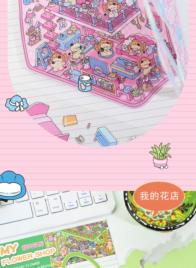 여신 축제 센 투어 7.0 접는 인사말 카드 마이크로 스케일 장면 풍경 감압 수제 2.5D 풍경 DIY 스티커스토어 가기