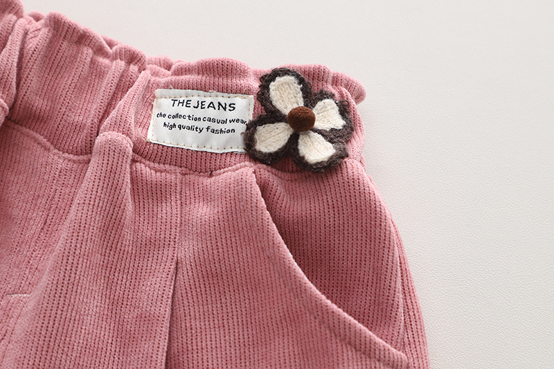 • 핑크 DQ 작은 꽃무늬 바지 허리밴드