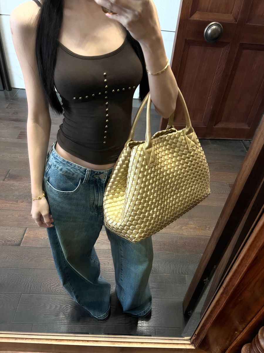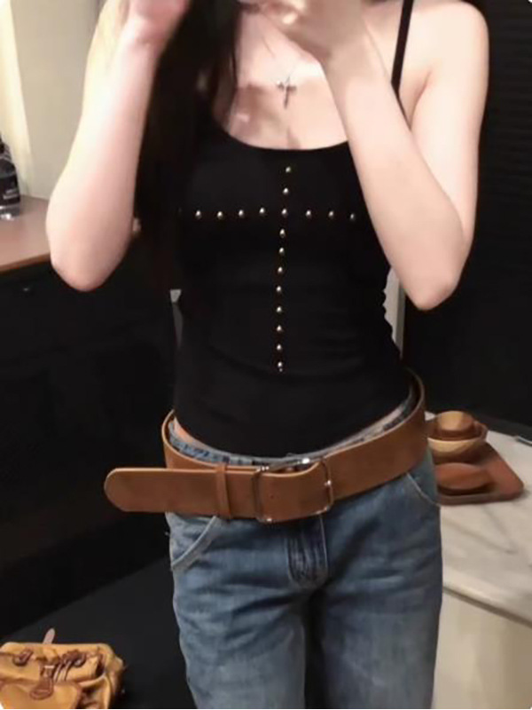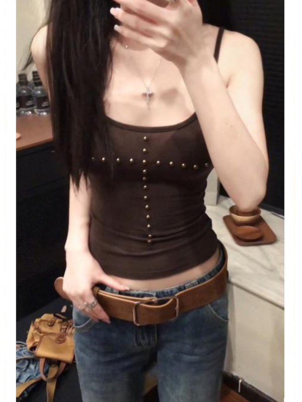 아메리칸 스타일 스파이스 소녀 틈새 크로스 리벳 카미 솔 여성의 2025 봄 새로운 슬림 핏 슬림 핏 이너 탑스토어 가기