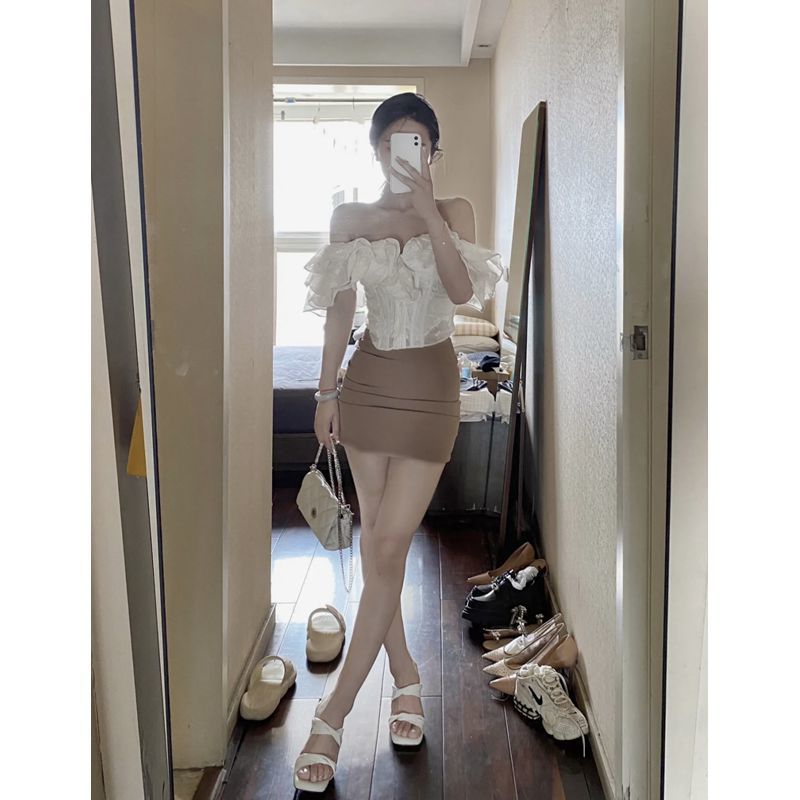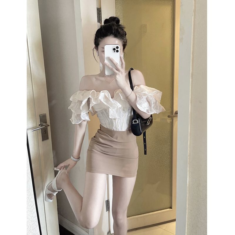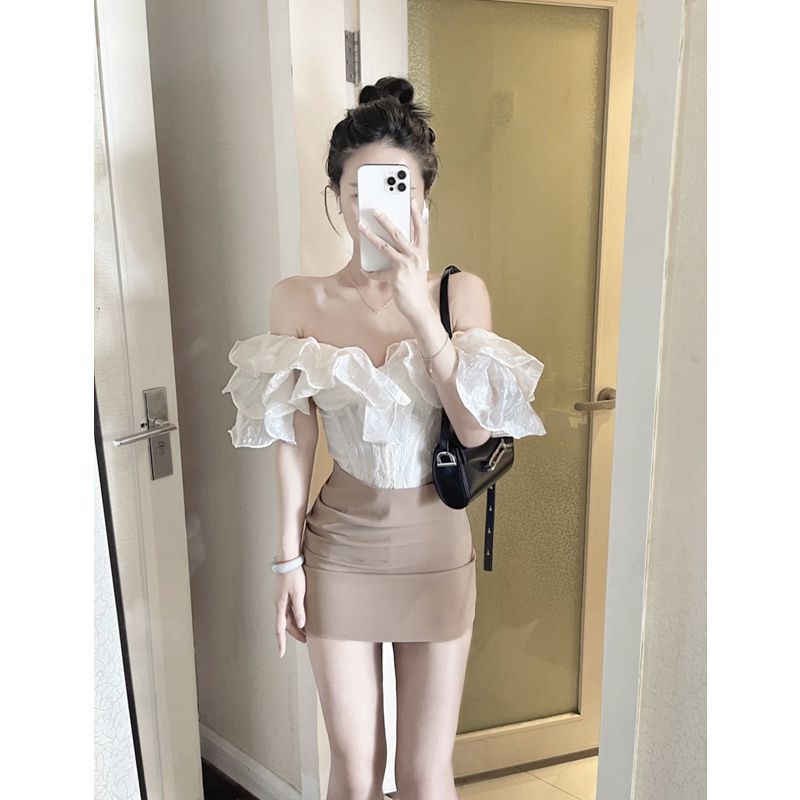 [2716 컬렉션] 세트 여성 2024 년 여름 새 스타일 뜨거운 소녀 어깨 슬림 셔츠스토어 가기