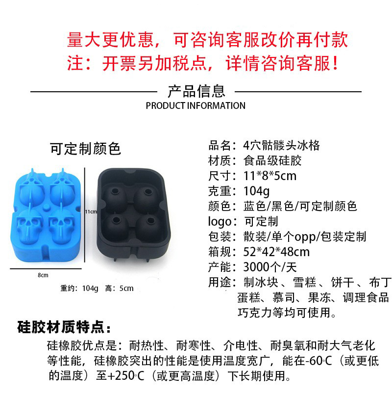 실리콘 해골 얼음 트레이 금형 식품 등급 실리콘 냉동 얼음 금형 얼음 트레이 급속 냉동 얼음 트레이 공장 직접 판매스토어 가기