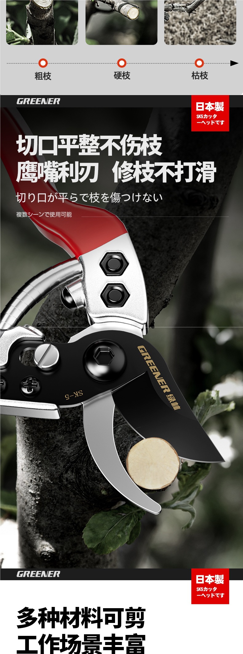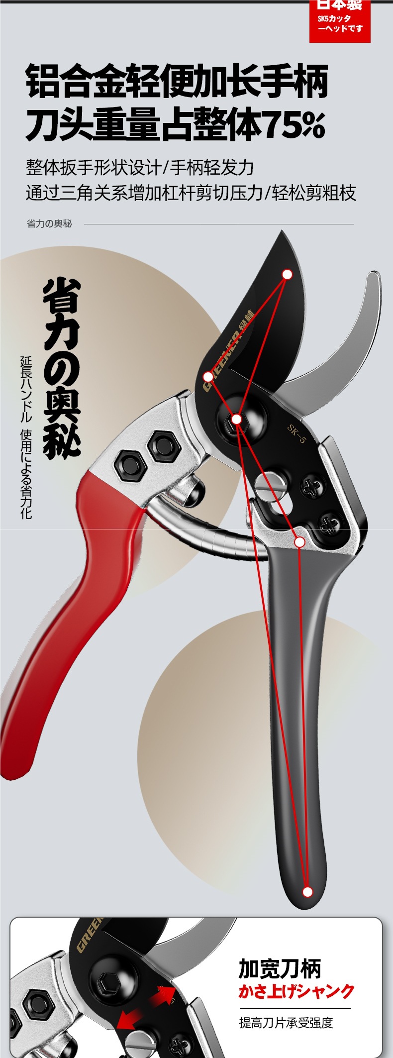 일본 수입 강철 칼 가지 치기 과일 나무 가지 치기 가위 가위 원예 가위 SK5 가지 꽃 가위 수출스토어 가기