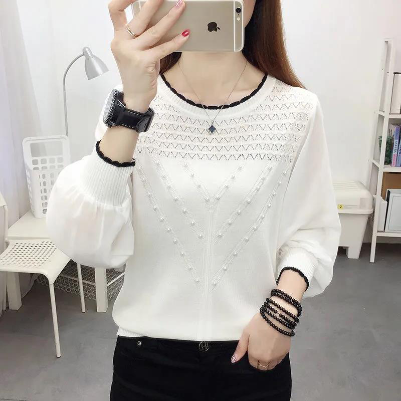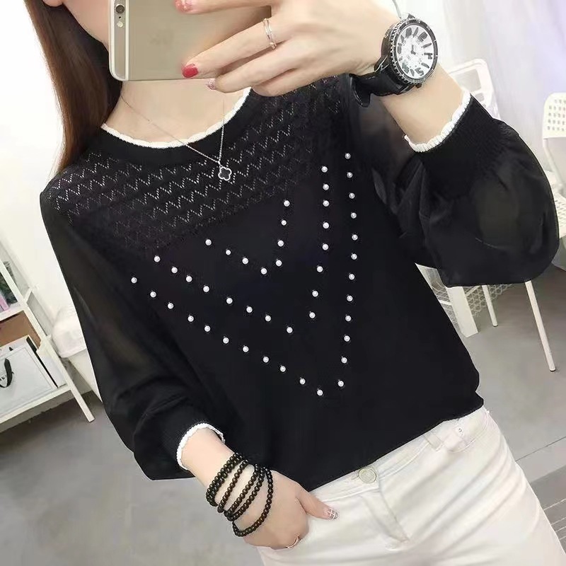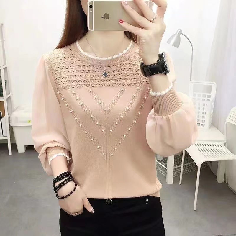 아이스 실크 쉬폰 바느질 니트웨어 여성용 이른 봄 새 탑 긴 소매 이른 가을 신선베이스 셔츠 속옷 스웨터