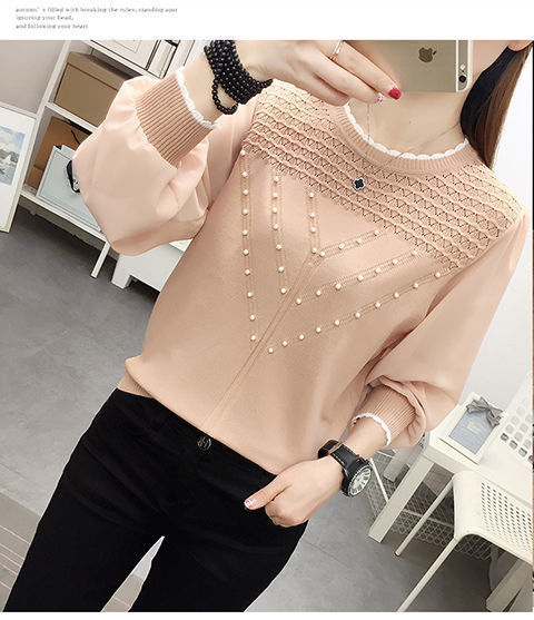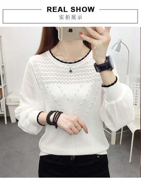 아이스 실크 쉬폰 바느질 니트웨어 여성용 이른 봄 새 탑 긴 소매 이른 가을 신선베이스 셔츠 속옷 스웨터스토어 가기