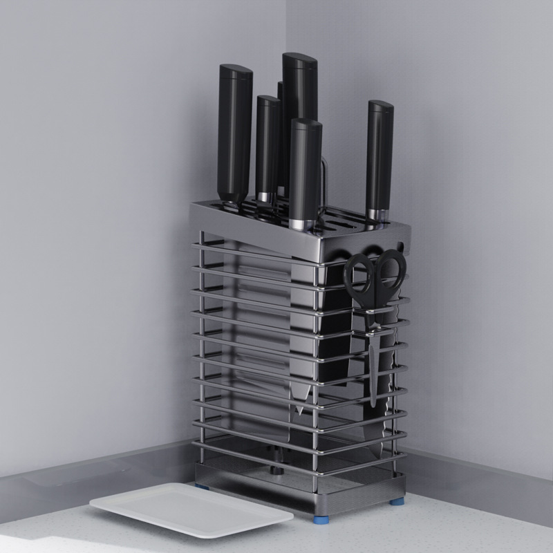 스테인레스 스틸 나이프 홀더 주방 나이프 홀더 멀티 나이프 가위 위치 다기능 배수 랙 곰팡이 방지 및 박테리아 방지 보관 랙