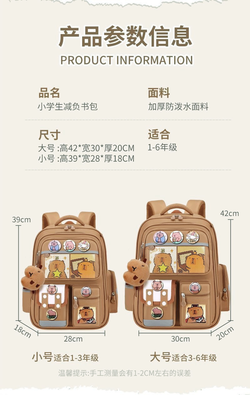 • 카피발라 브라운 라지 사이즈 [카드 3장이 포함된 싱글 스쿨백]