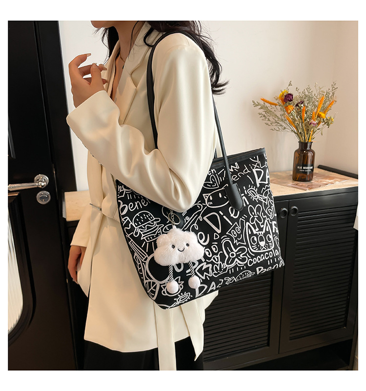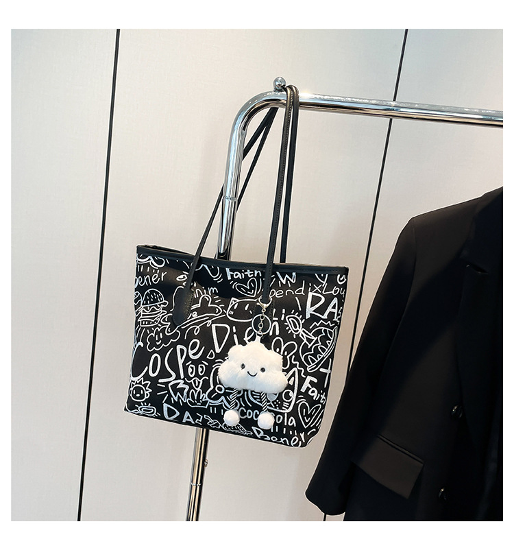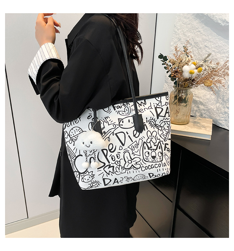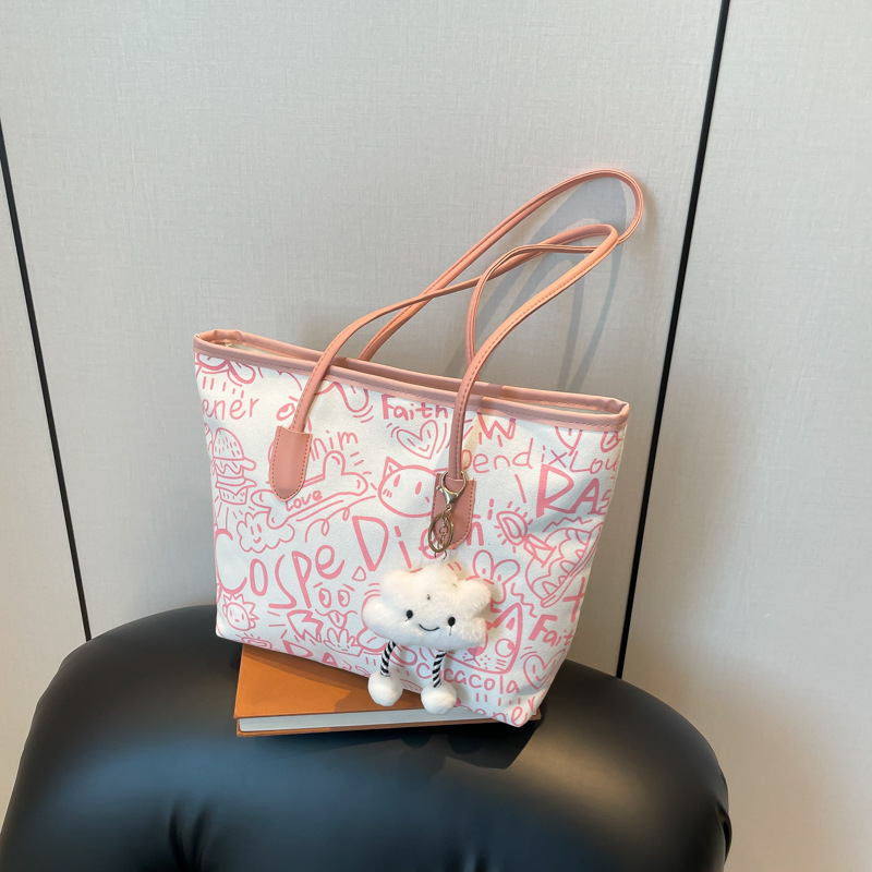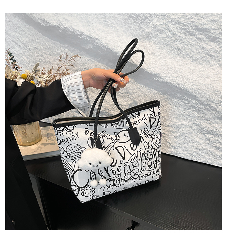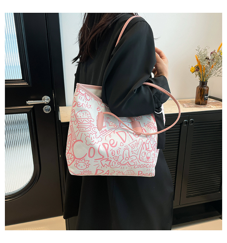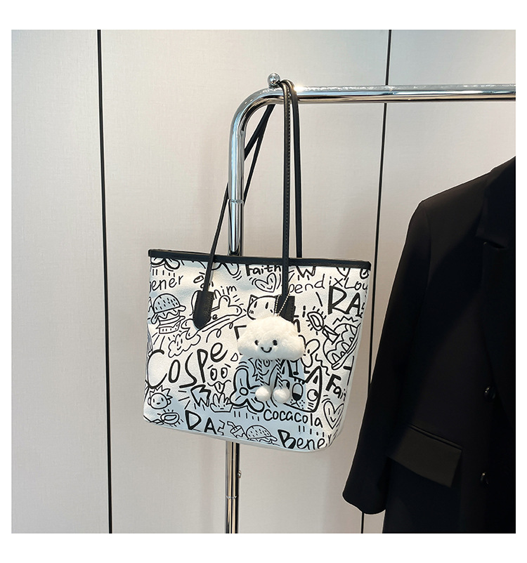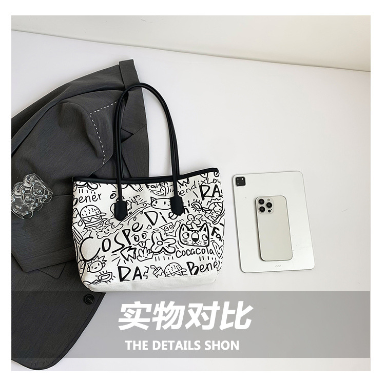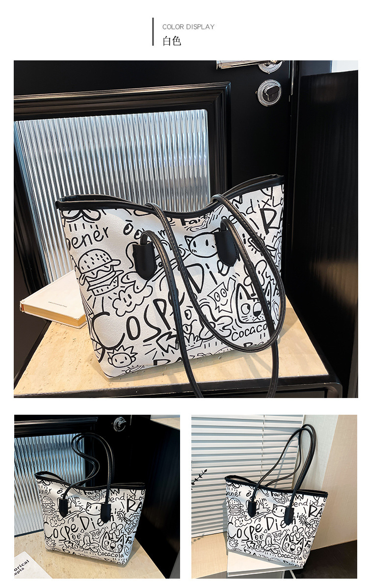틈새 디자인 낙서 휴대용 토트 백 여성의 2025 봄 새로운 캐주얼 어깨 가방 대용량 언더암 가방
