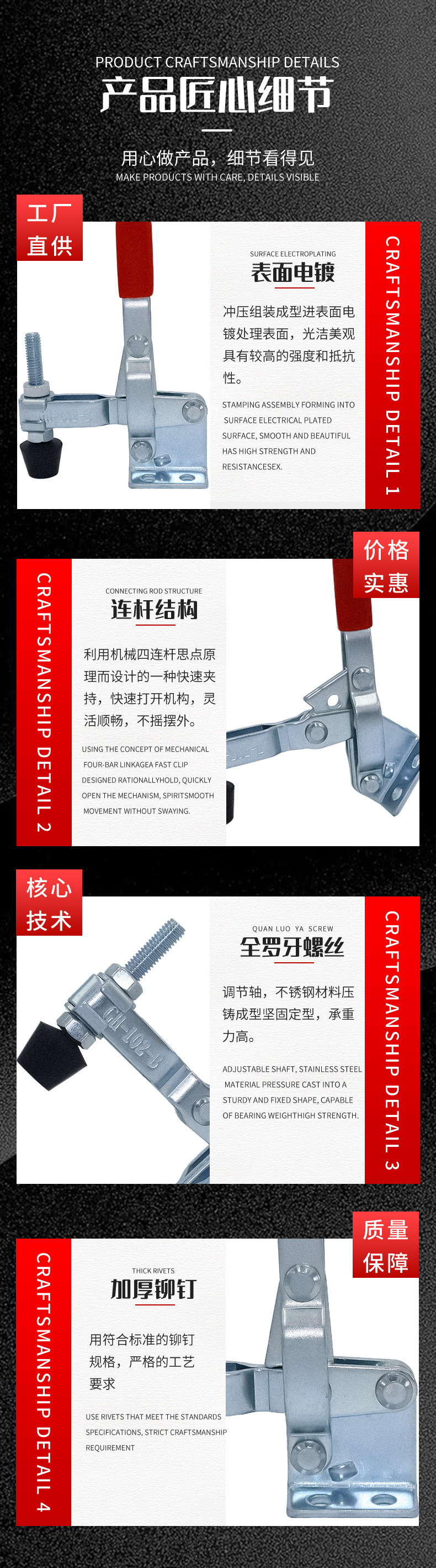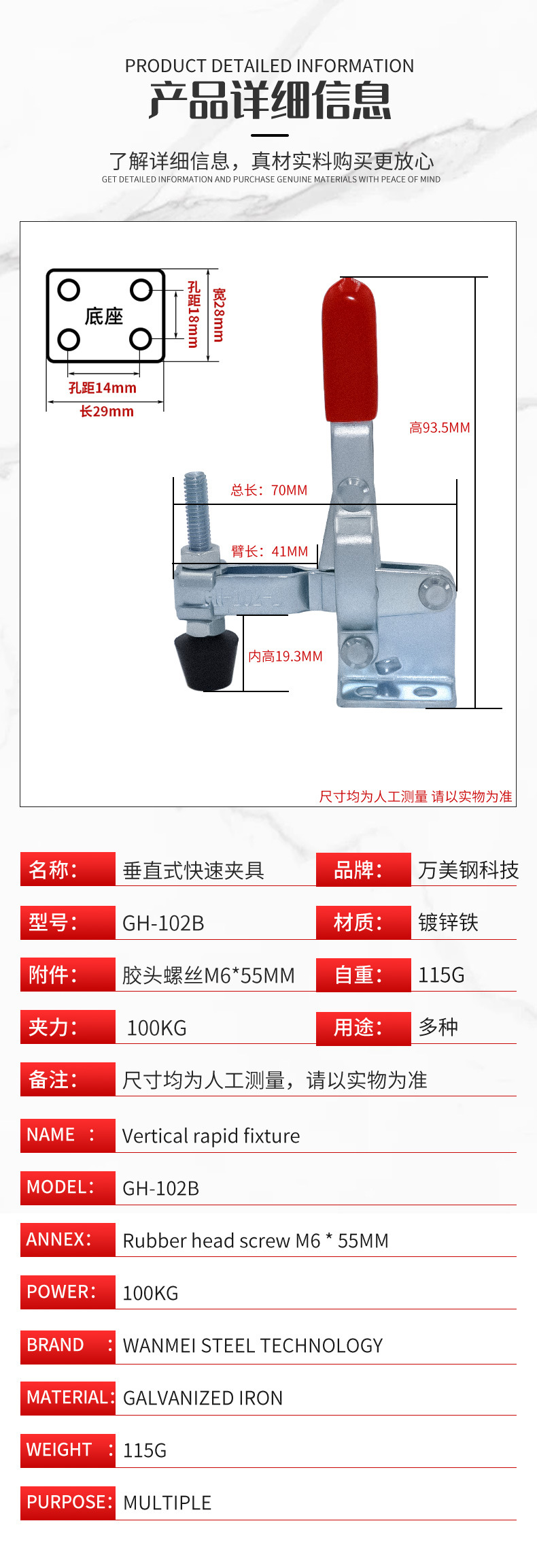 GH-102-B 수직형 퀵 클램프 아연 도금 퀵 클램프 용접 고정 클램프 공구 클램프 압착기