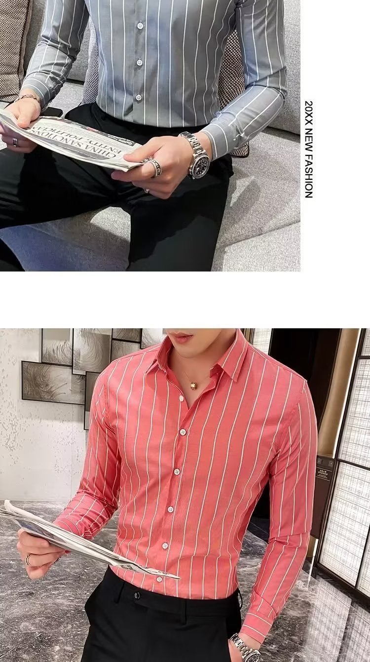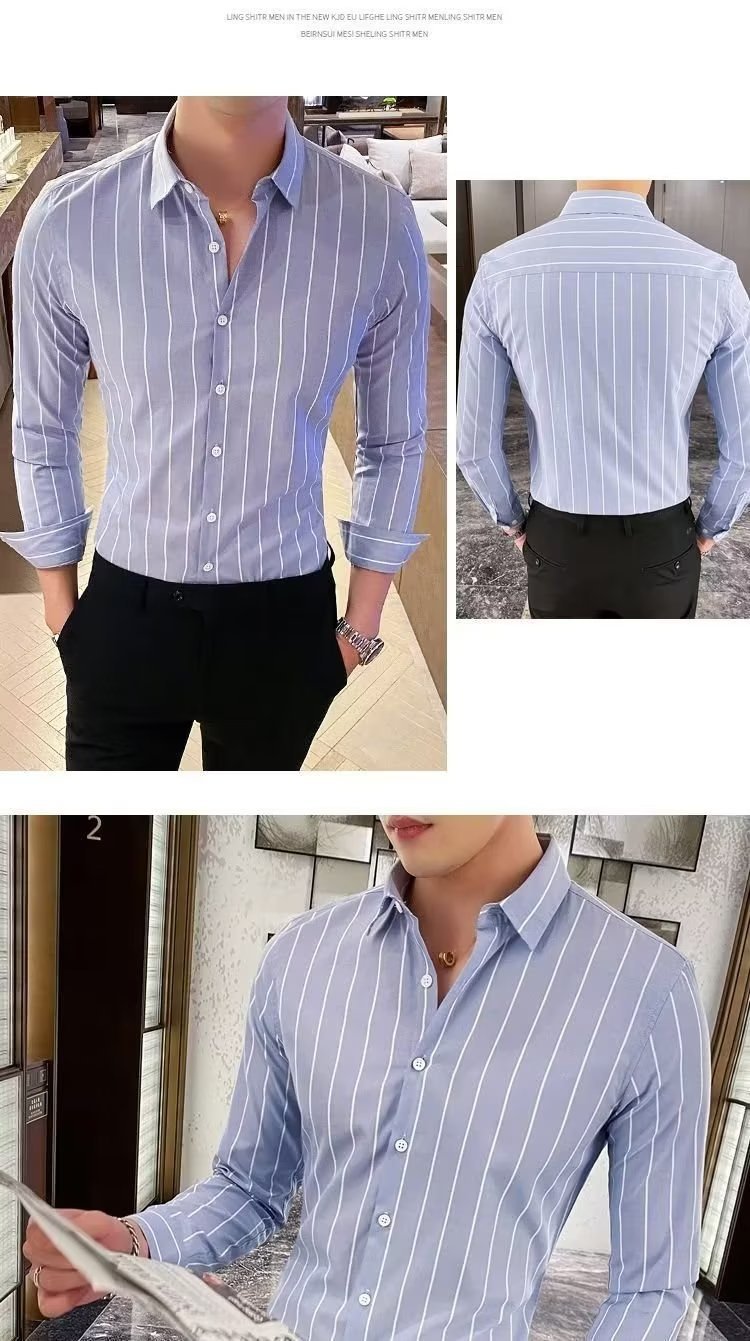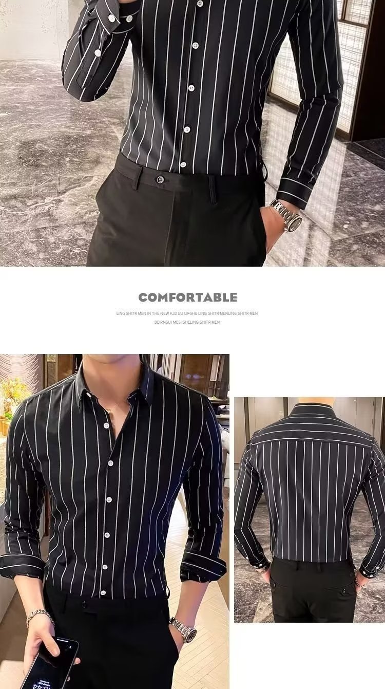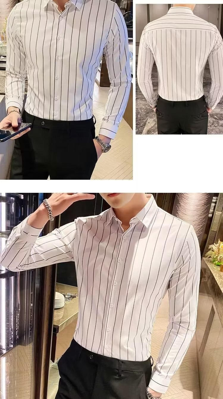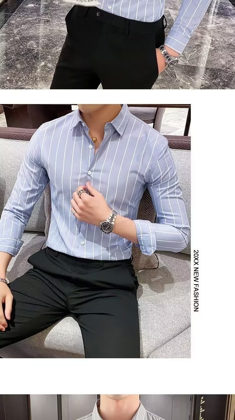 남자 슬림핏 올매치 셔츠 매일 비즈니스 스트라이프 셔츠 봄과 가을 청소년 새로운 유행 탑 티셔츠 카디건스토어 가기