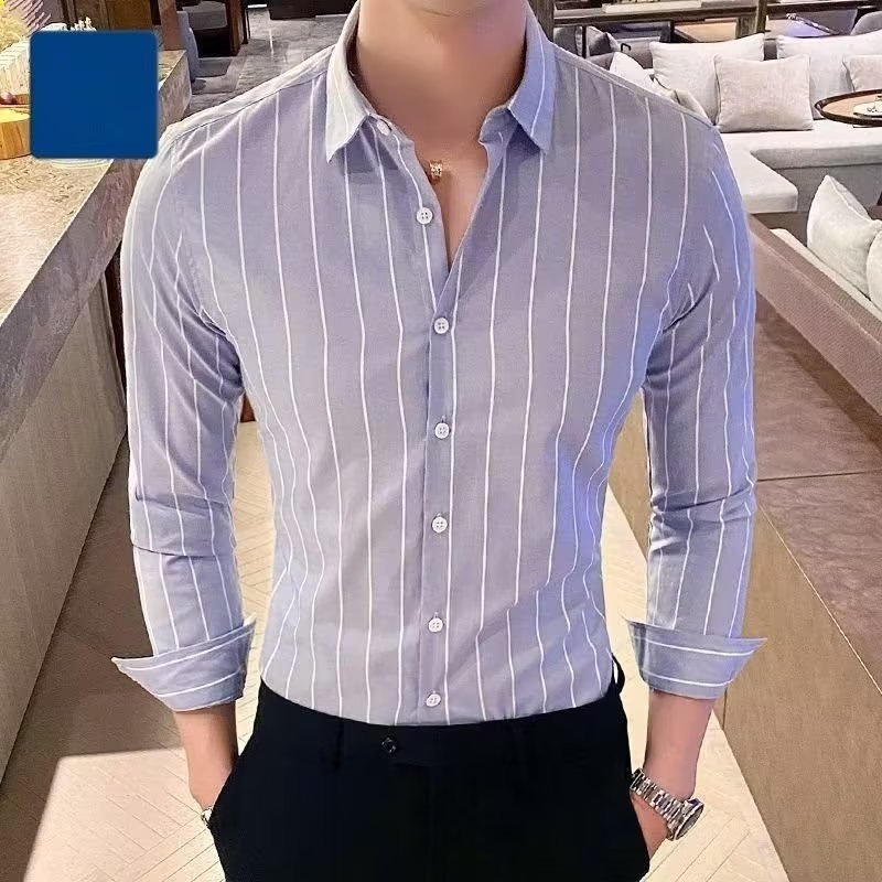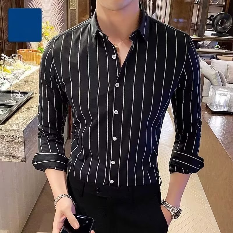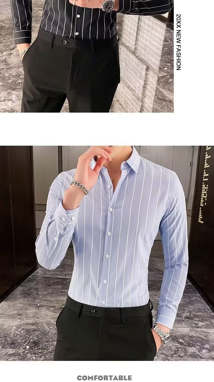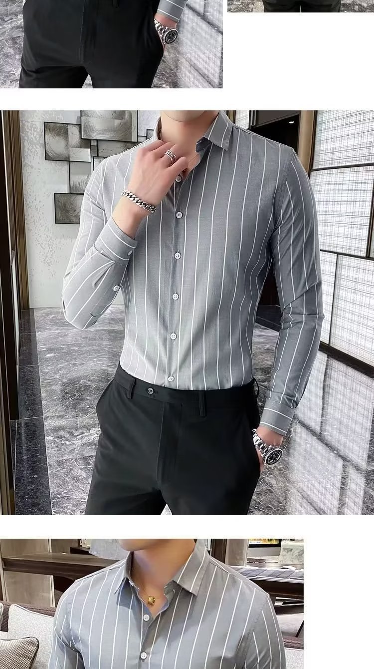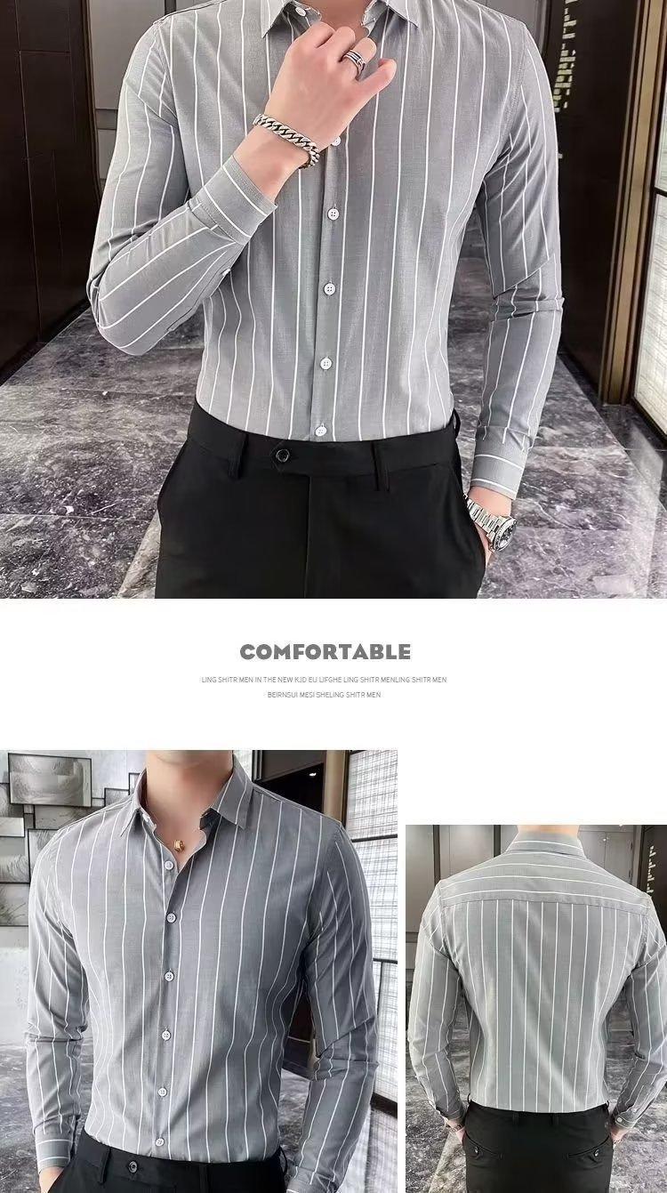 남자 슬림핏 올매치 셔츠 매일 비즈니스 스트라이프 셔츠 봄과 가을 청소년 새로운 유행 탑 티셔츠 카디건스토어 가기