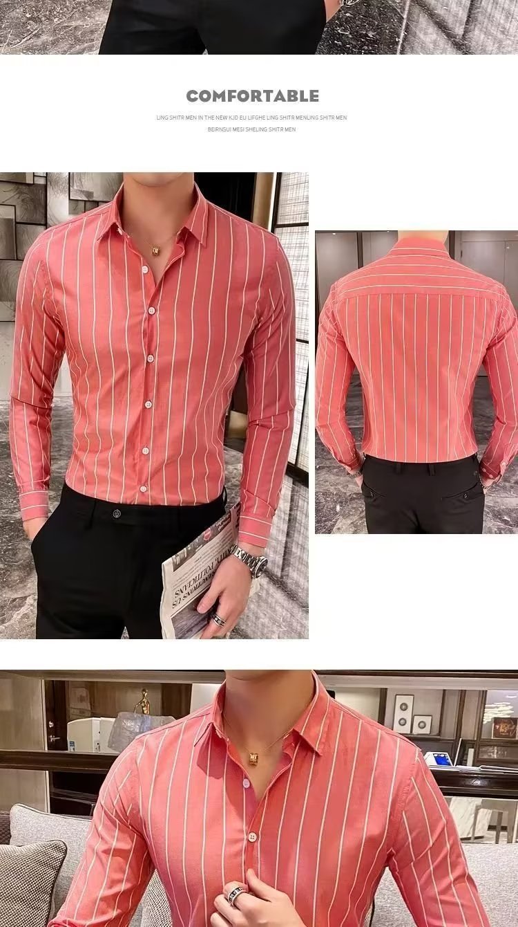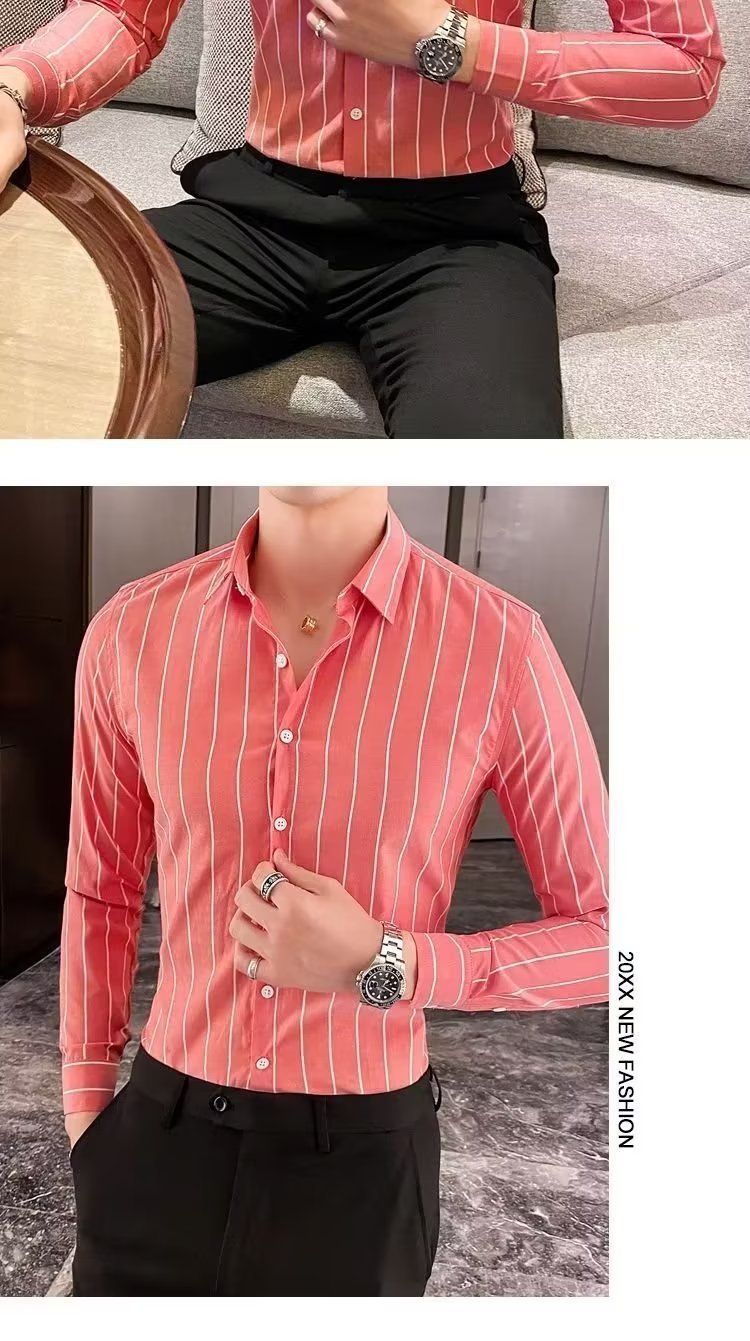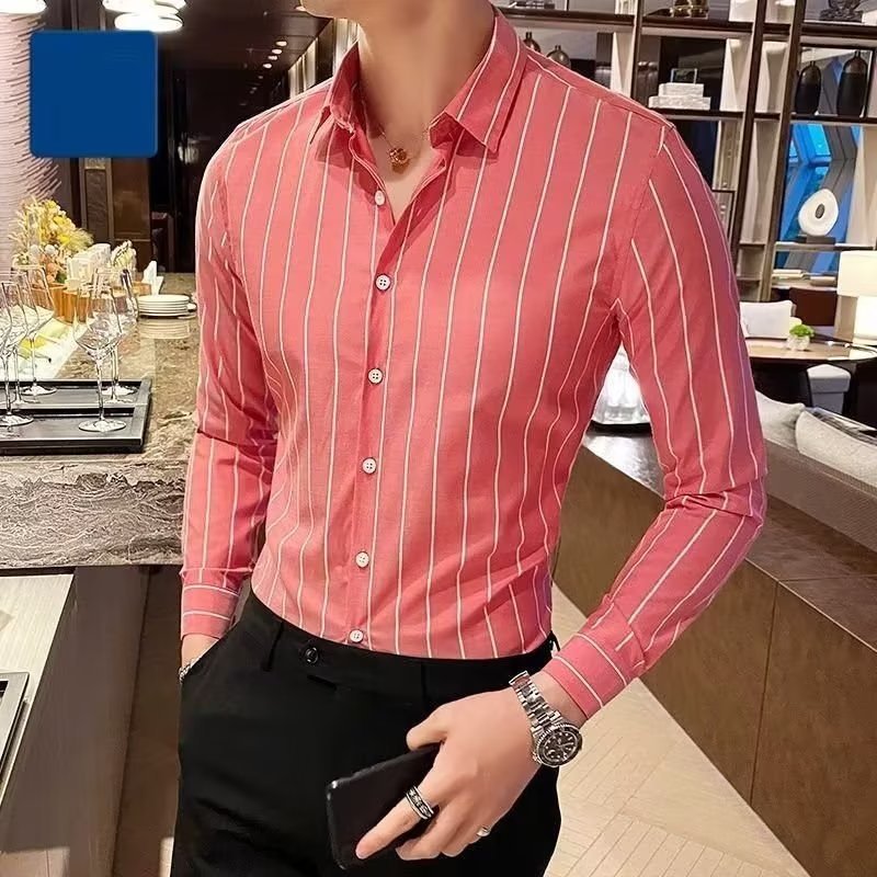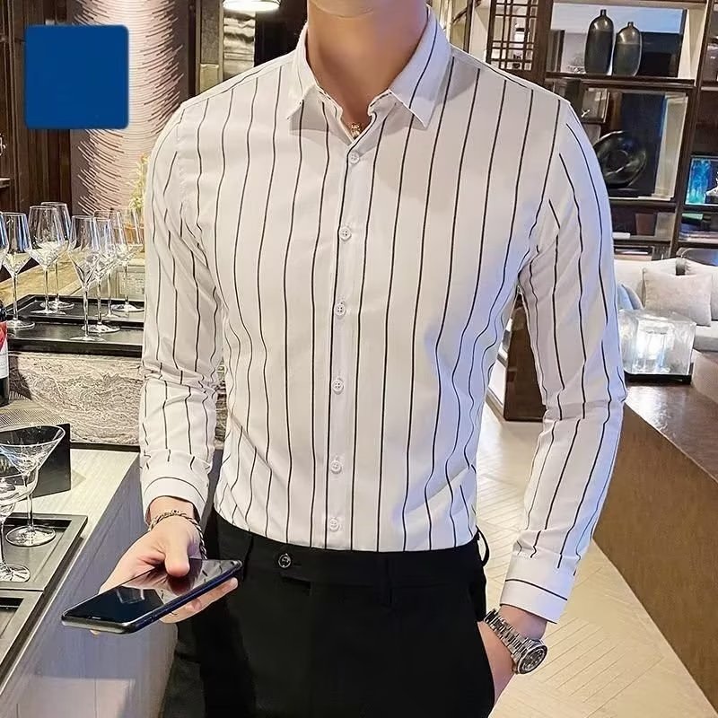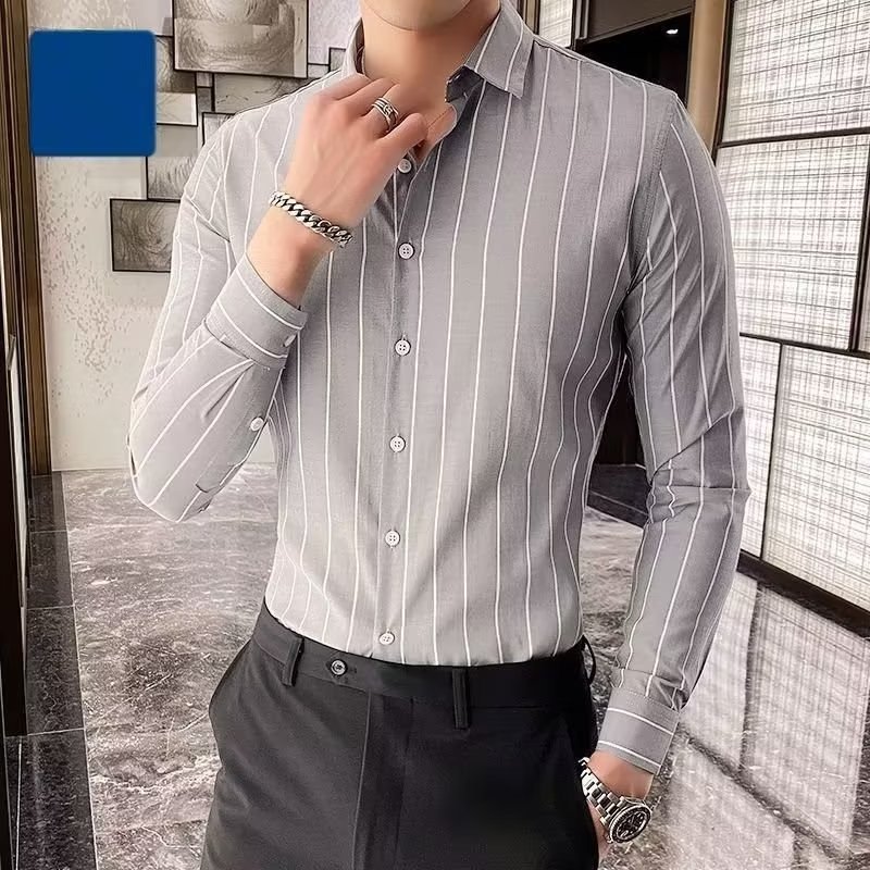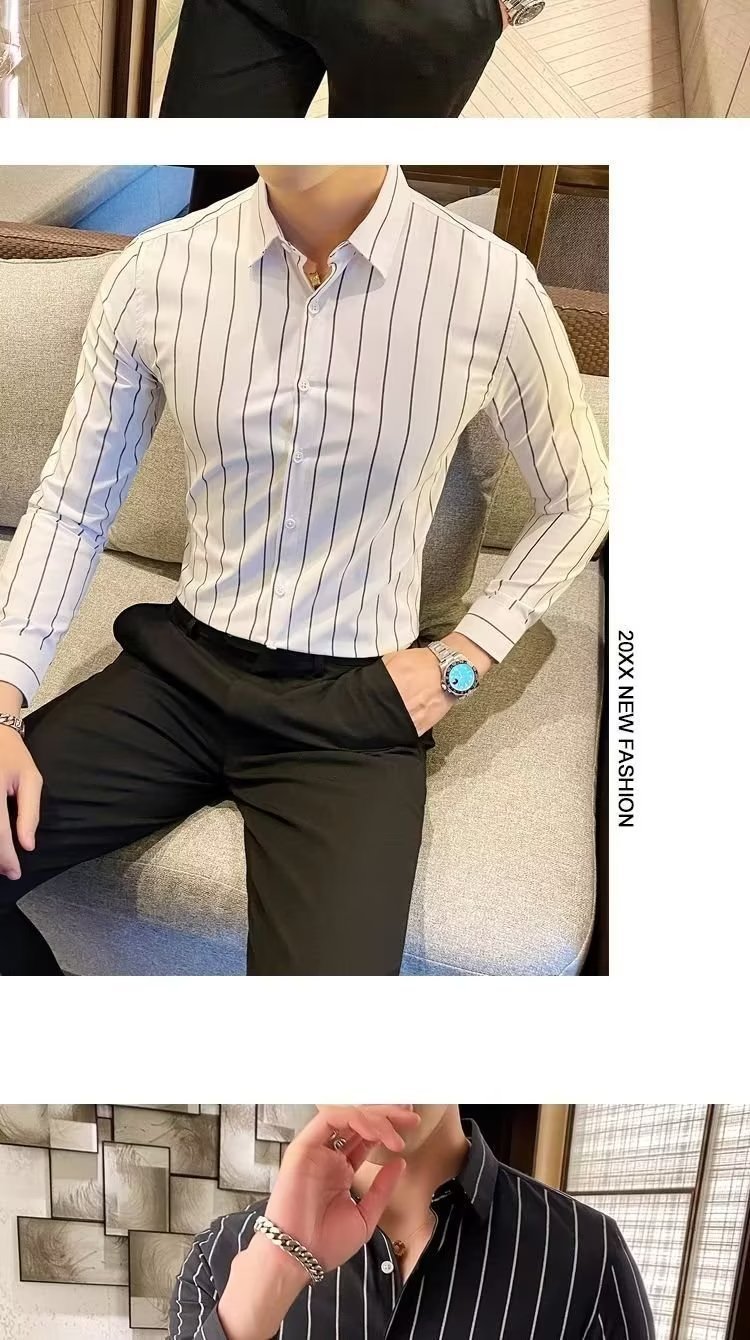 남자 슬림핏 올매치 셔츠 매일 비즈니스 스트라이프 셔츠 봄과 가을 청소년 새로운 유행 탑 티셔츠 카디건스토어 가기