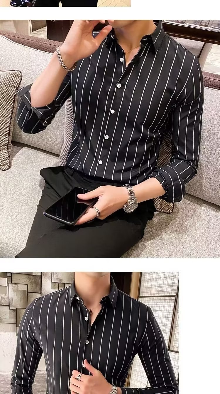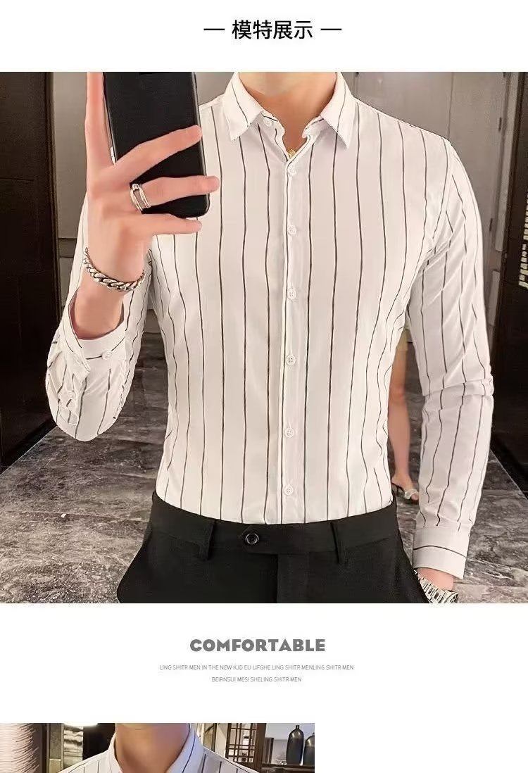 男士修身百搭衬衫日常商务条纹衬衣春秋青年新款潮流上衣T恤开衫