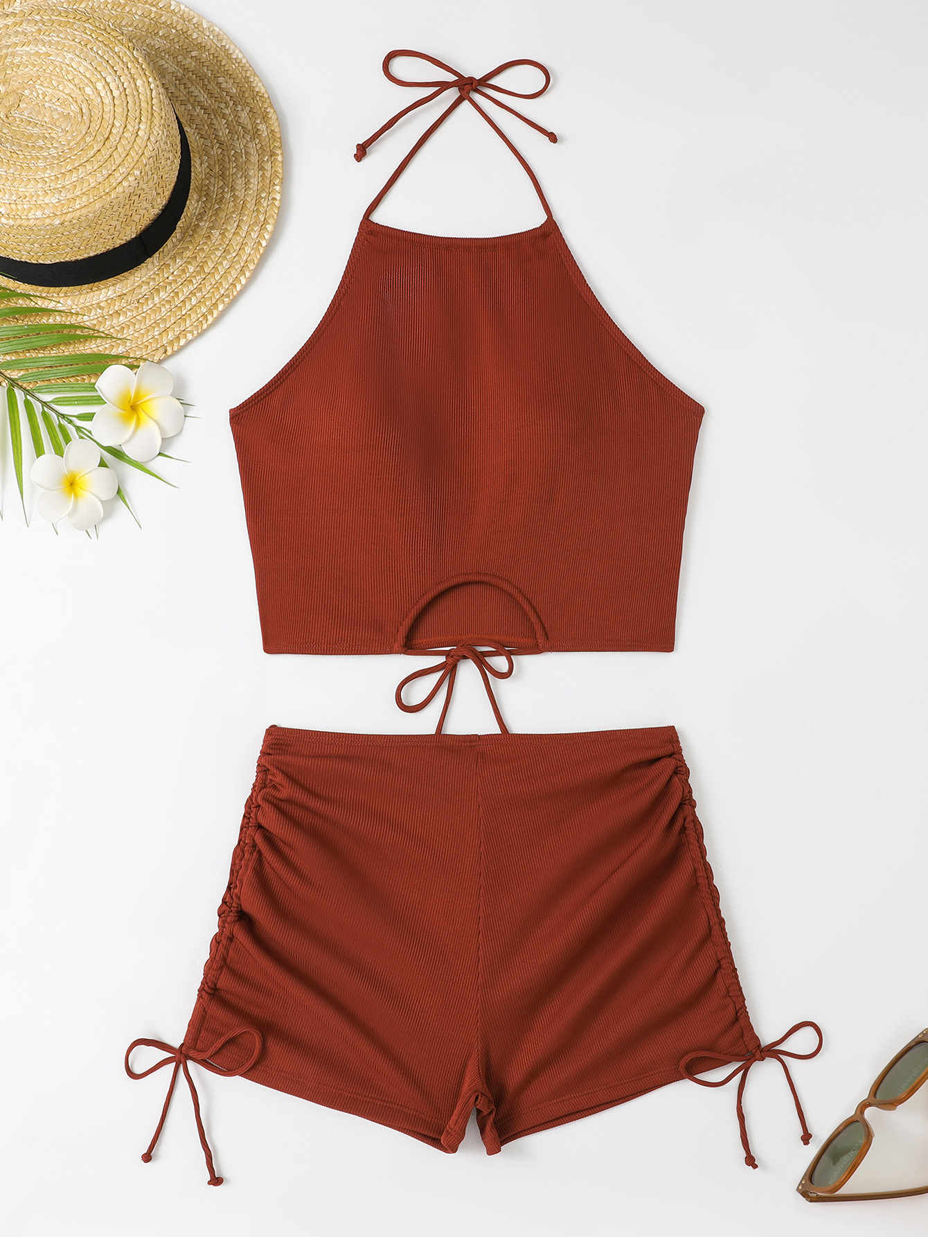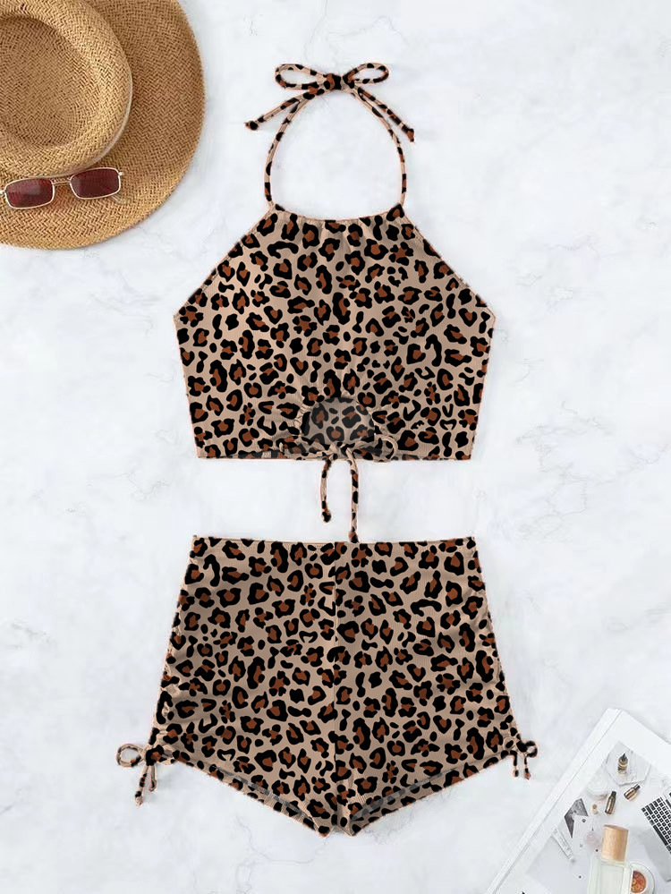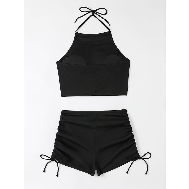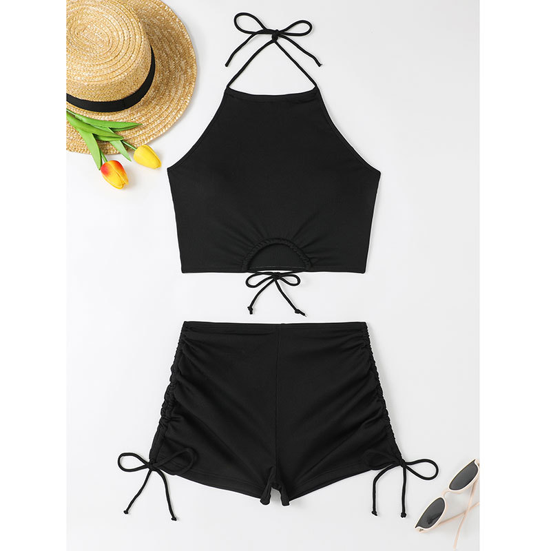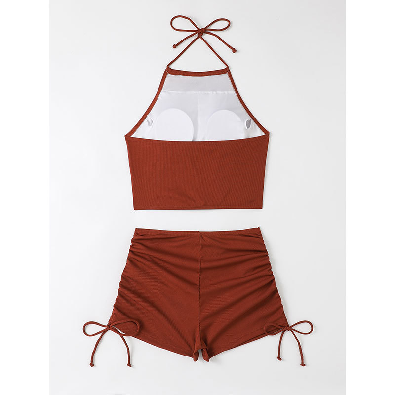 새로운 유럽과 미국의 높은 허리 슬링 스트랩 섹시한 스플릿 넥 수영복 여성 여름 플랫 코너 스포츠 비치 비키니
