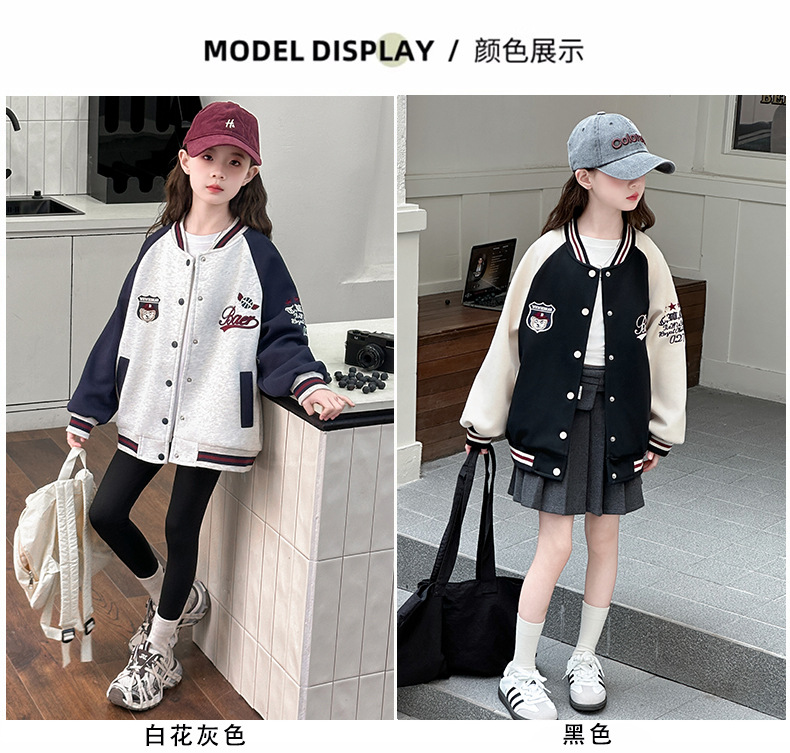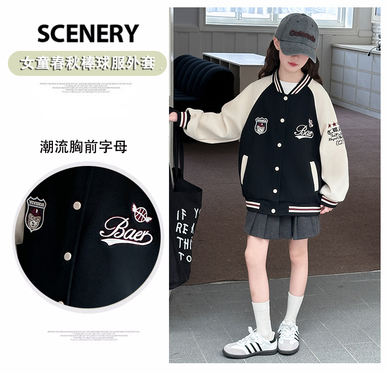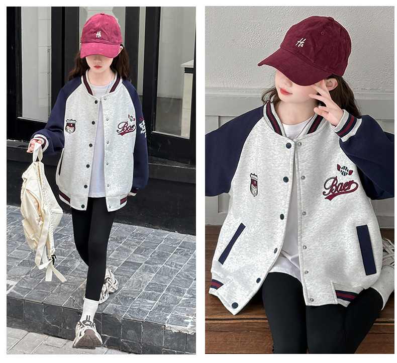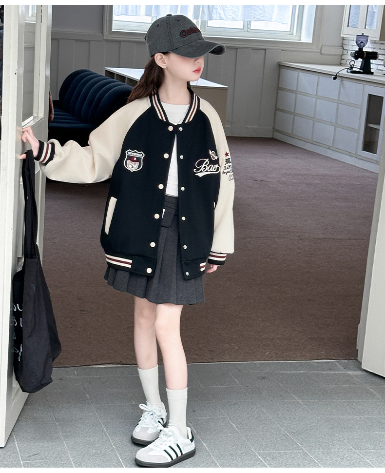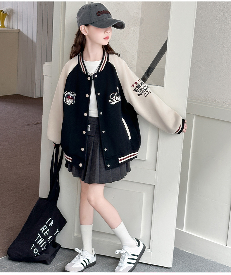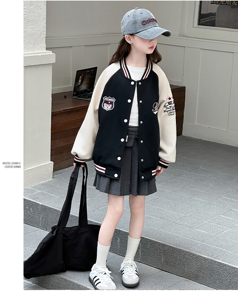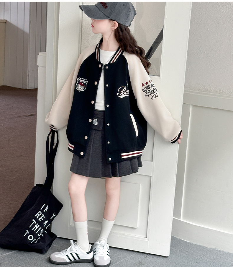 여아 코트 봄 가을 2026 신상 한국 스타일 세련된 캐주얼 패셔너블 스트리트 스타일 다용도 큰아이들을 위한 배색 야구점퍼