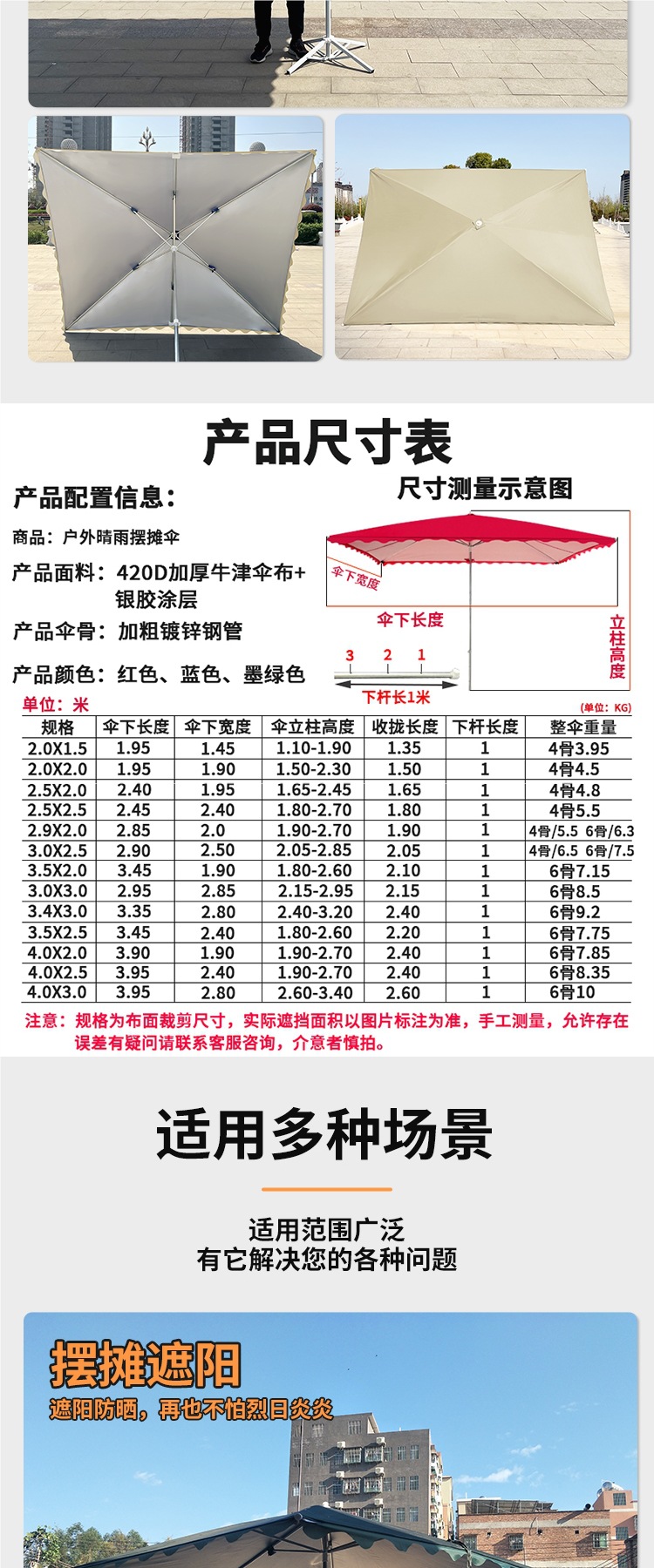 태양 우산 대형 야외 스톨 우산 햇살 우산 대형 직사각형 비방 선 스크린 상업용 두꺼운 캐노피