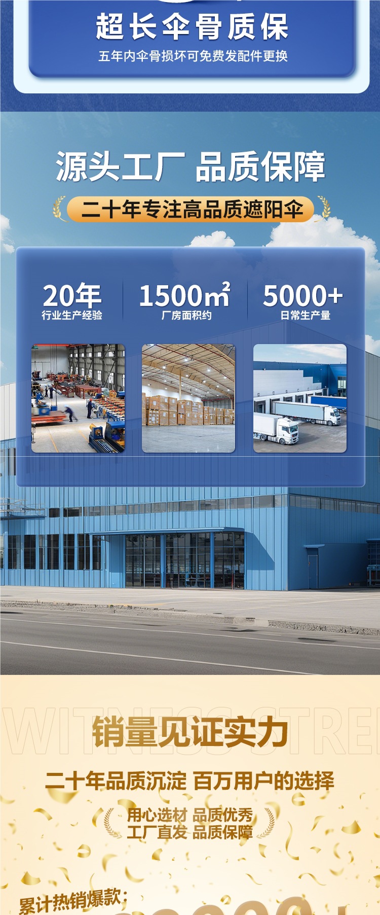 • 파란색 일반 우산 4X 3m 두꺼운 6개 갈비뼈 + 베이스