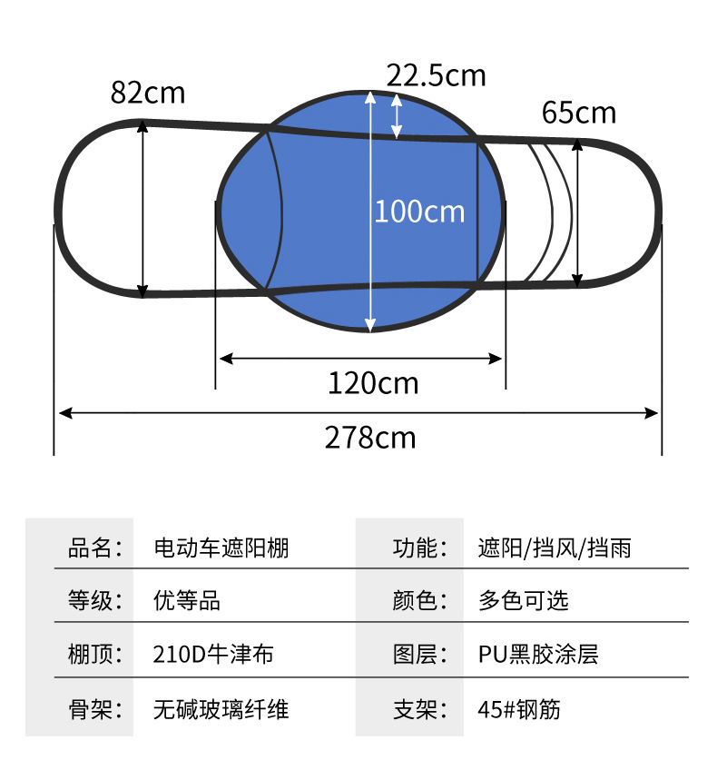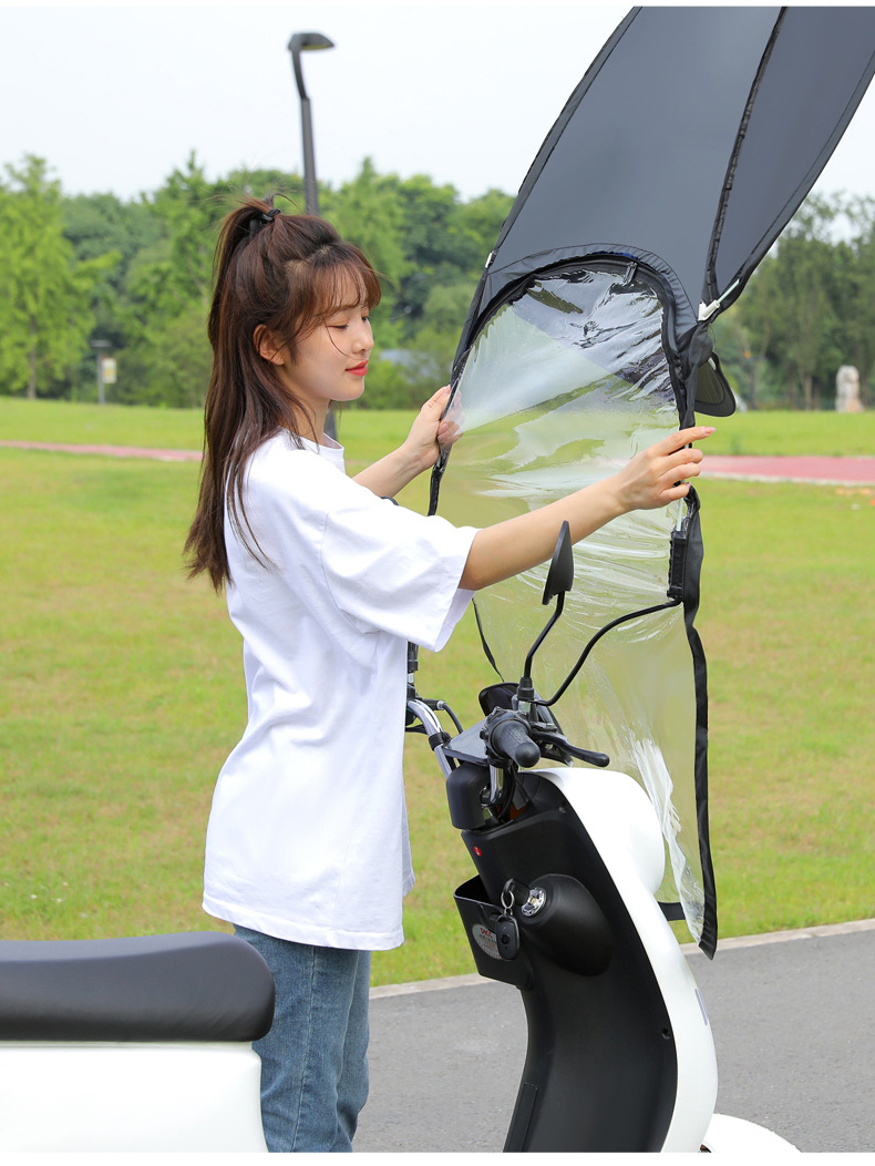 전기 배터리 자동차 캐노피 새로운 분리 가능한 오토바이 방직 태양 보호 앞 유리 비 커버 안전 우산