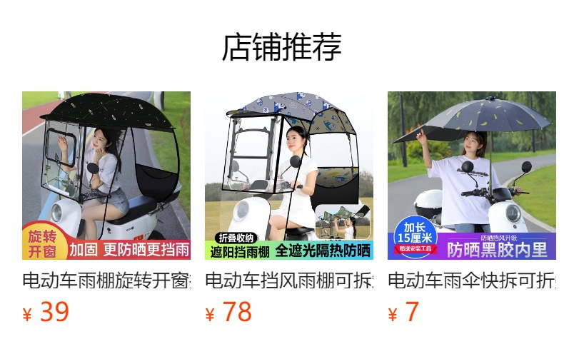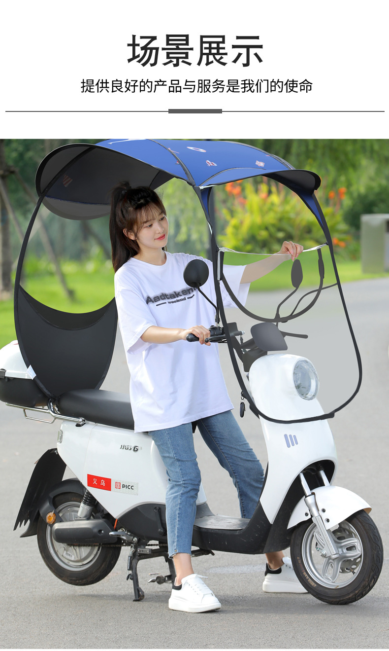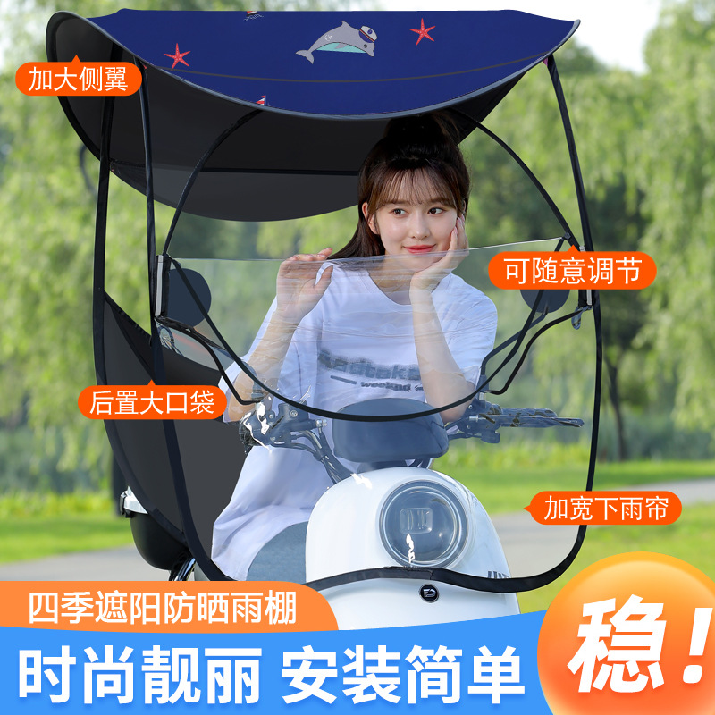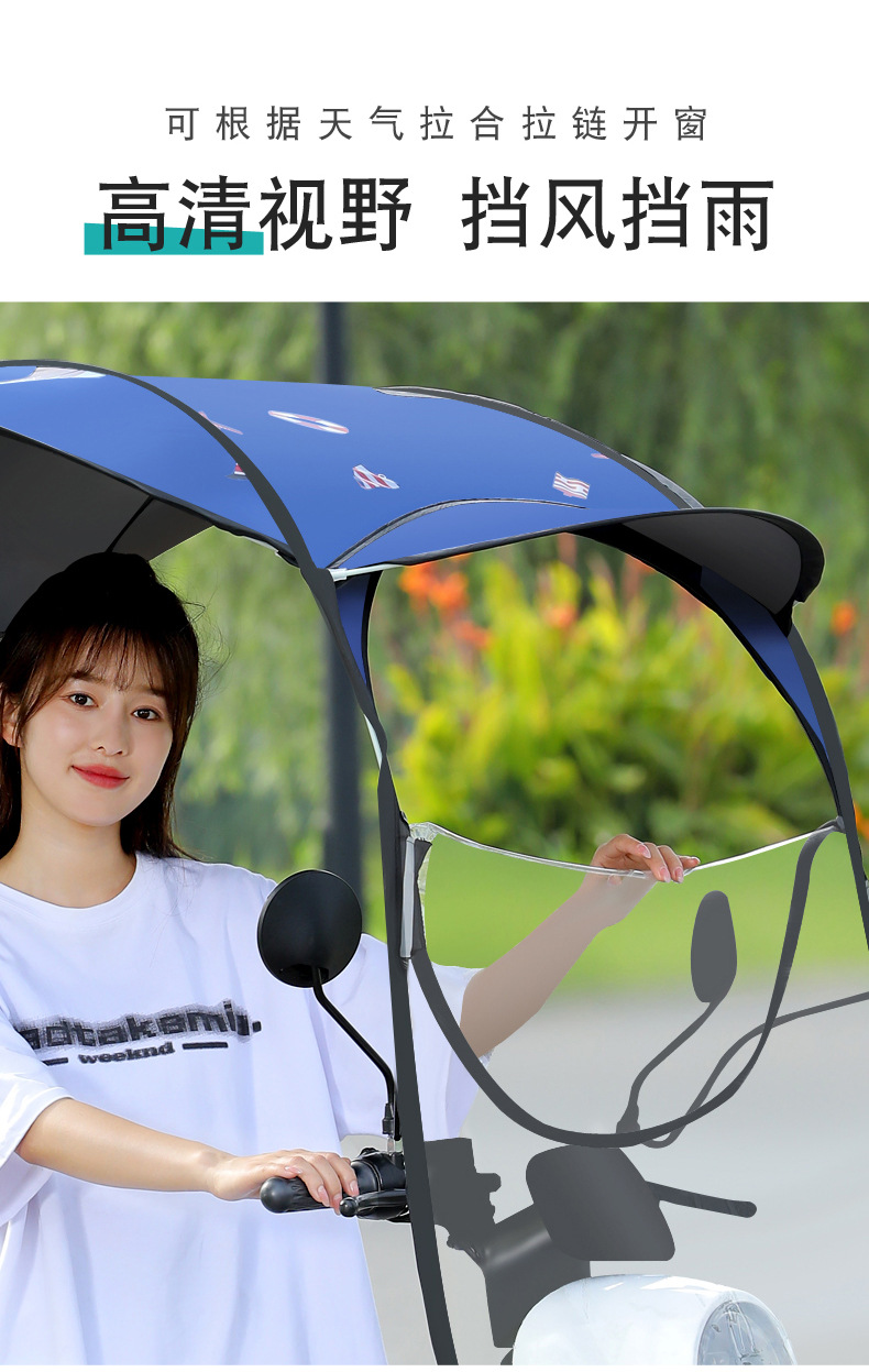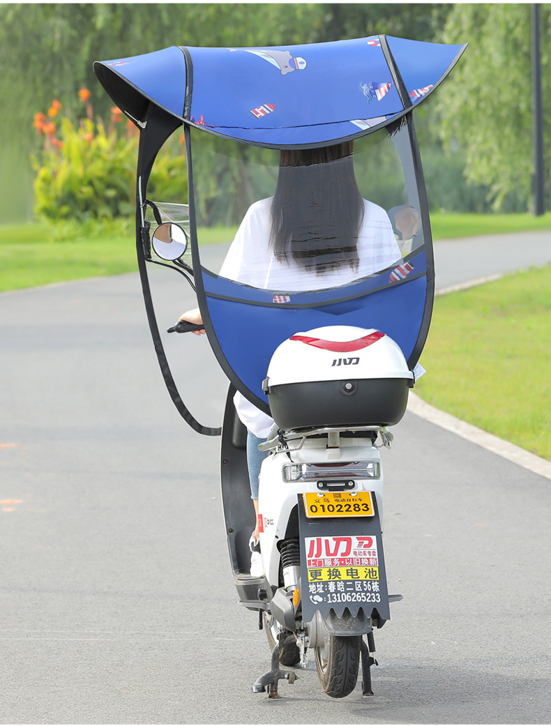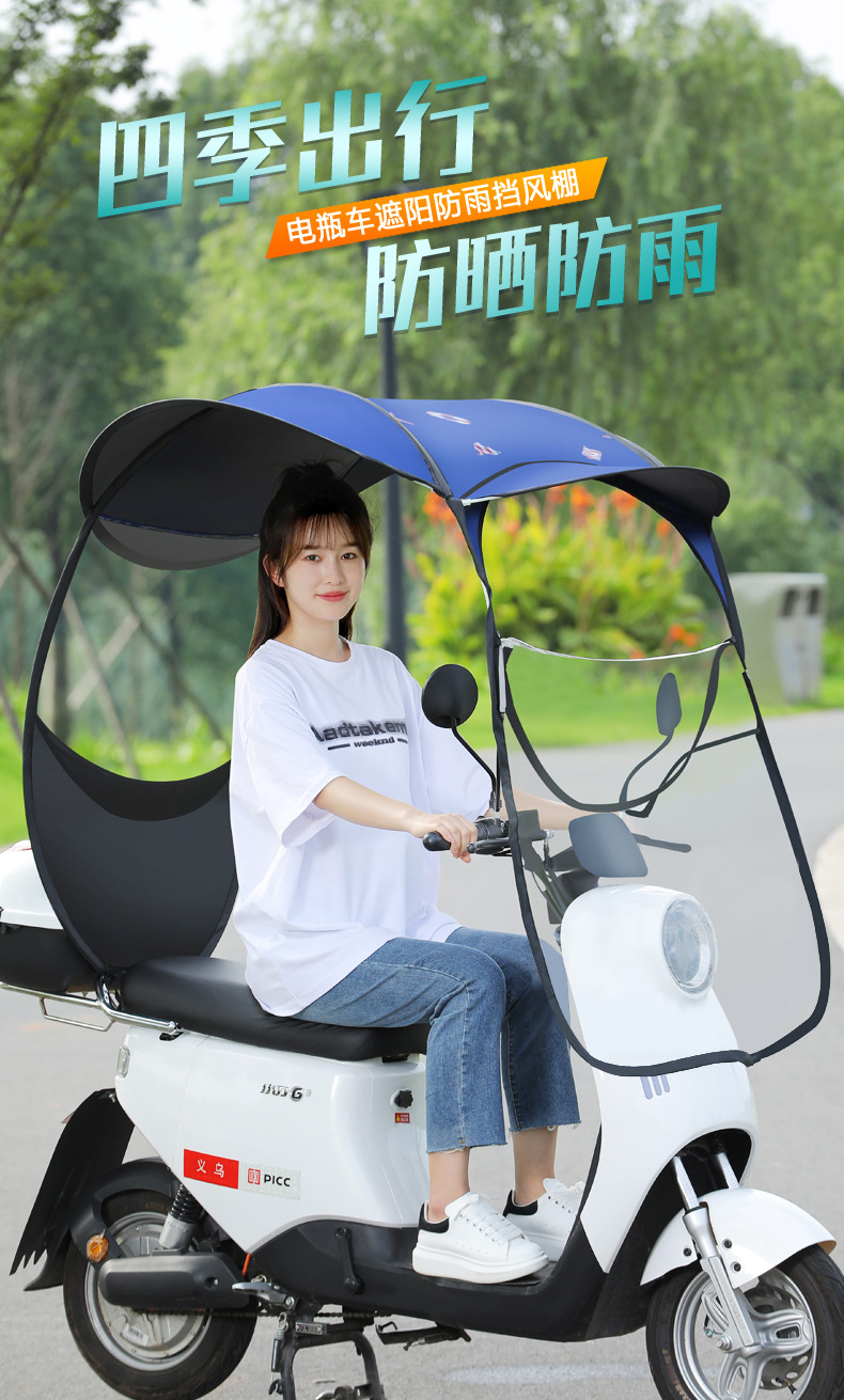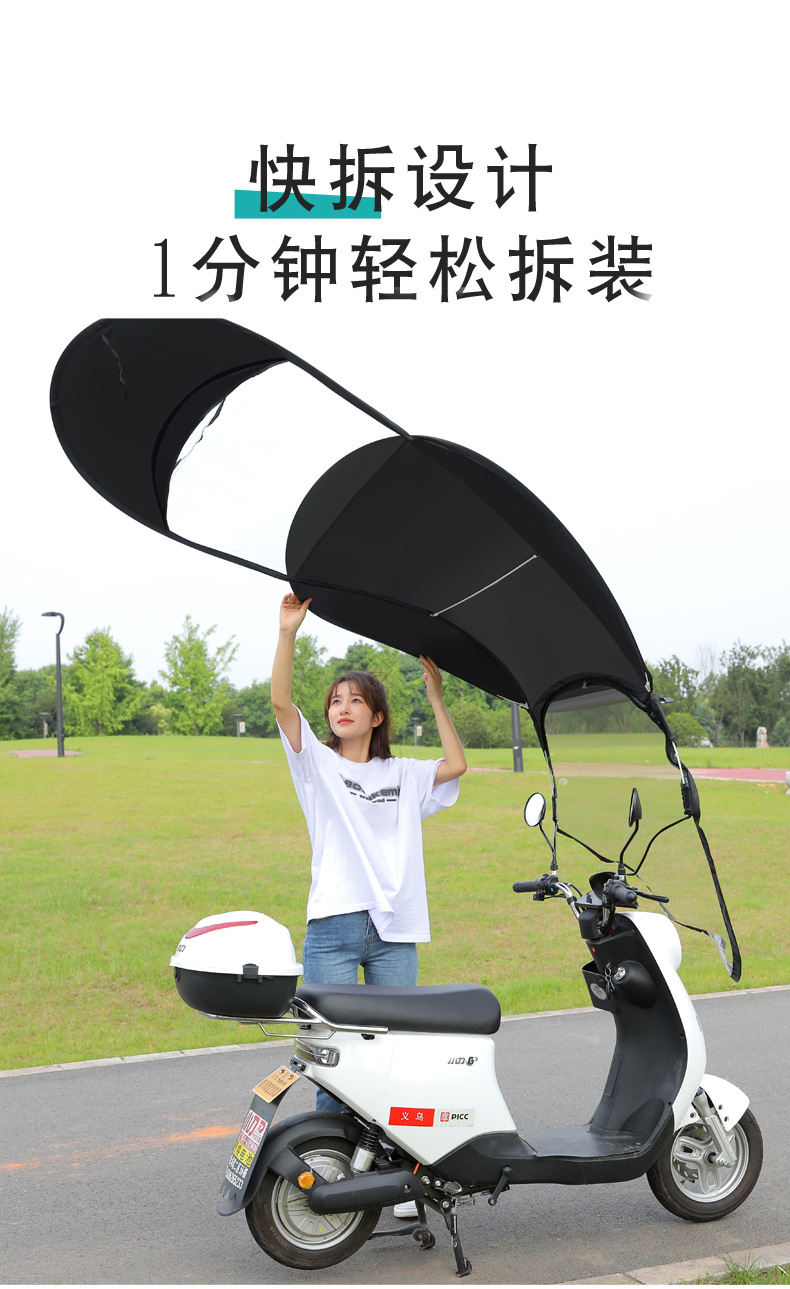 전기 배터리 자동차 캐노피 새로운 분리 가능한 오토바이 방직 태양 보호 앞 유리 비 커버 안전 우산스토어 가기