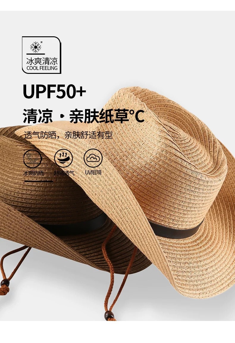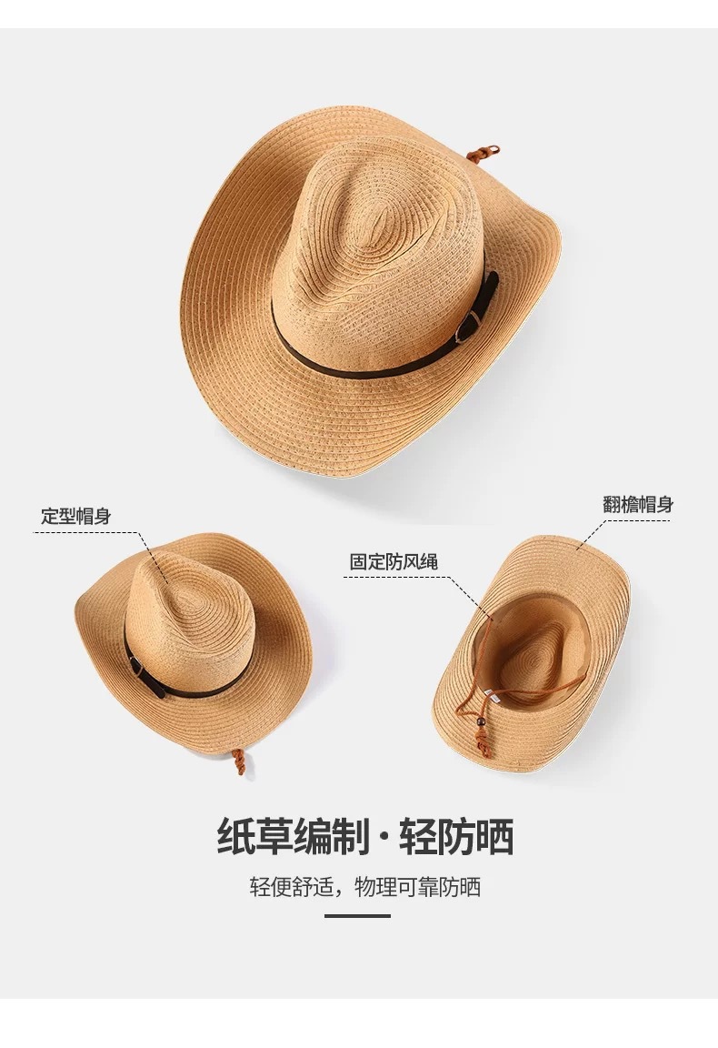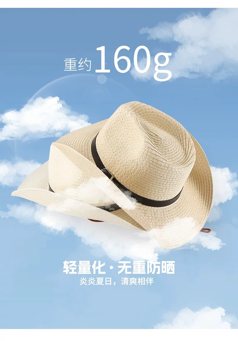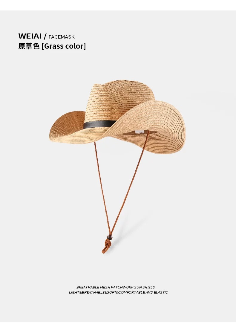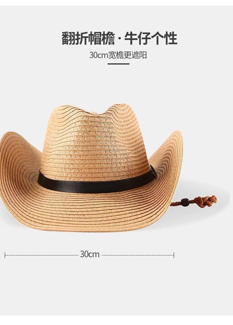 밀짚 기사 모자 소년 야외 등산 큰 처마 태양 모자 스파이스 소녀 여름 태양 보호 레트로 서부 카우보이 모자 여성