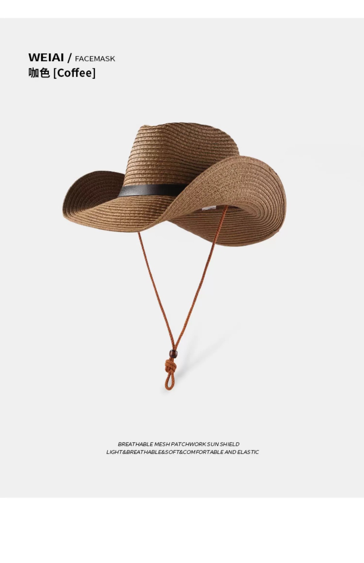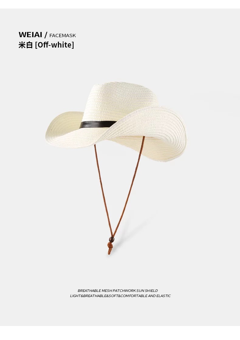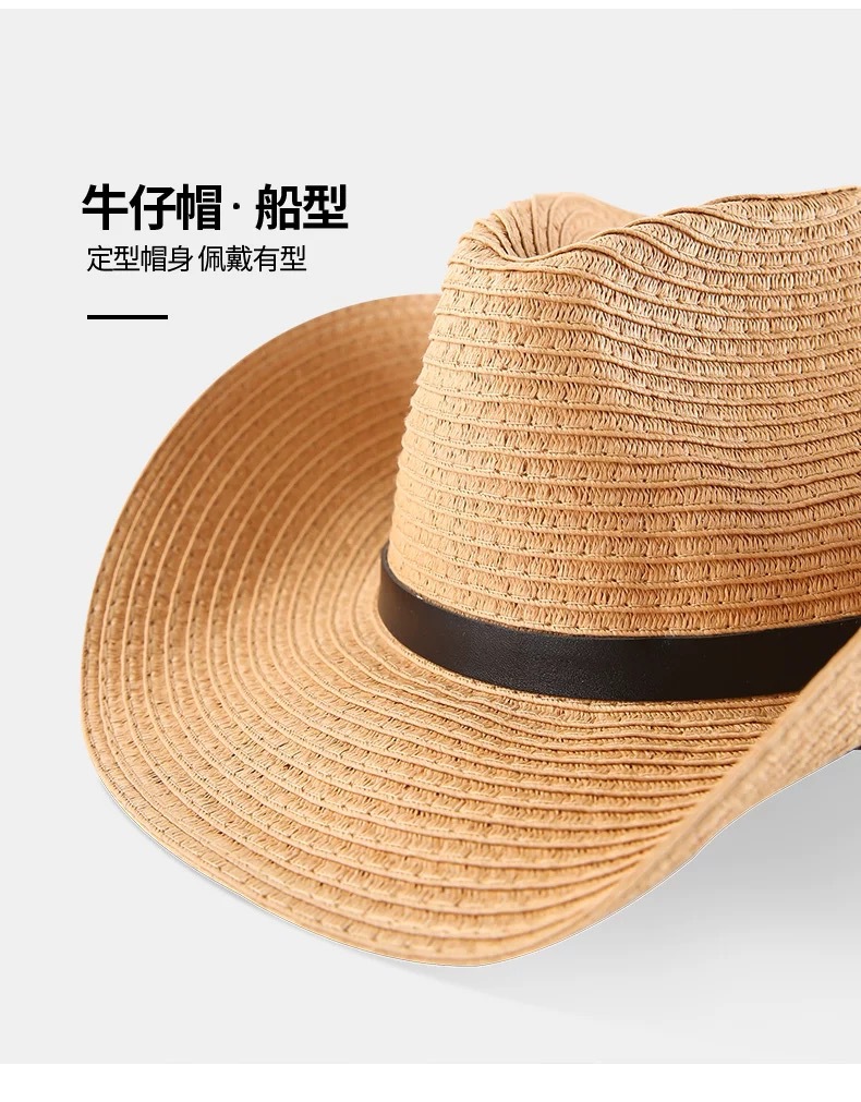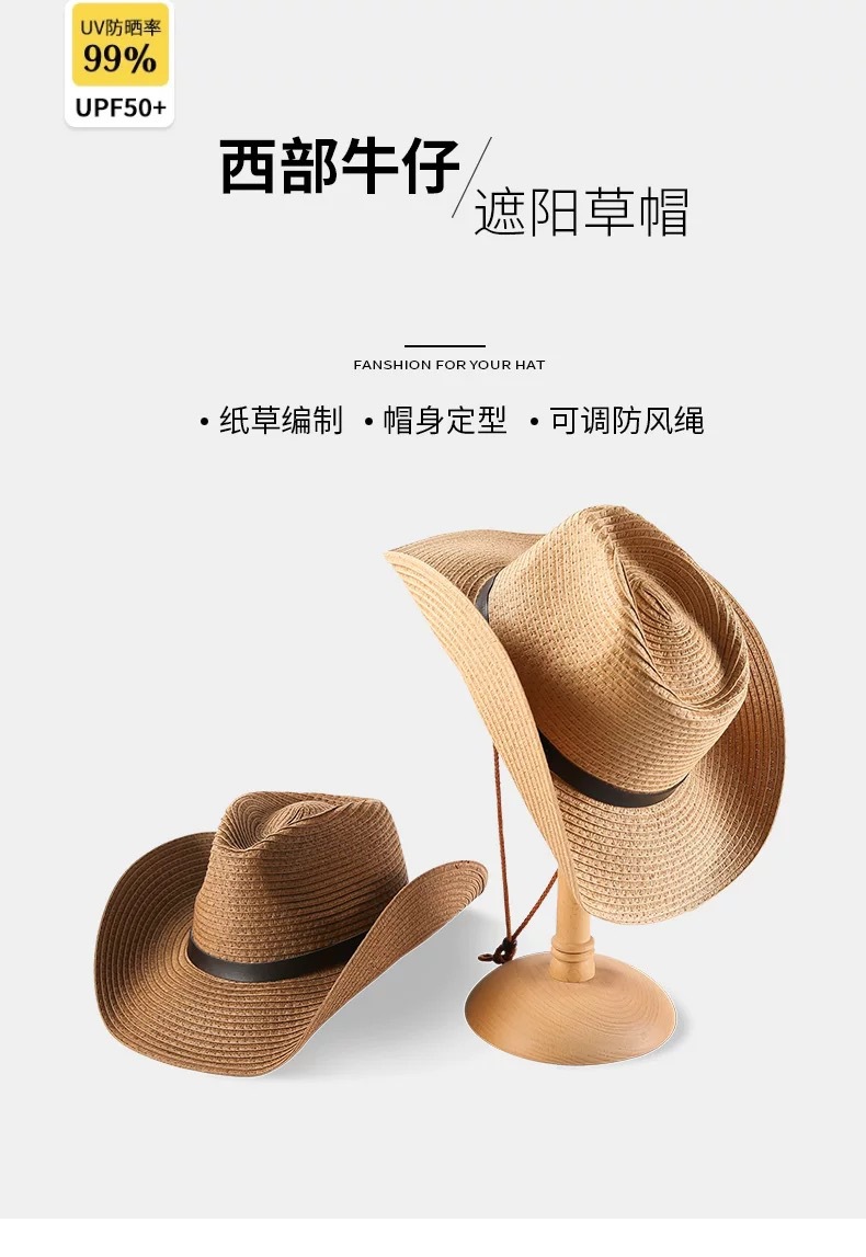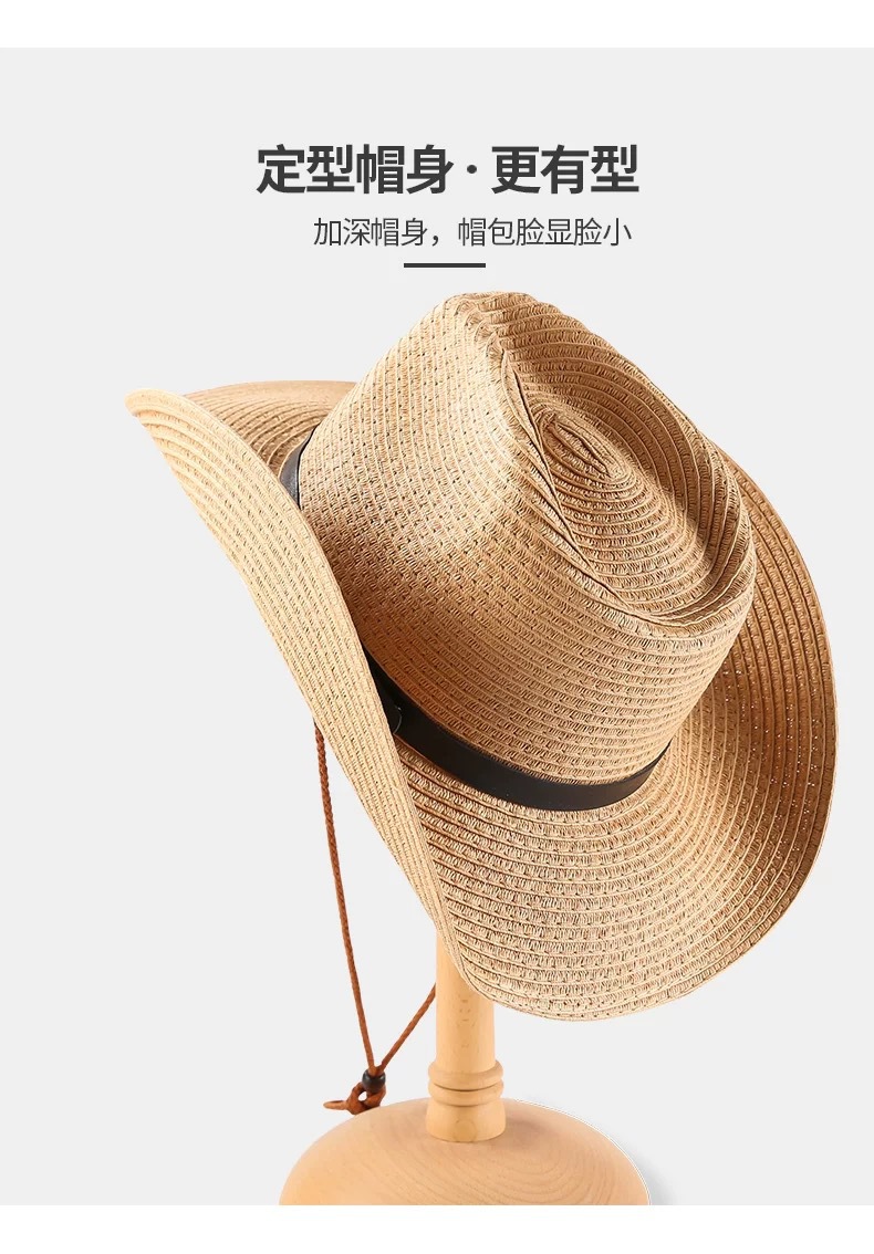 밀짚 기사 모자 소년 야외 등산 큰 처마 태양 모자 스파이스 소녀 여름 태양 보호 레트로 서부 카우보이 모자 여성