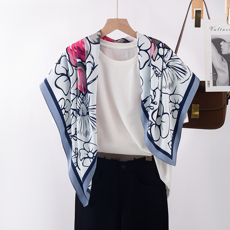 봄과 여름 우아한 긴 스카프 통근 가방 스카프 복고풍 패턴 작은 광장 스카프 여성용 스카프 고급 감각 목도리스토어 가기