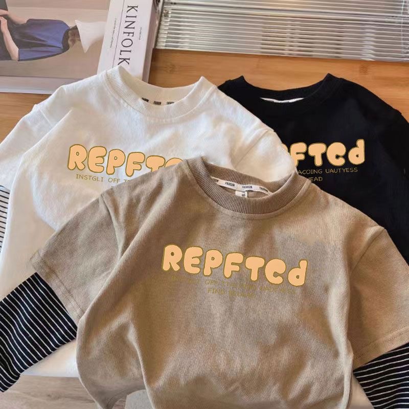 신형 면베이스 셔츠 가짜 투피스 긴팔 티셔츠 어린이 봄 · 가을 소년 '중소형 어린이 아기 캐주얼 탑'스토어 가기