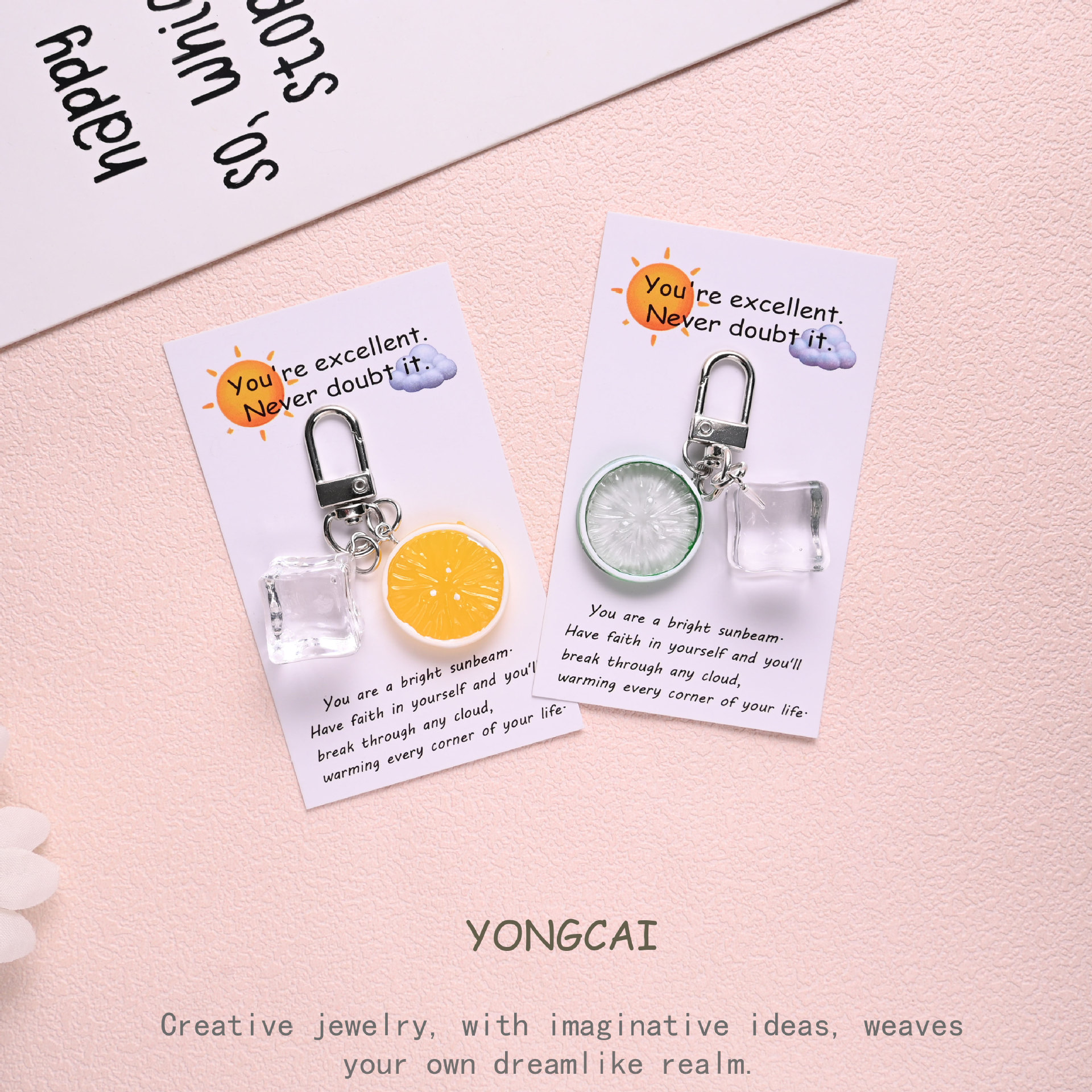 국경 간 레몬 아이스 키 체인 학교 가방 펜던트 보석 키 체인 가방 맞춤형 크리에이티브 카 키 펜던트스토어 가기