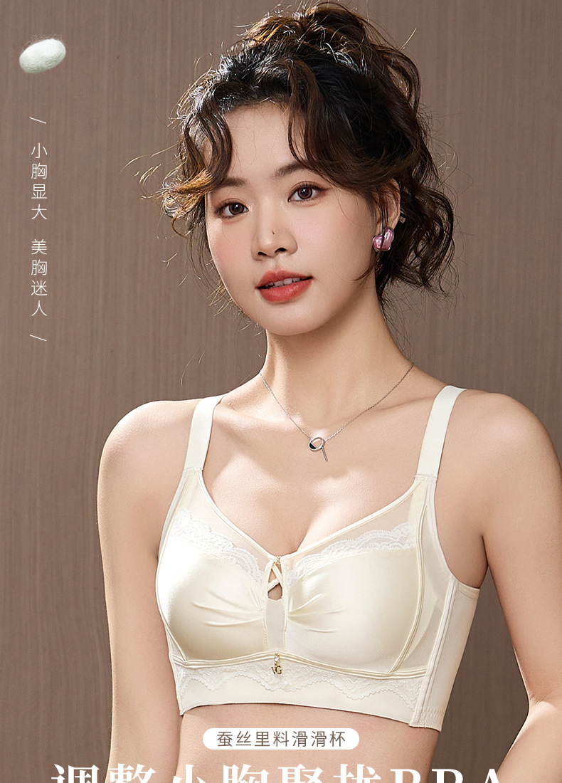 새로운 모달 소재 노와이어 조절형 작은 가슴 모아주는 브라, 컵이 빈틈없고 처짐 방지, 고급스러운 새틴 브라