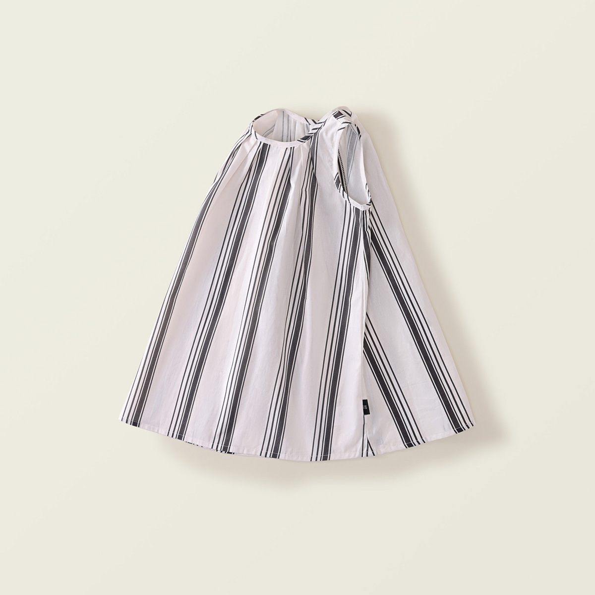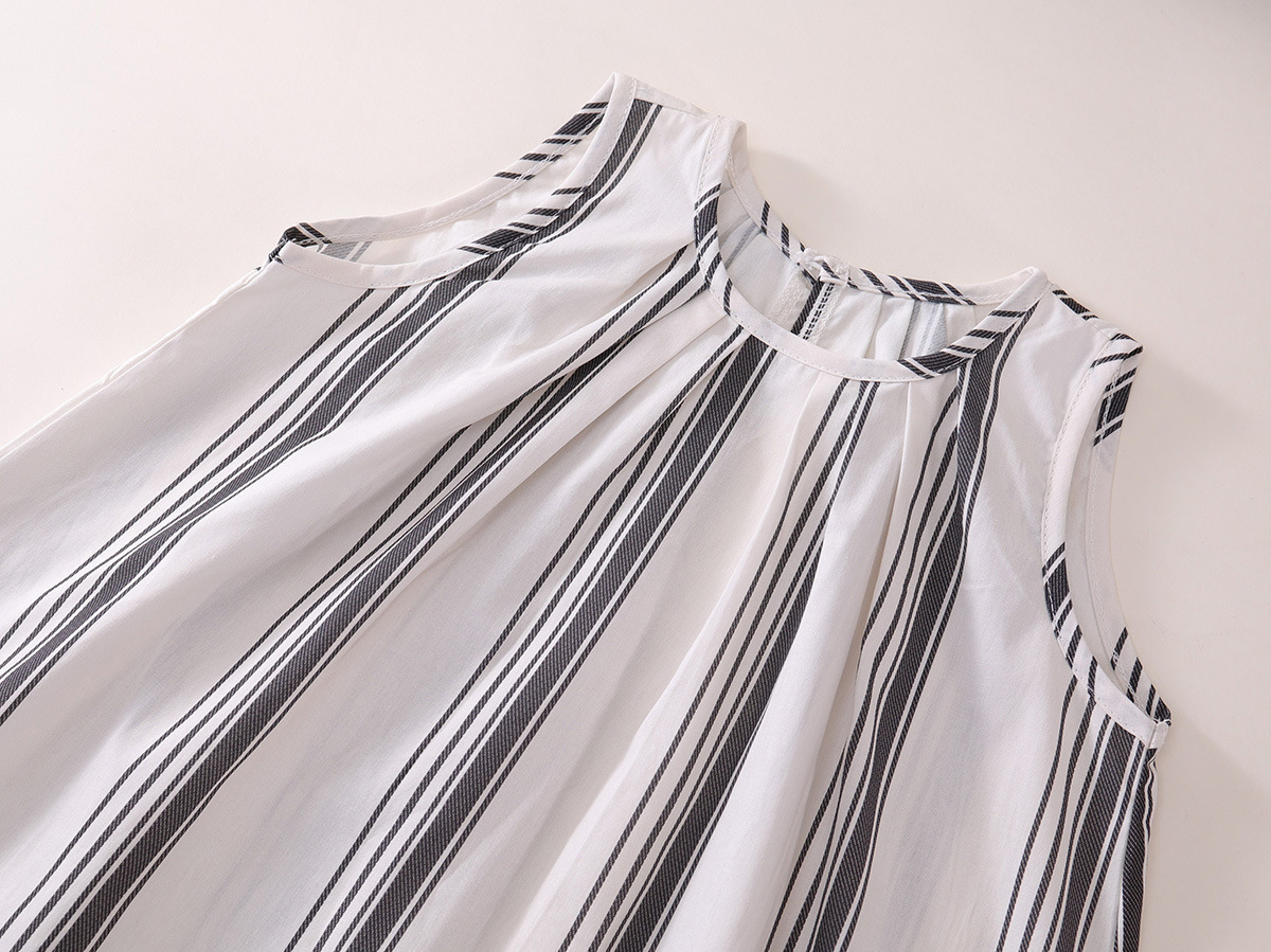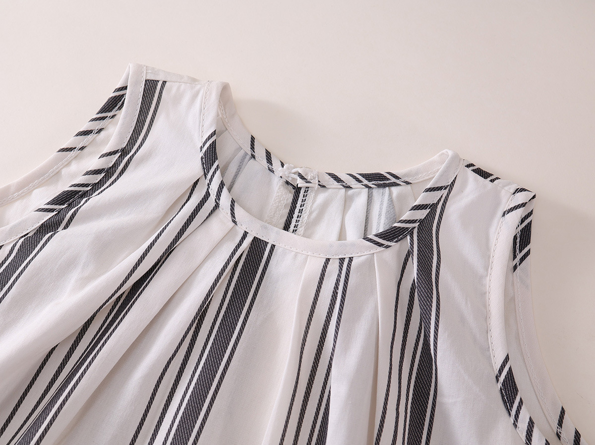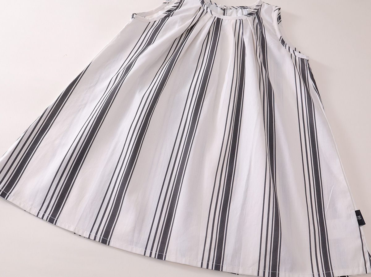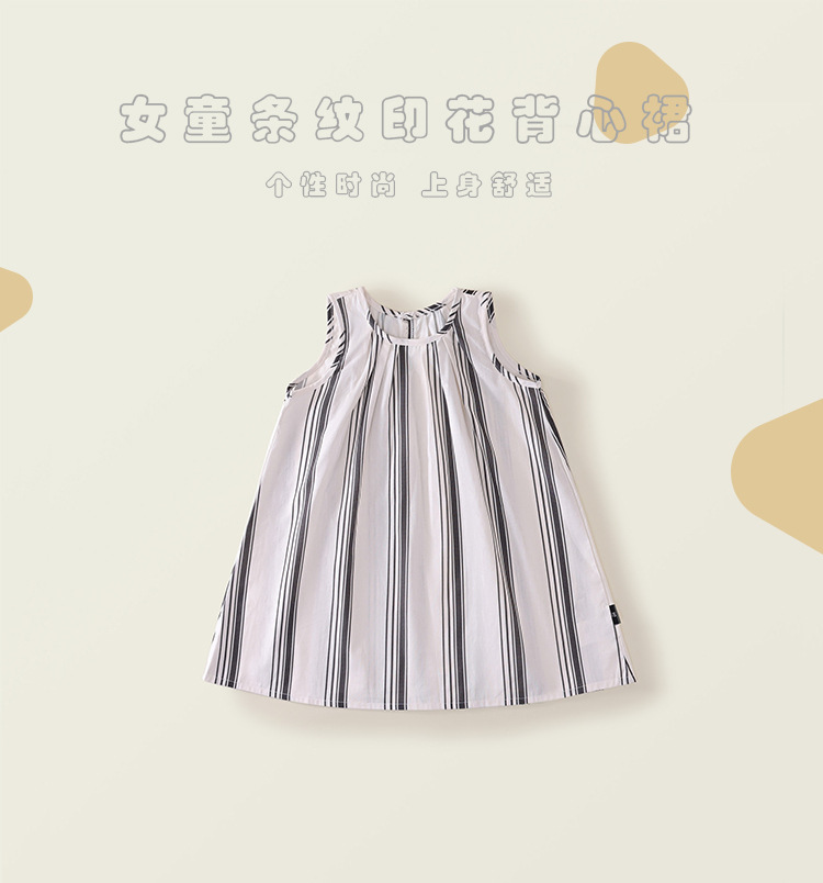 소녀 수직 줄무늬 민소매 Vantel 원피스 2025 여름 새로운 어린이 간단한 캐주얼 스타일 순면 원피스 헤어스토어 가기