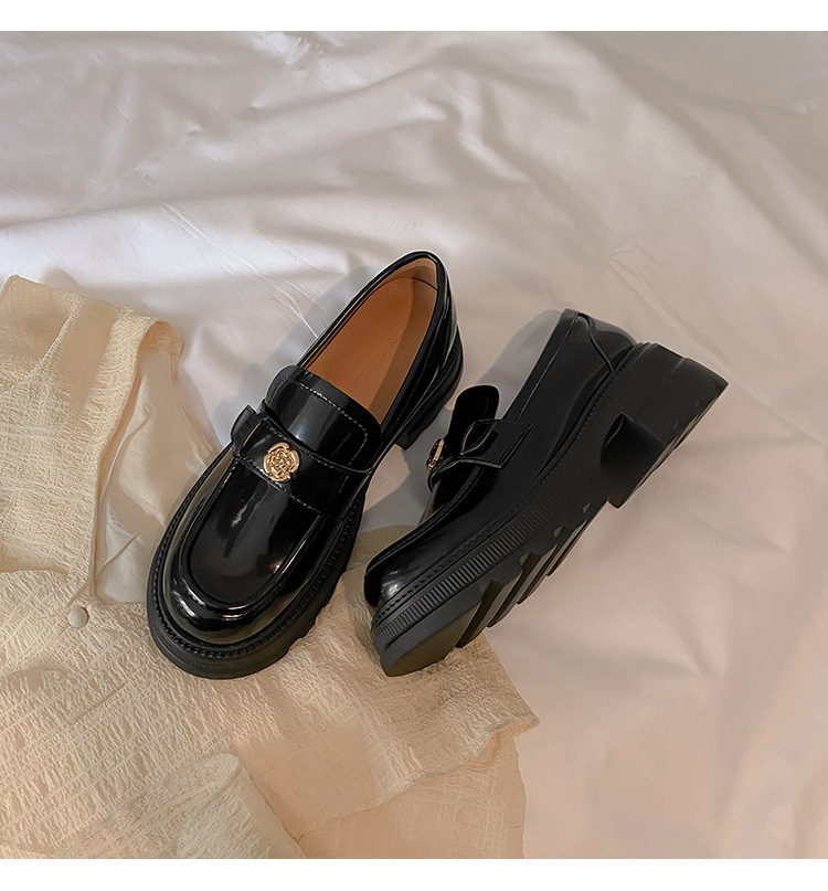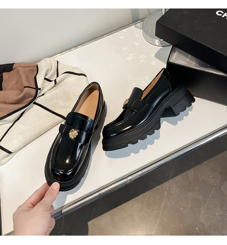 정품 가죽 ~ 두꺼운 밑창 Camellia Loafers 여성의 봄과 여름 2025 새로운 부드러운 밑창 가죽 신발스토어 가기