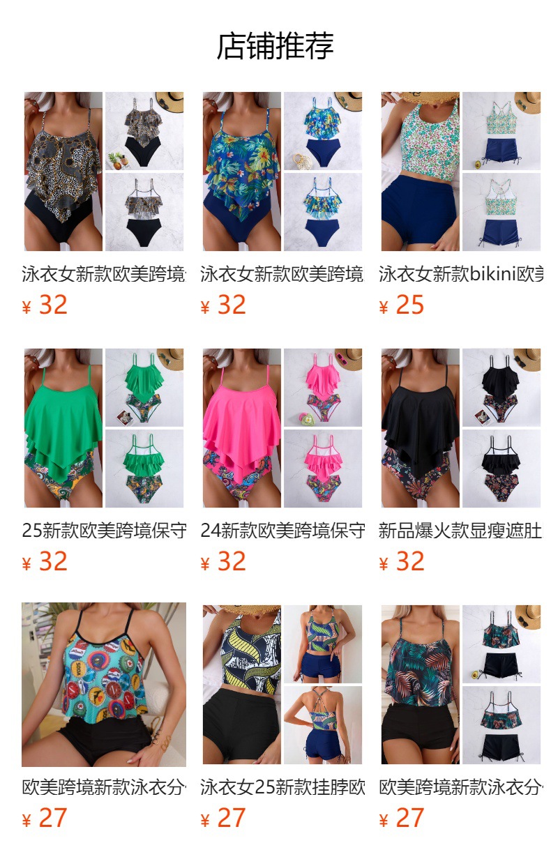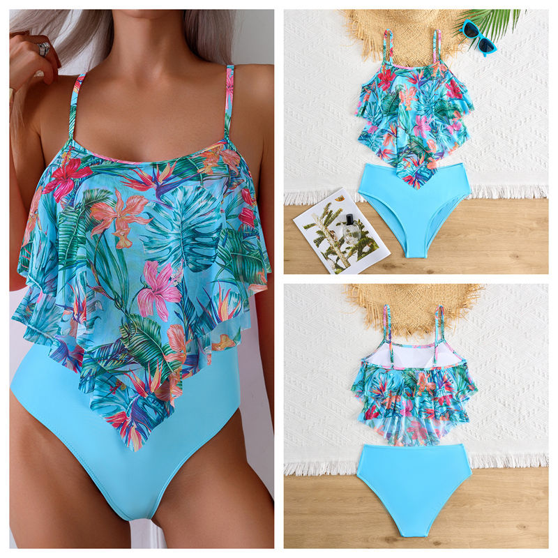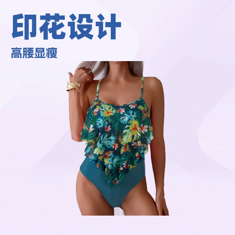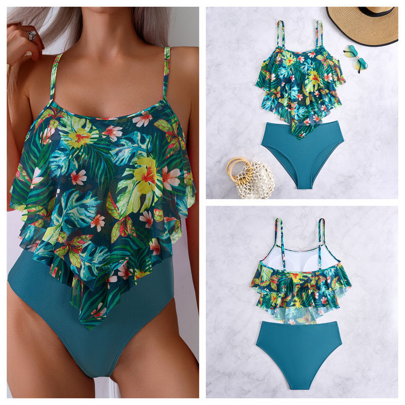 여성용 프린트 하이웨이스트 탱키니 수영복, 오프 숄더 러플 스플릿 비키니 스포츠 스타일스토어 가기