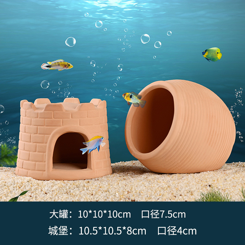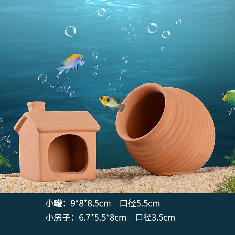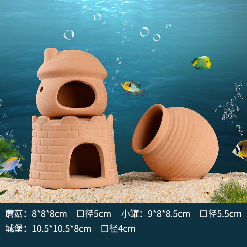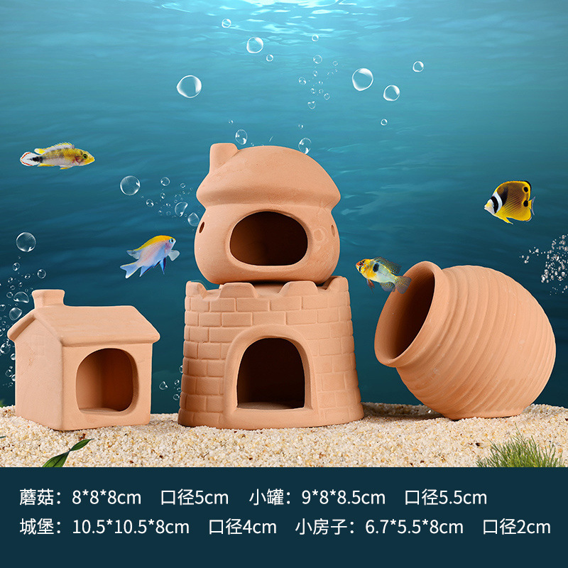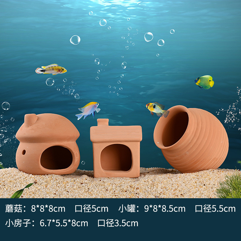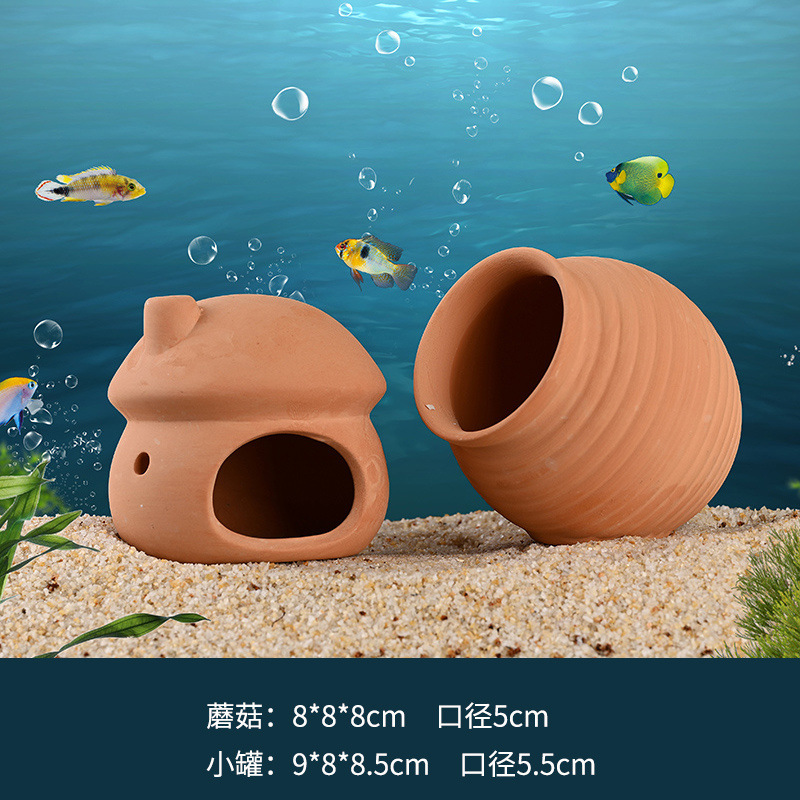 물고기 탱크 풍경 붉은 도자기 냄비 탈출 집 미니 앵무새 물고기 번식 구멍 물고기 새우 둥지 버섯 집 장식 장식품스토어 가기