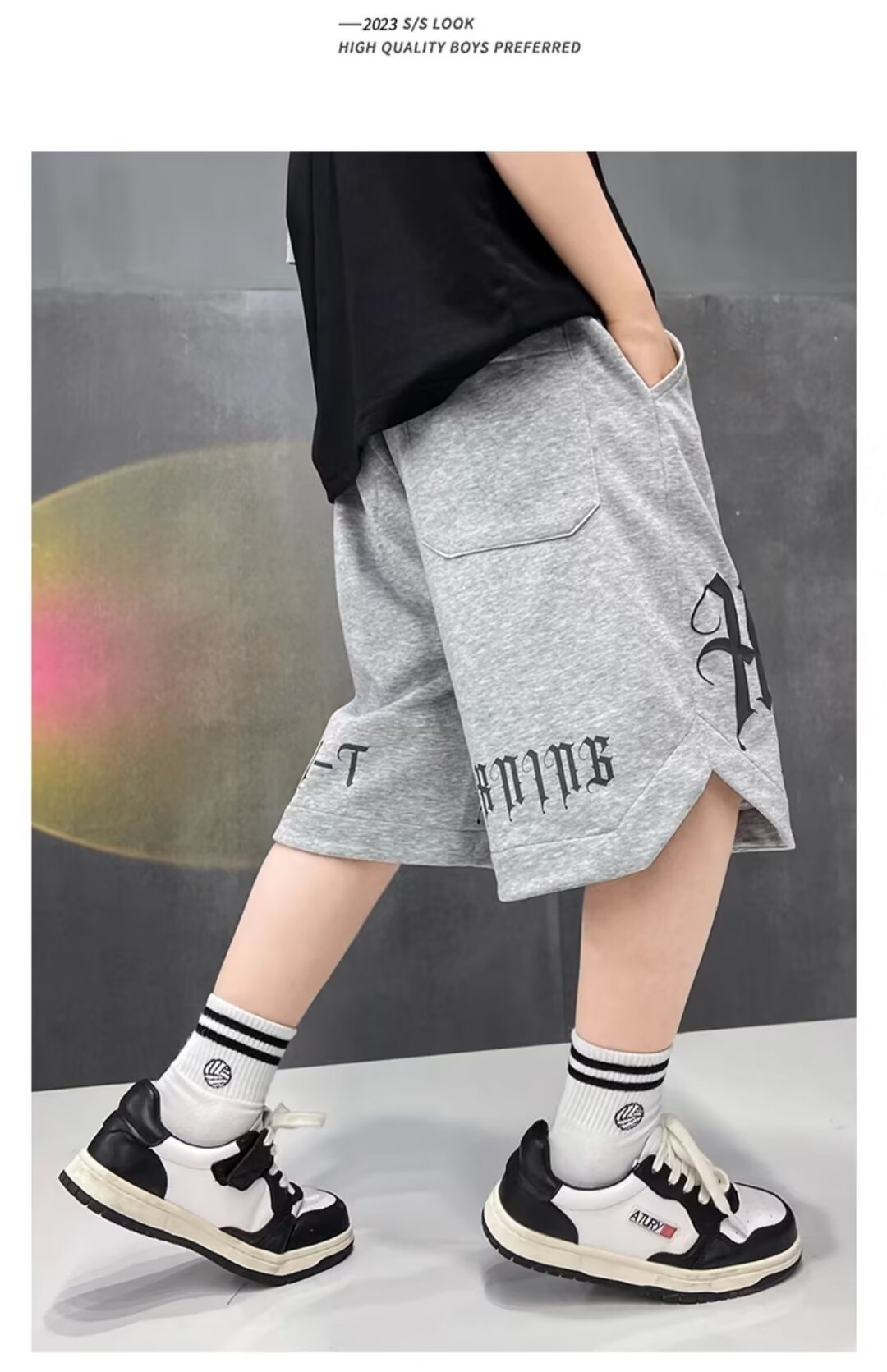 소년 반바지 여름 반바지 2025 새로운 도착 중첩 소년 여름 바지 느슨한 스포츠 바지 소년 얇은스토어 가기