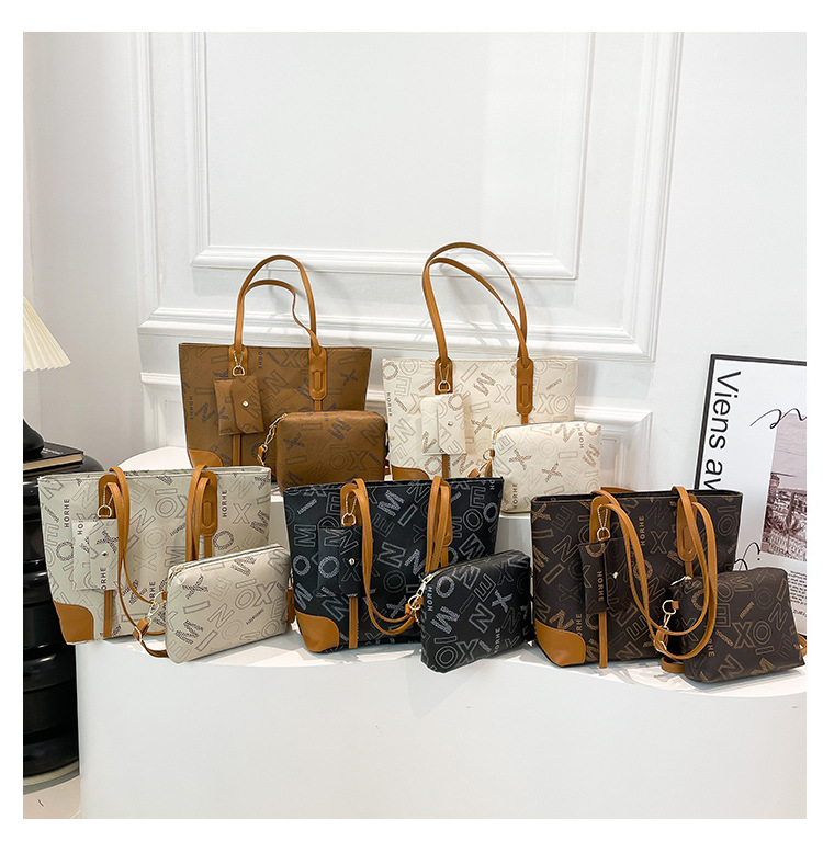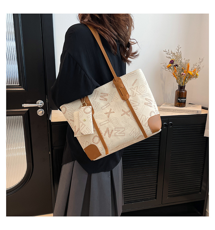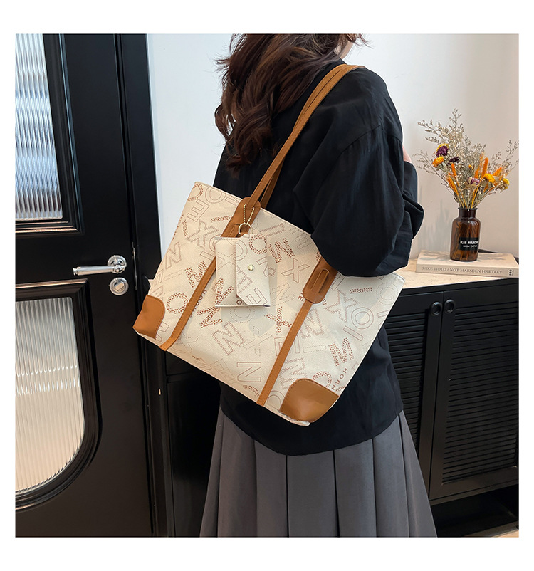 2025 봄 통근 휴대용 어깨 가방 빈티지 패션 편지 인쇄 유행 대용량 3 조각 토트 가방