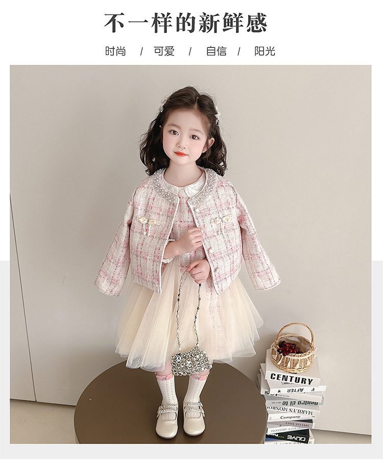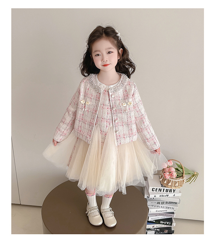 소녀의 봄 원피스 세트 2025 새로운 스타일 소녀의 큰 소년 가짜 투피스 코트 걸스 봄 메쉬 스커트 투피스 세트스토어 가기
