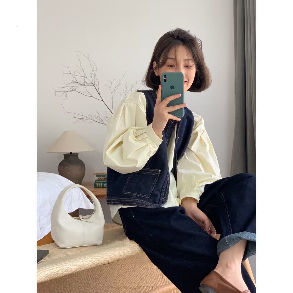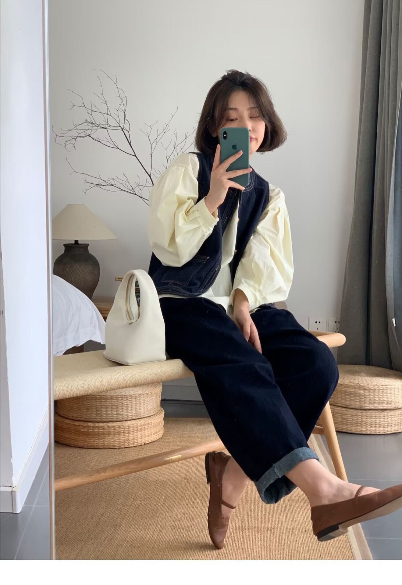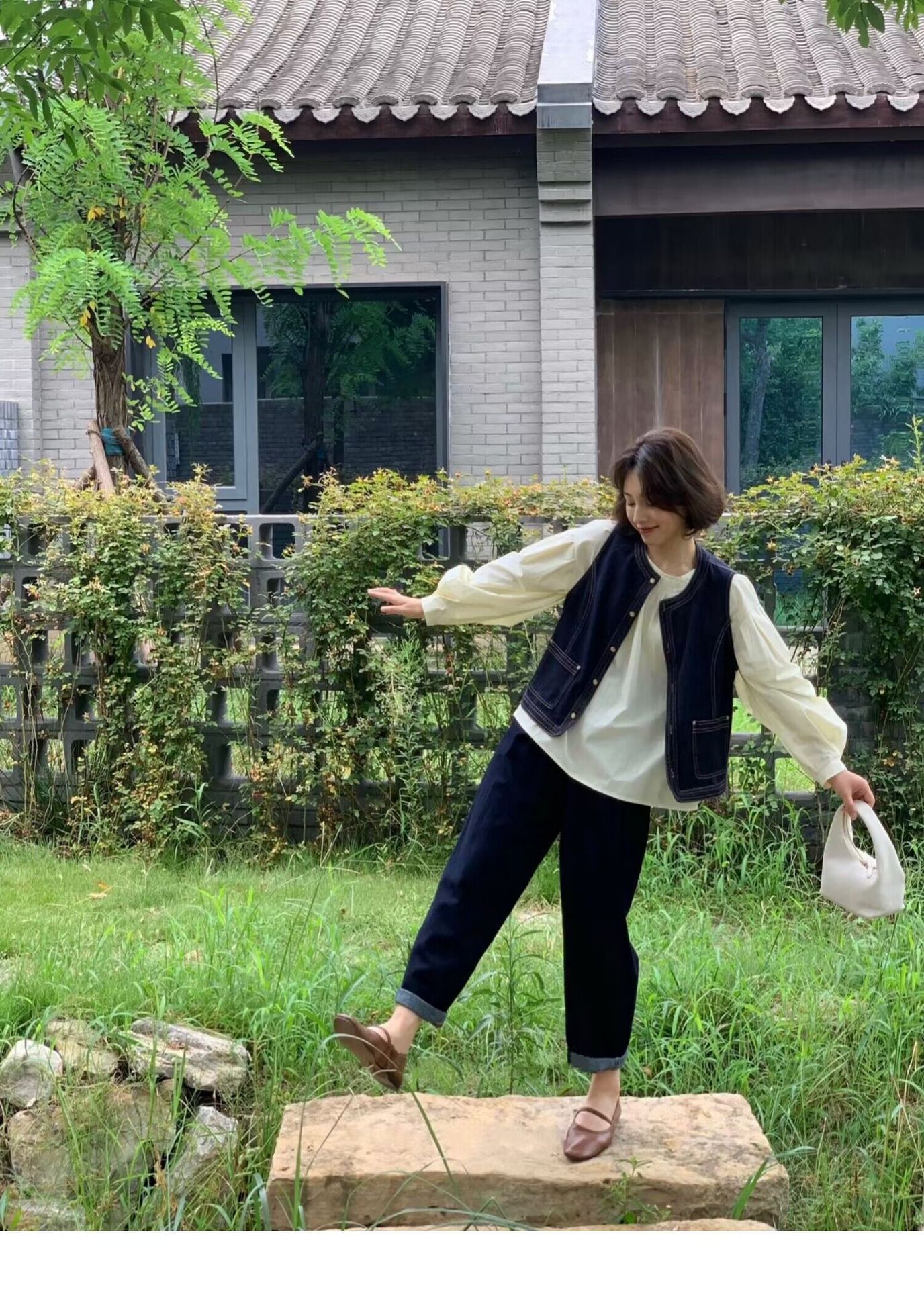 일본식 레트로 데님 조끼 여성 봄과 여름 작은 여성 디자인 센스 웨이스트 코트를위한 새로운 적층 조끼스토어 가기