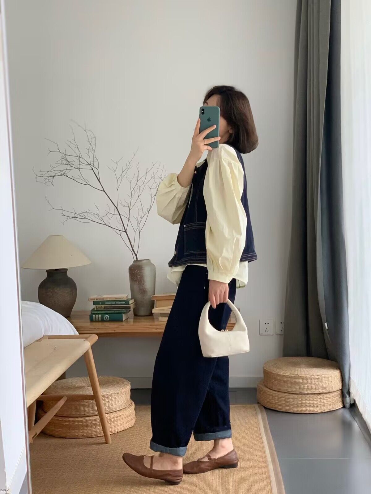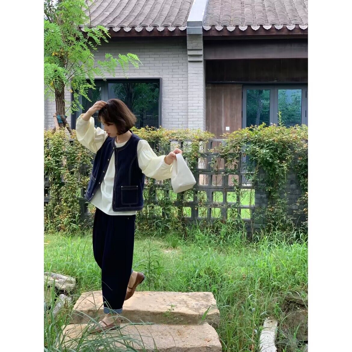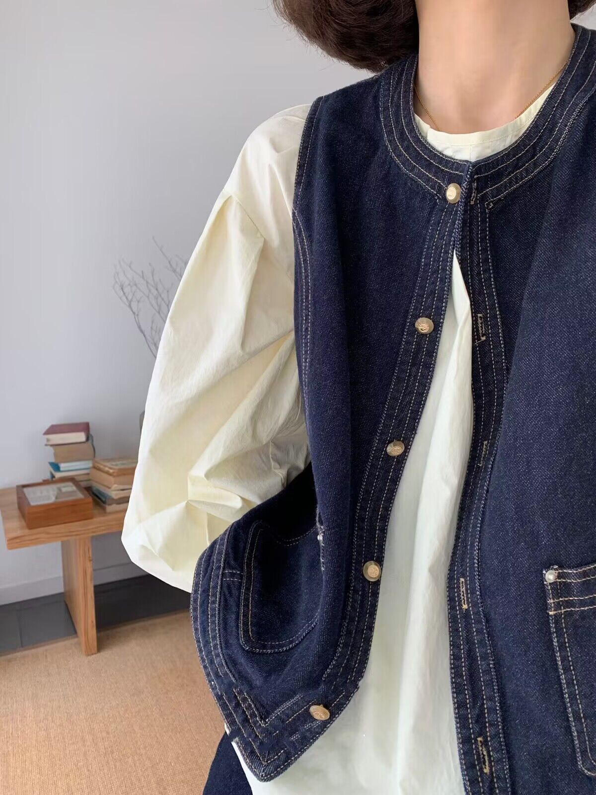 일본식 레트로 데님 조끼 여성 봄과 여름 작은 여성 디자인 센스 웨이스트 코트를위한 새로운 적층 조끼