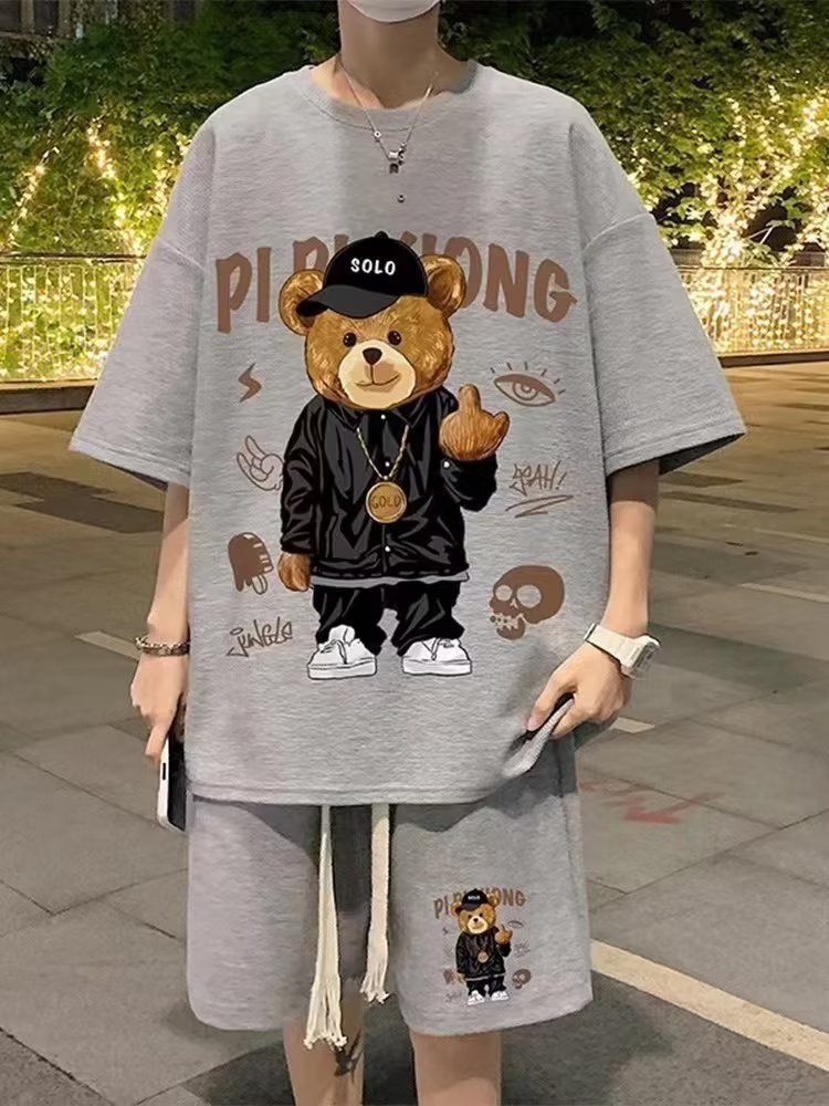 여름 와플 세트 남성용 반팔 티셔츠 캐주얼 반바지 10 대들은 스포츠 콜론 루스를 착용합니다.스토어 가기