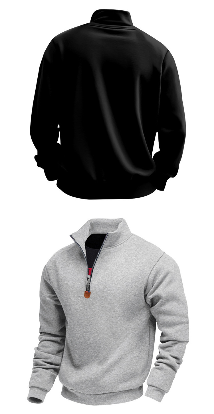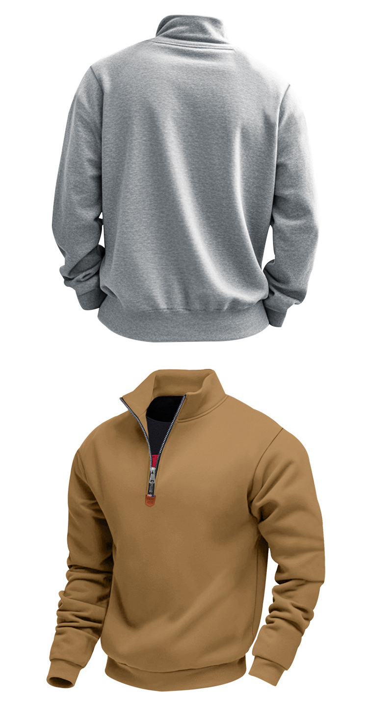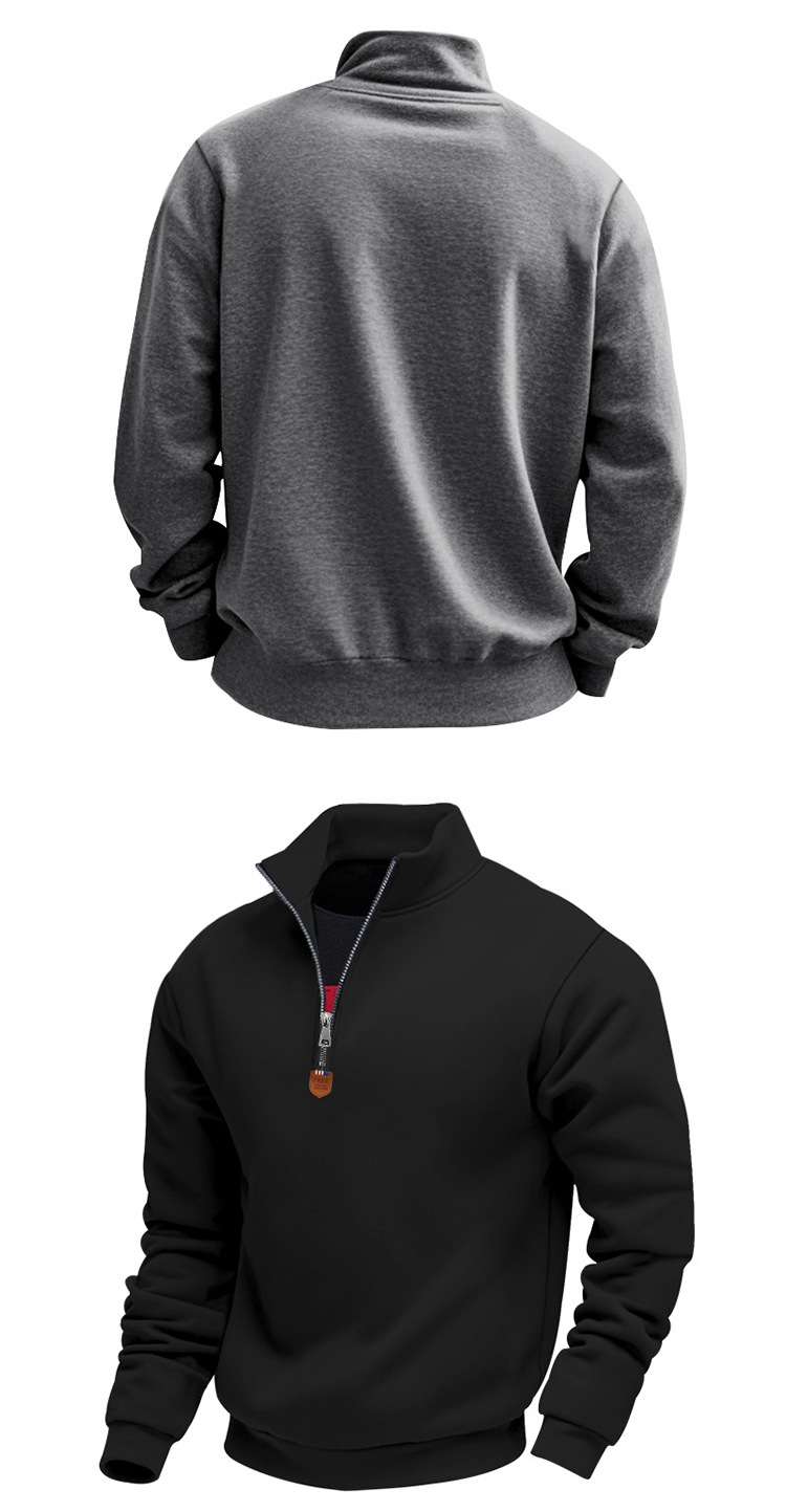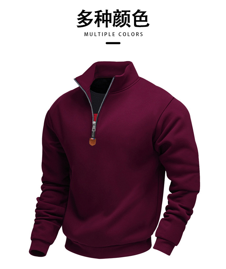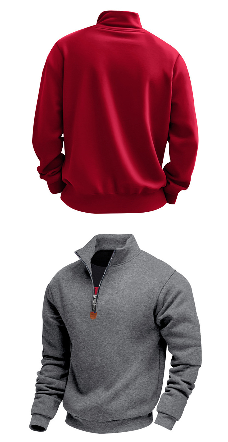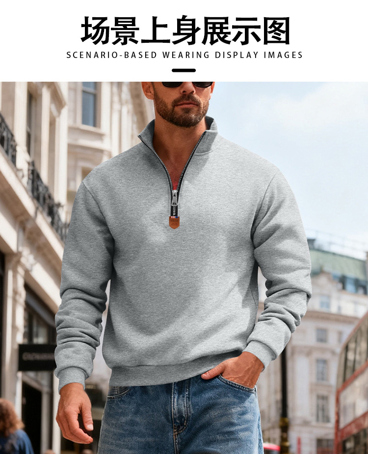 국경 간 아마존 아메리칸 스타일 헤비 기모 스킨 친화적 인 따뜻한 유지 남성 긴팔 반 지퍼 스포츠 캐주얼 땀스토어 가기