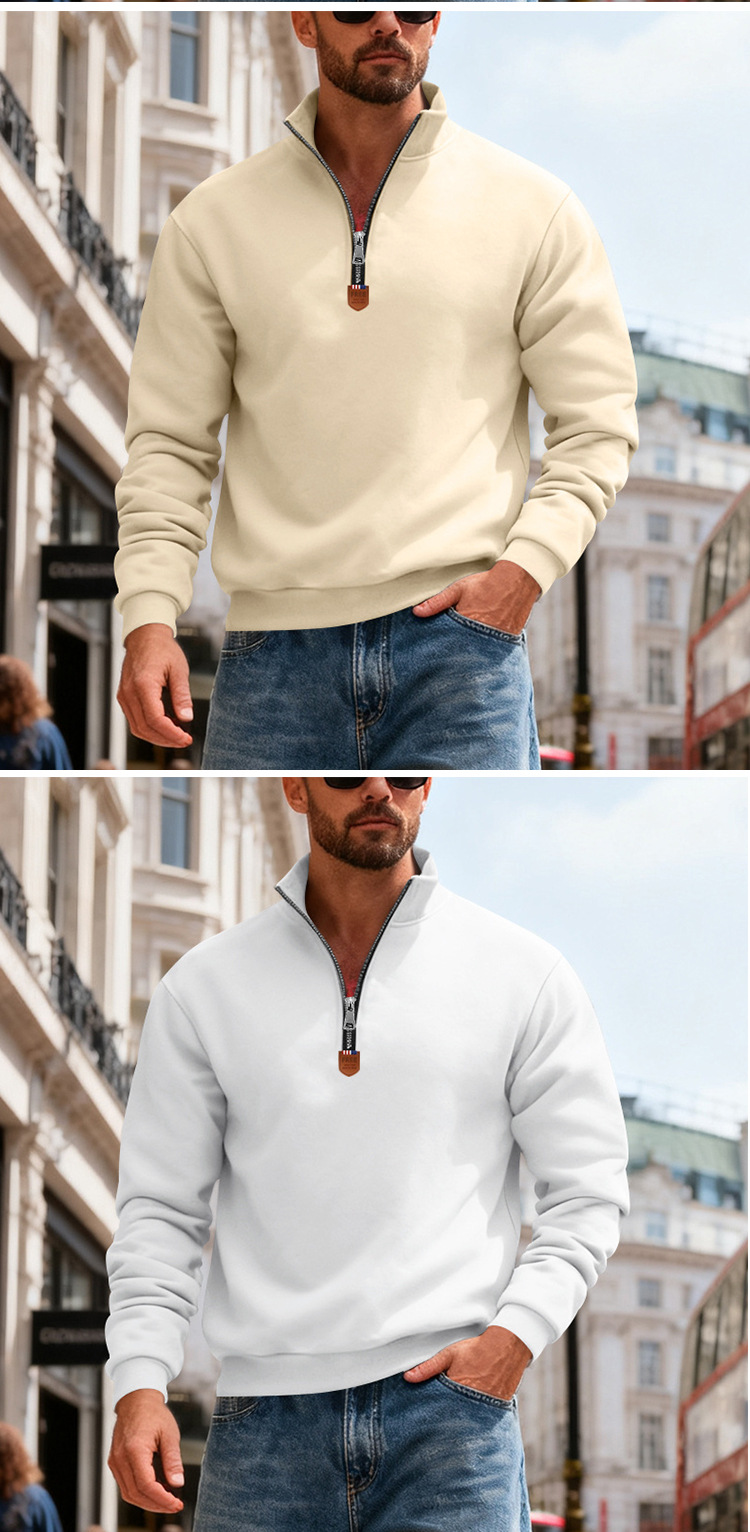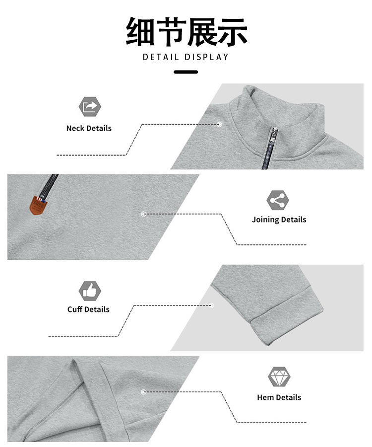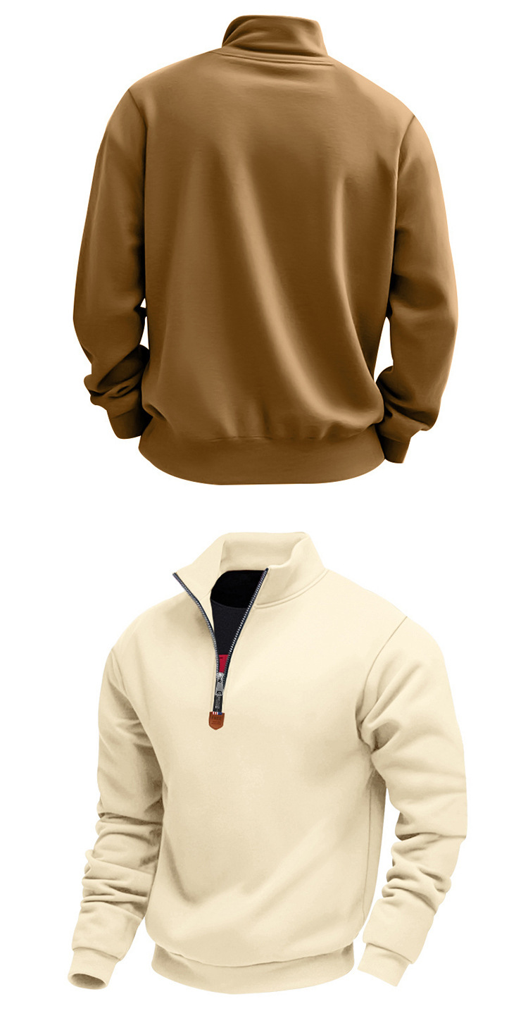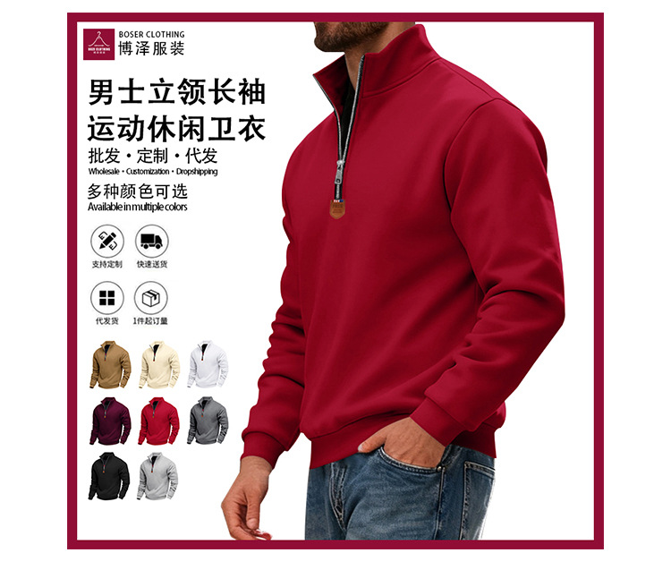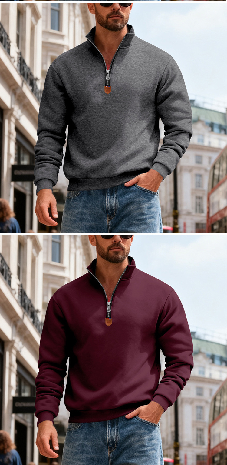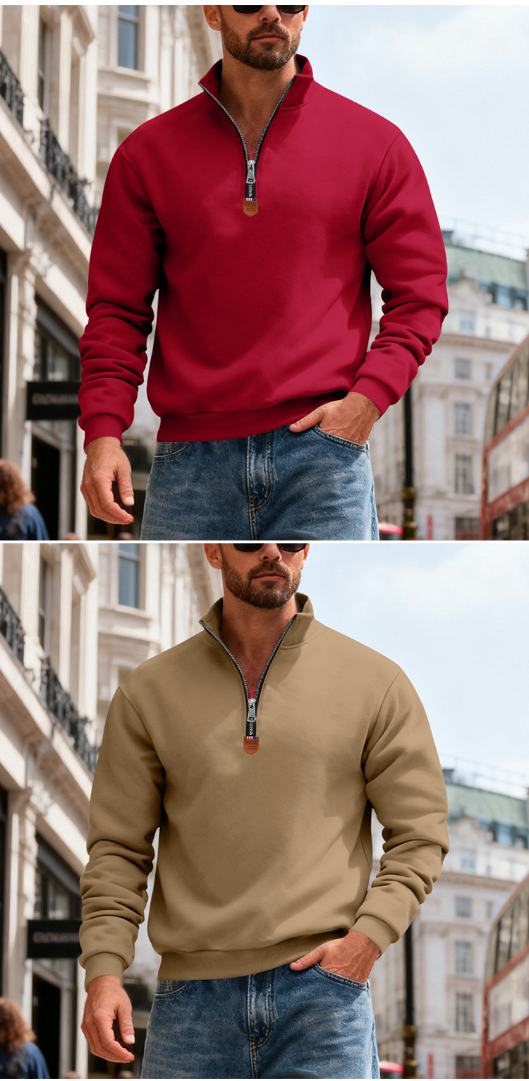국경 간 아마존 아메리칸 스타일 헤비 기모 스킨 친화적 인 따뜻한 유지 남성 긴팔 반 지퍼 스포츠 캐주얼 땀스토어 가기
