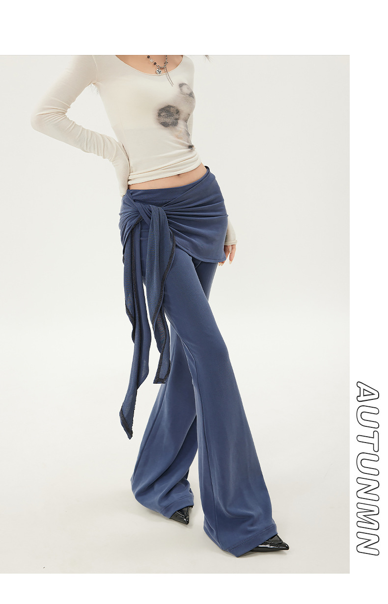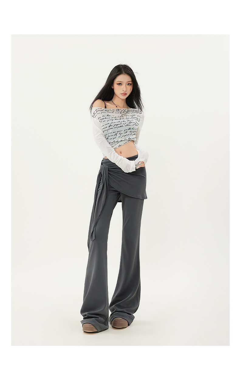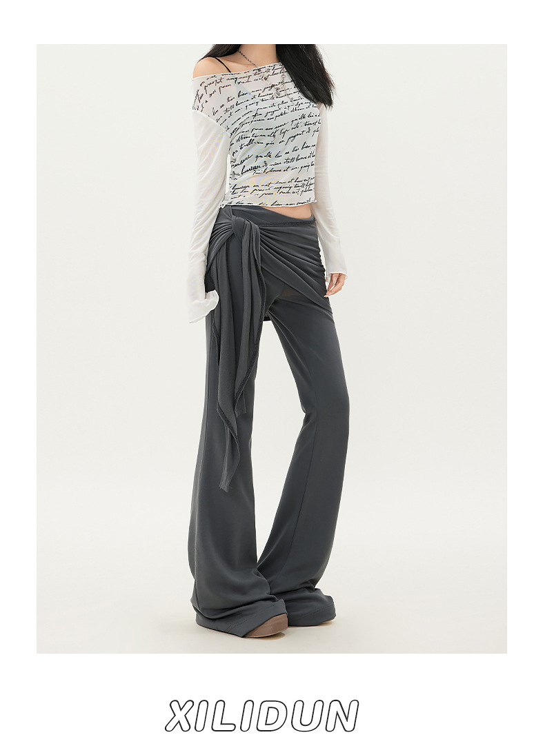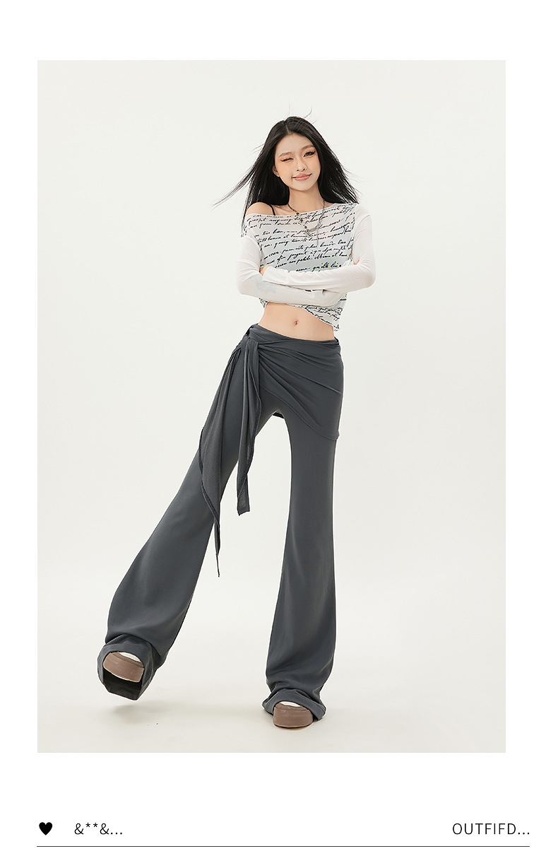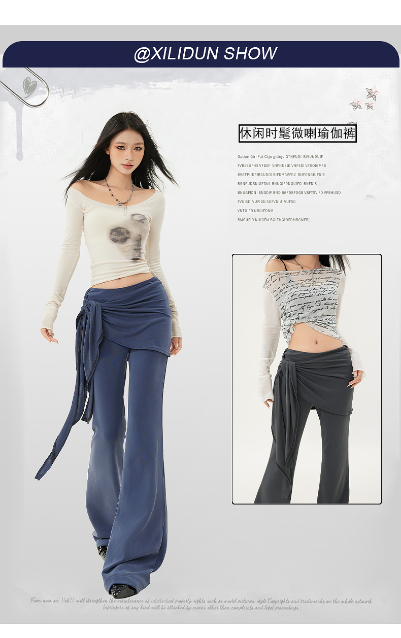 패션 디자인 낮은 허리 캐주얼 마이크로 요가 바지 여성의 2025 봄 새로운 가짜 투피스 슬림 핏 슬리밍 플래 팬츠스토어 가기